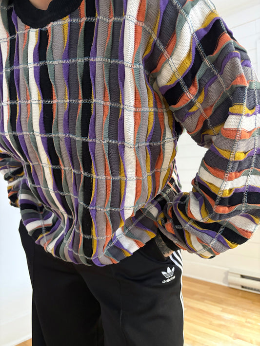 Pull oversize vintage à rayures en maille, taille L/XL