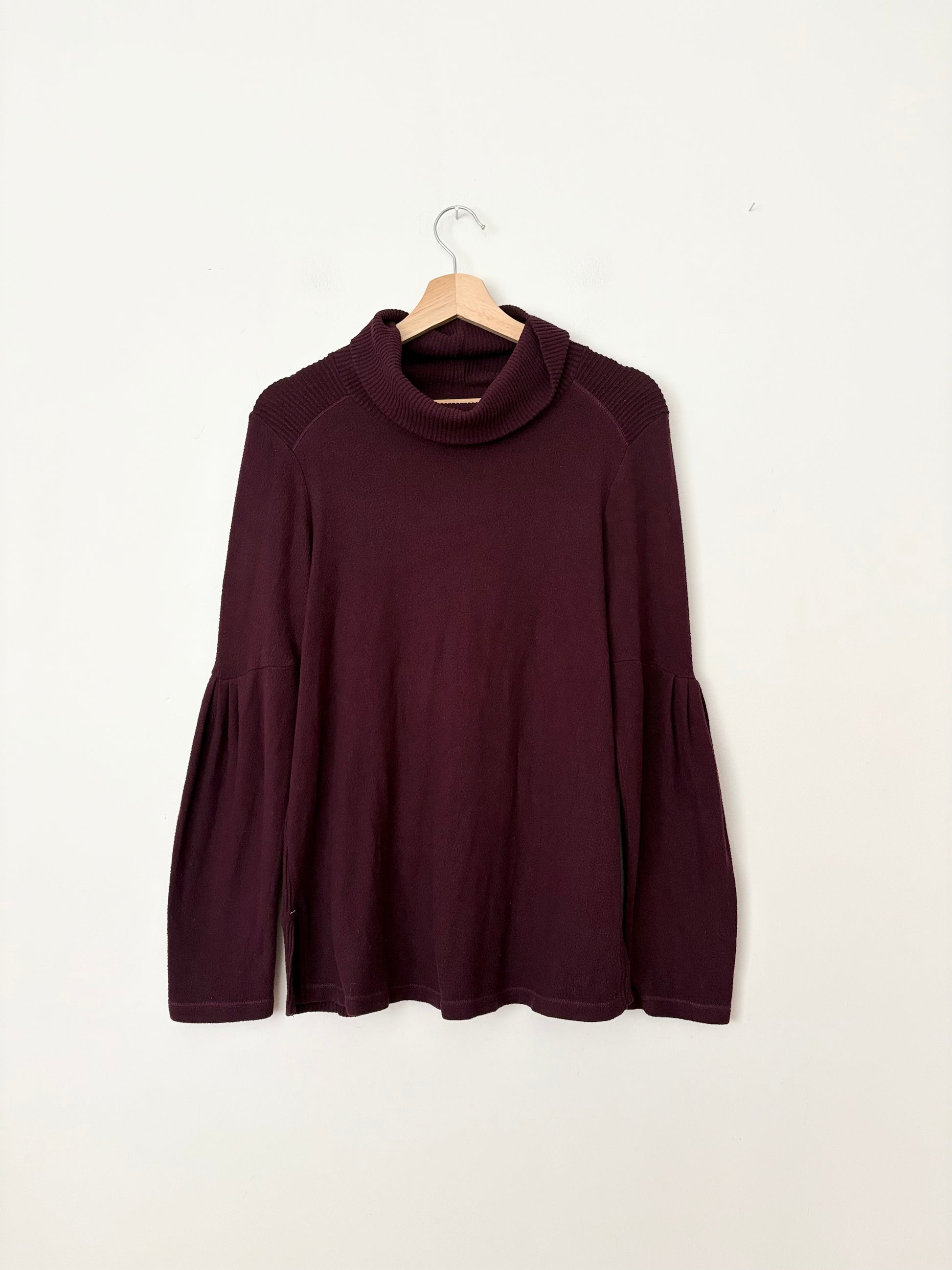 Pull en maille douce avec un col châle et de longues manches bouffantes, confectionné dans un mélange de polaire et de tissu côtelé.