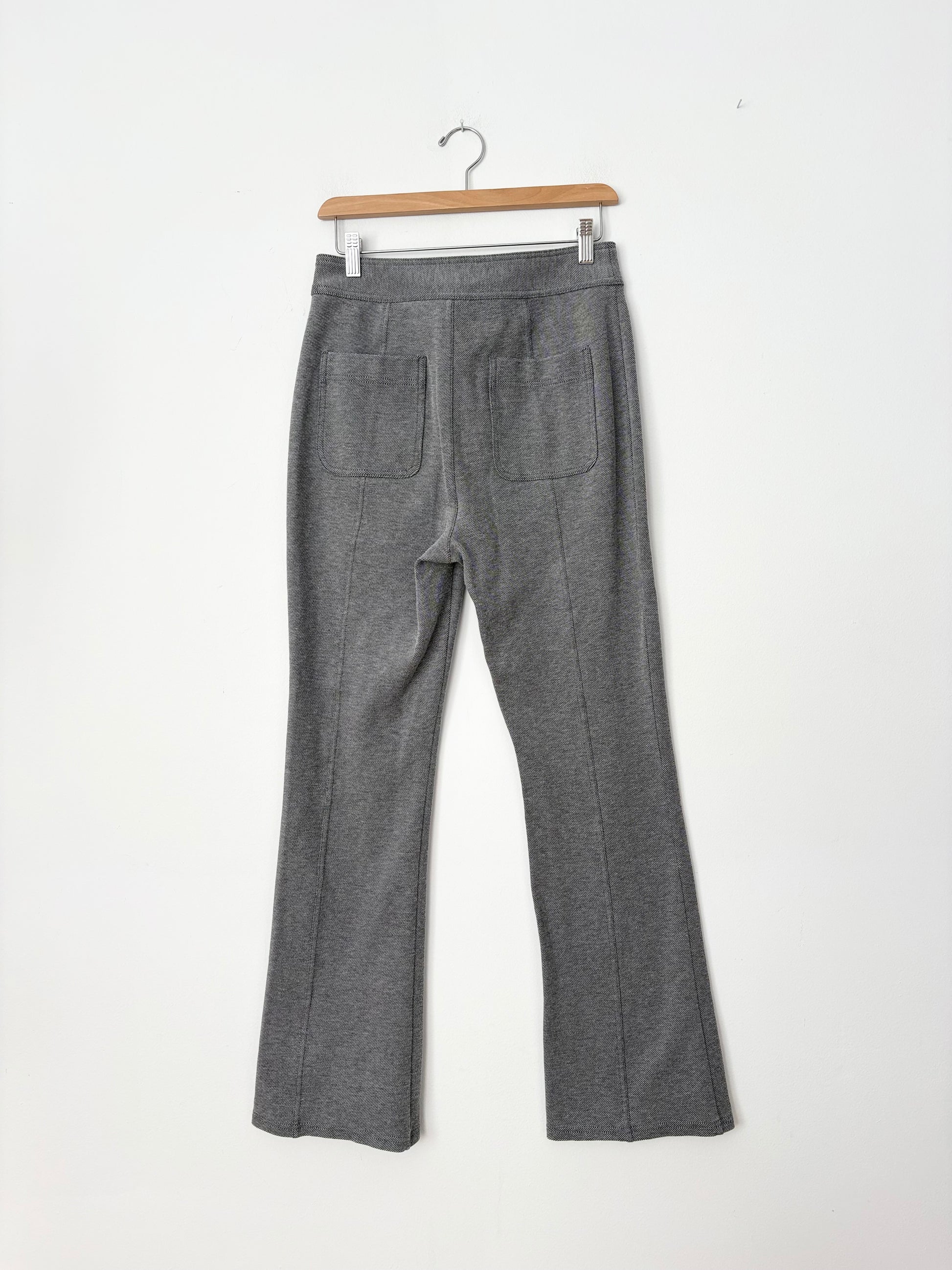 Pantalon gris à coutures apparentes et ourlet fendu évasé