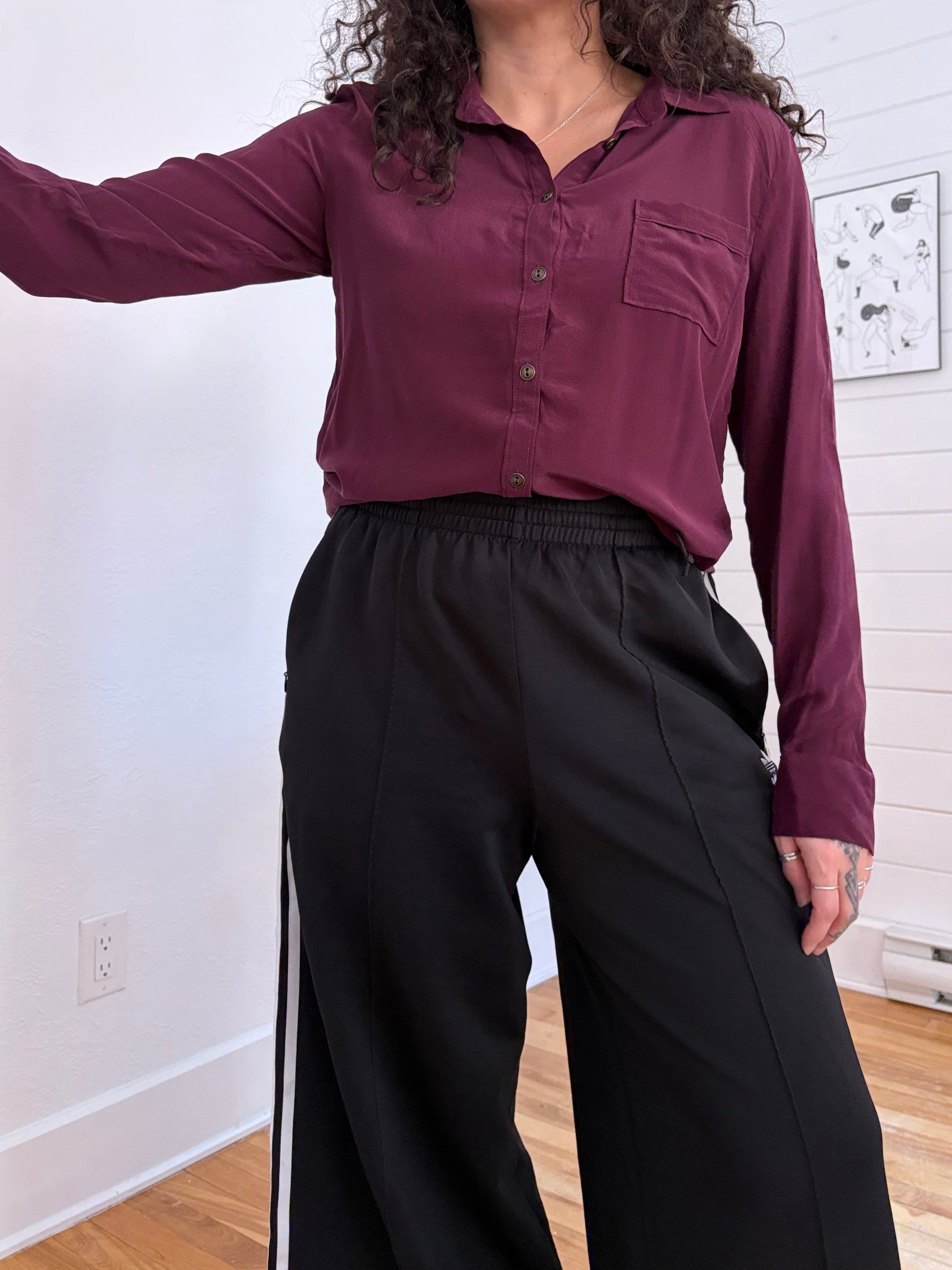 Chemise en soie violet foncé avec détail dos ouvert
