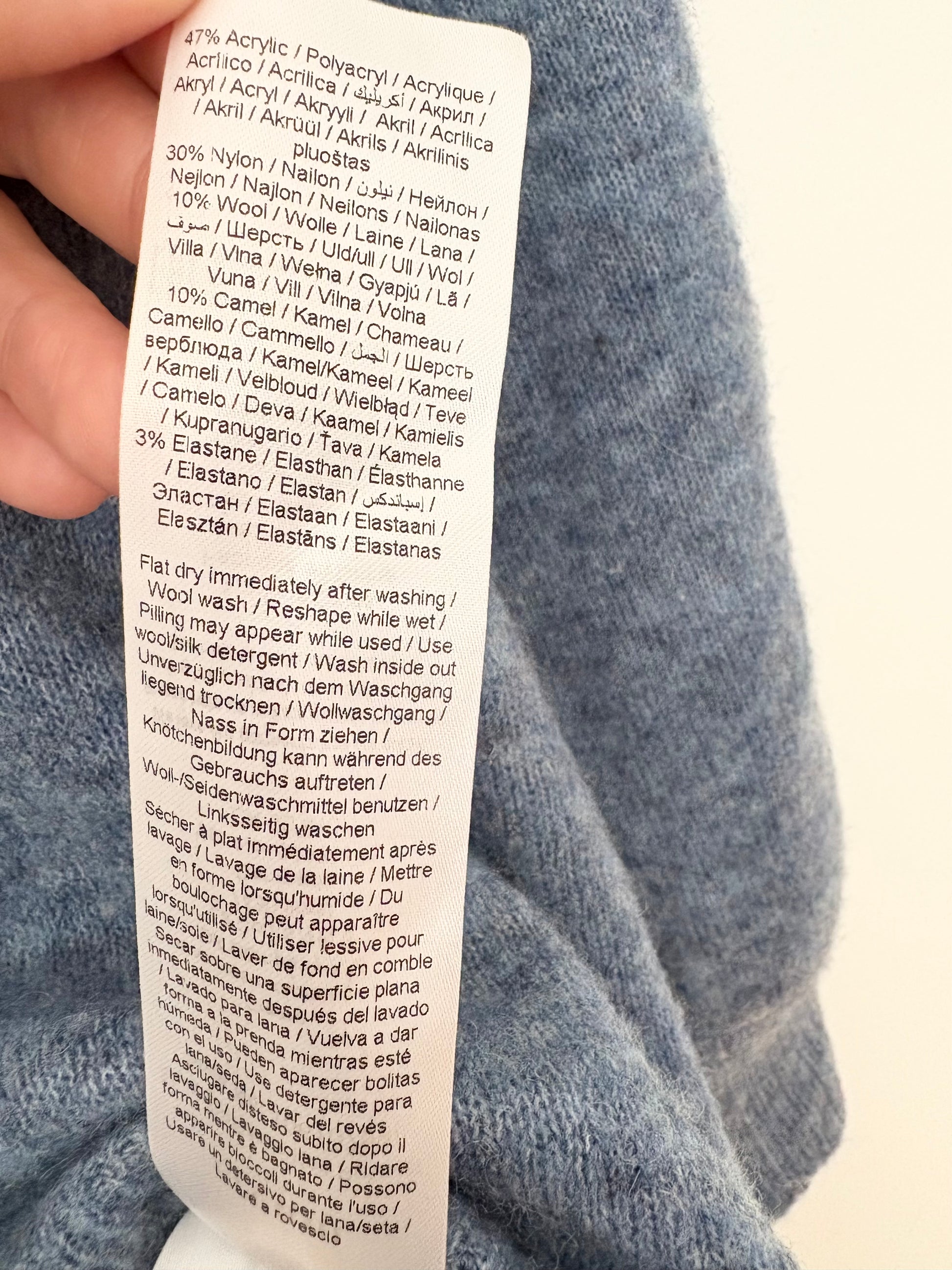 47 % acrylique, 30 % nylon, 10 % chameau, 10 % laine, 3 % élasthanne