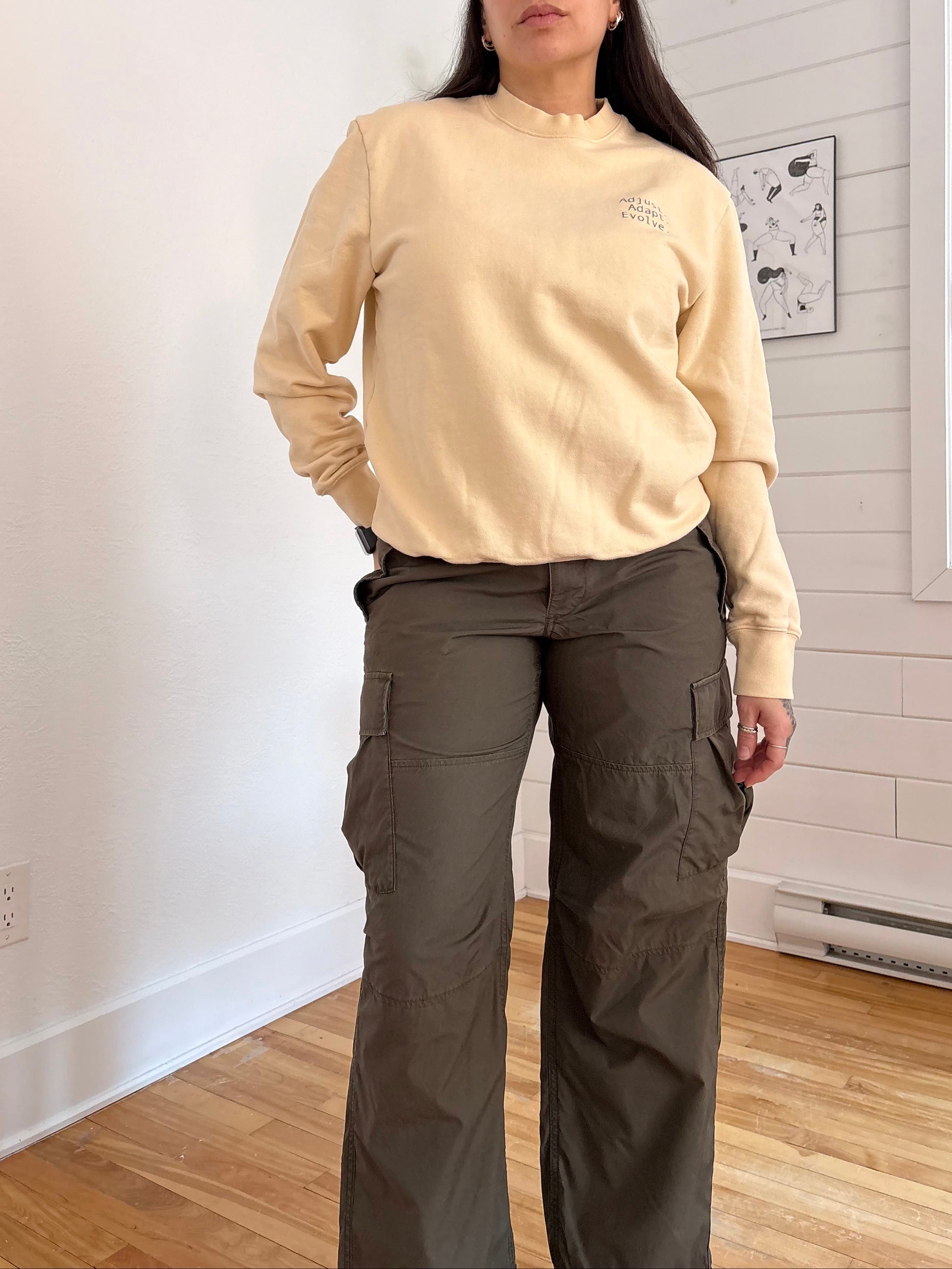 Pull beige classique à col rond et imprimé graphique