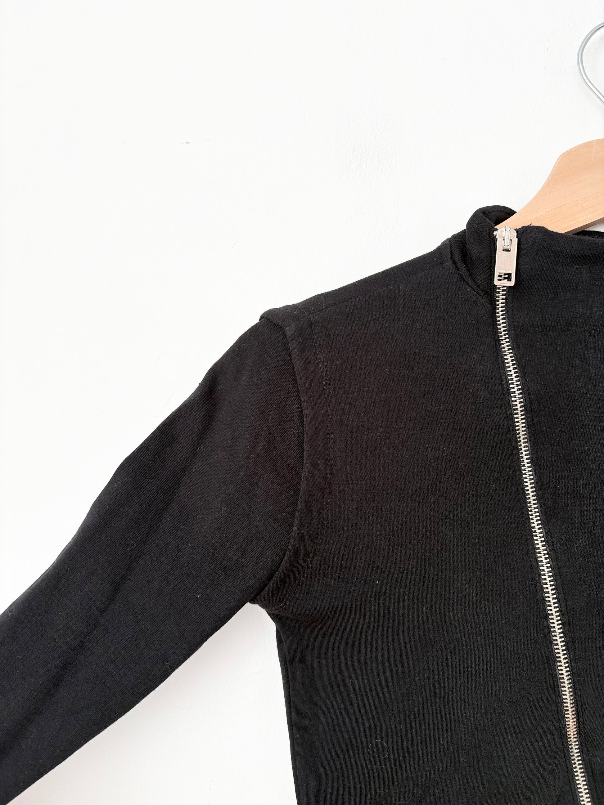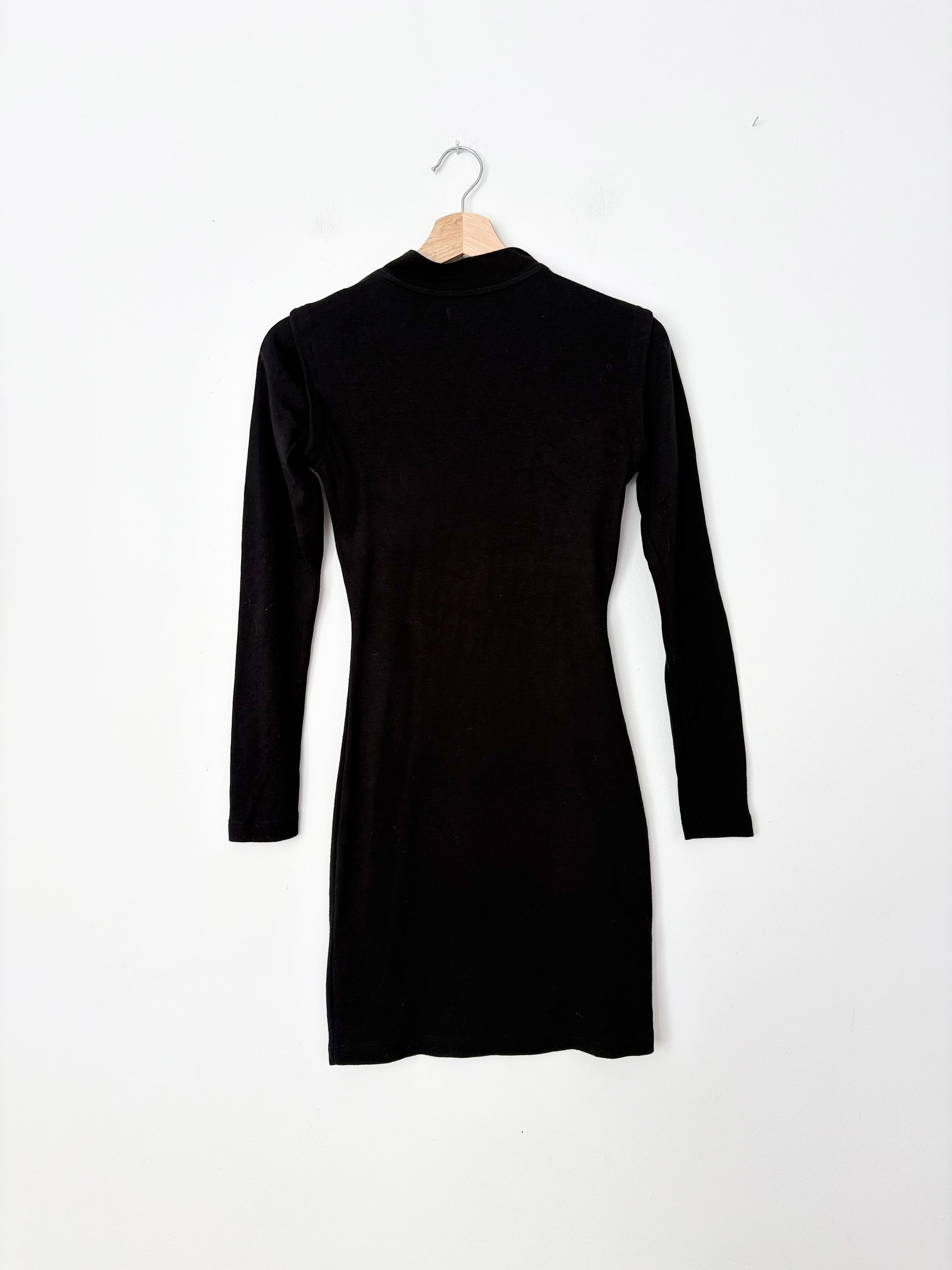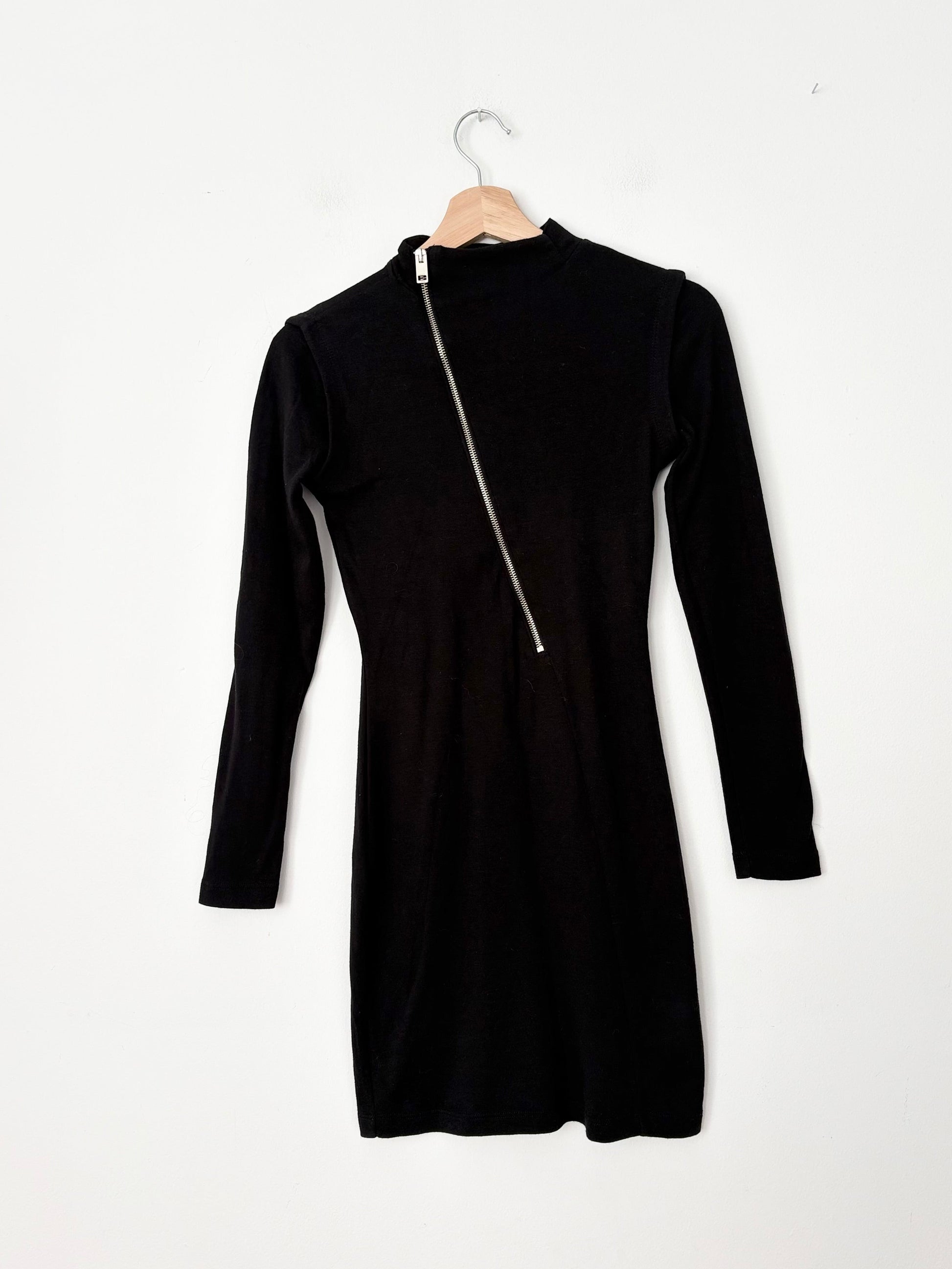 Robe Diesel noire à manches longues avec fermeture éclair asymétrique sur le devant et détails de manches courtes