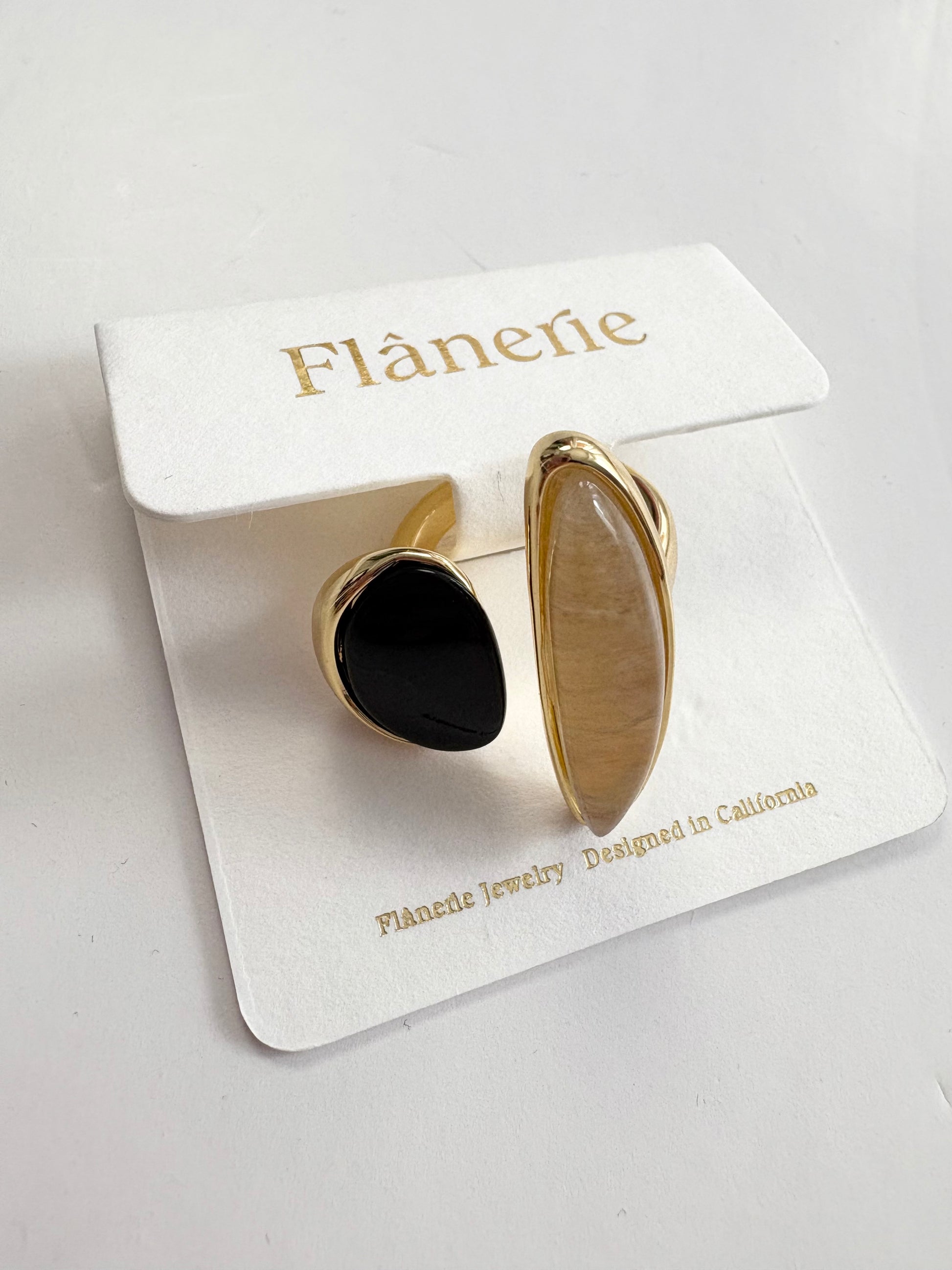 Bague en laiton plaqué or 18 carats ornée d'une superbe pierre d'agate noire vintage.