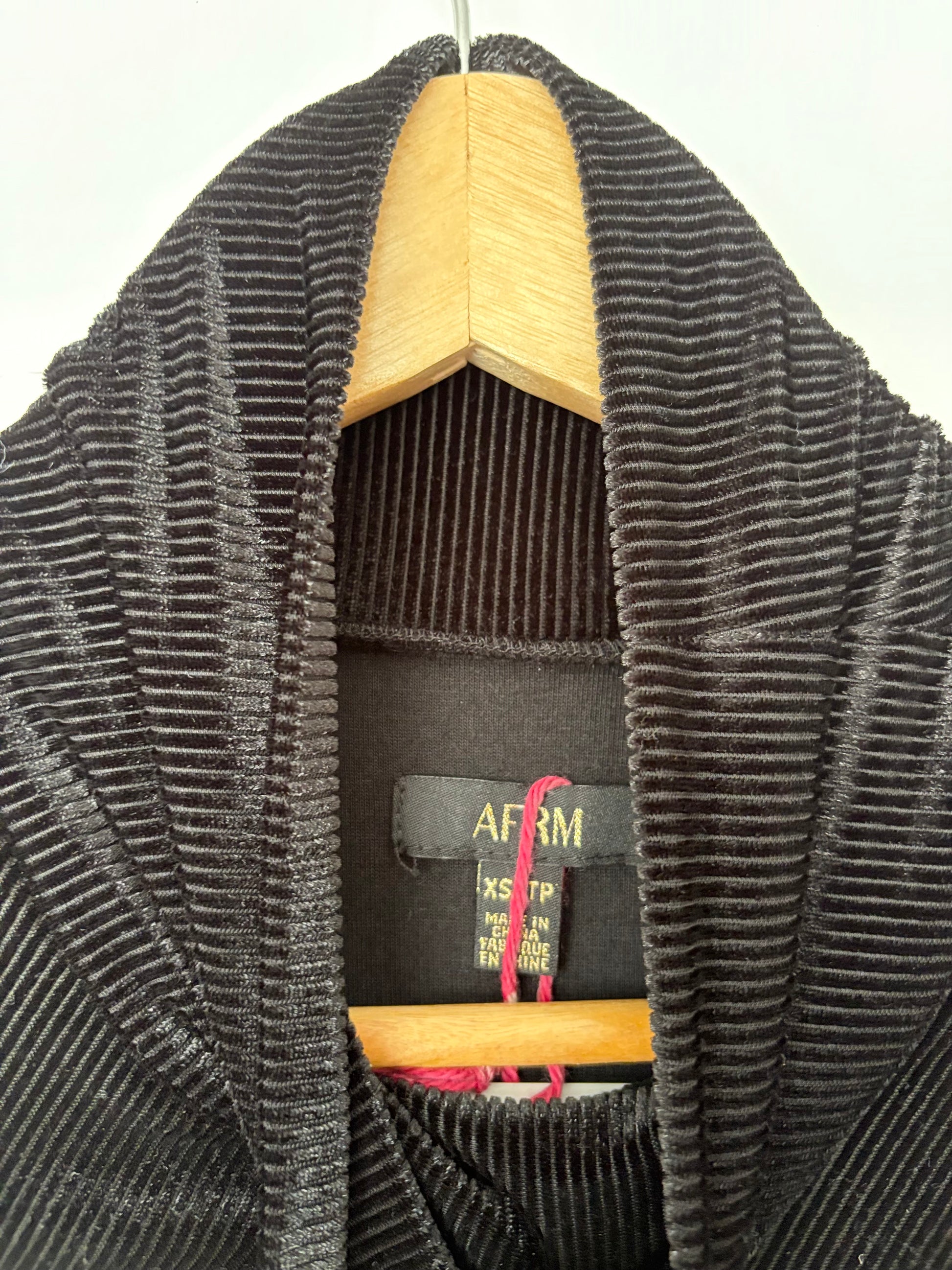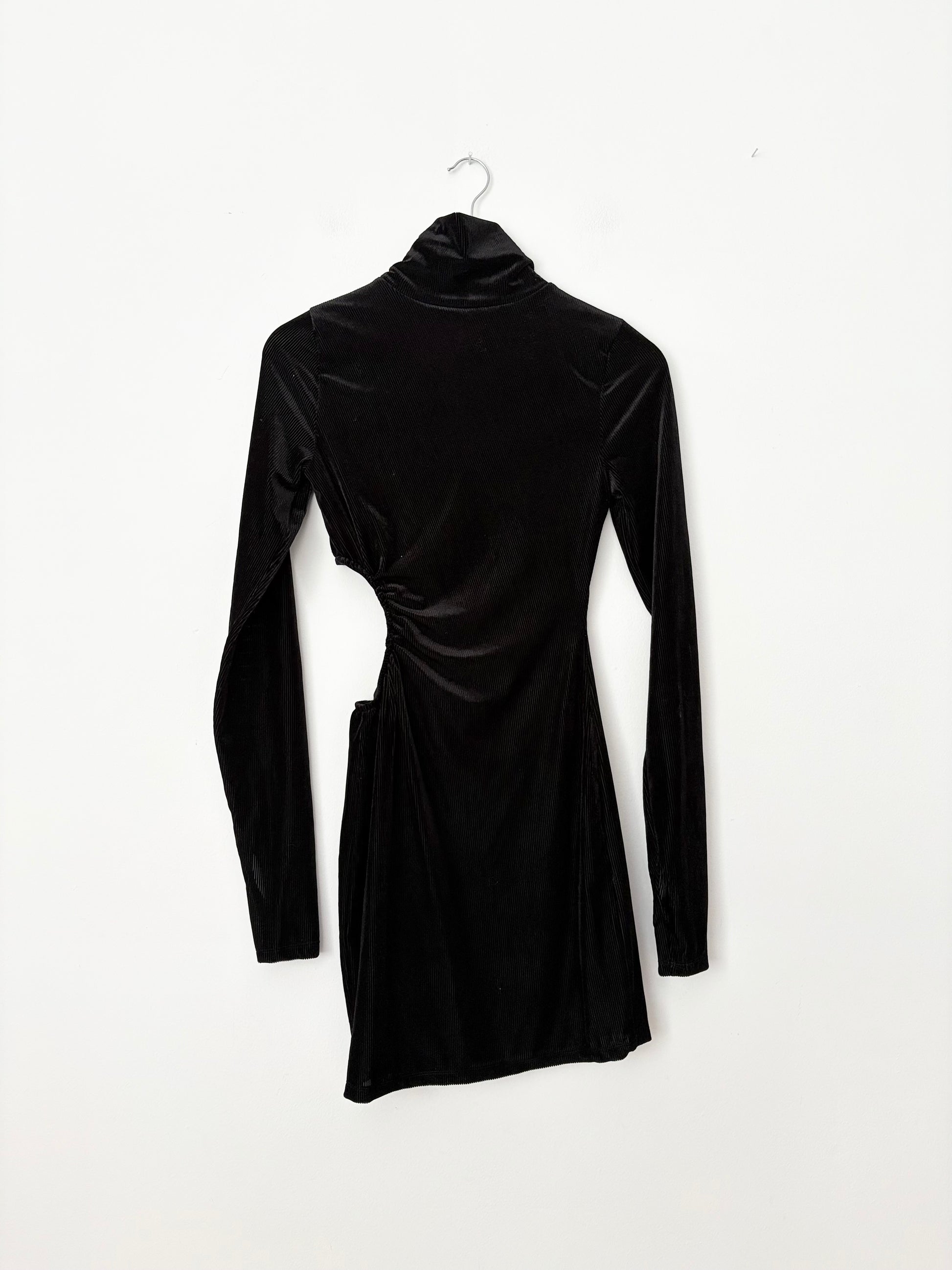 Robe courte en velours à manches longues, col roulé et découpe latérale audacieuse froncée. Le velours côtelé lui confère une texture à la fois luxueuse et douce, tandis que les poignets passe-pouces ajoutent une touche sport-chic. Partiellement doublée pour plus de confort, elle s'enfile facilement.