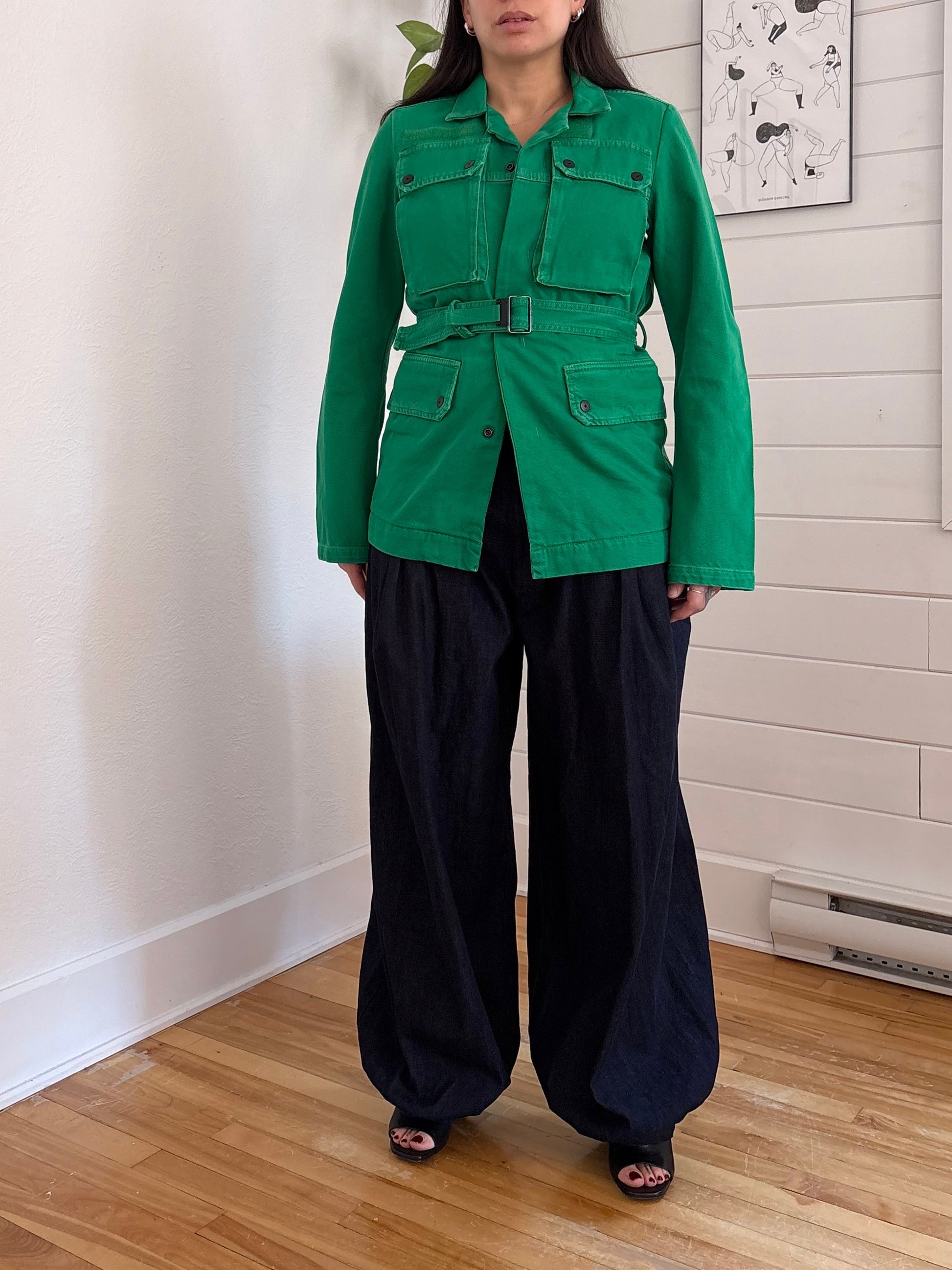 La veste en jean Field 70's offre une coupe droite. En serrant la ceinture, on peut obtenir une silhouette plus cintrée. La fente au dos apporte une touche d'originalité. Cette veste de terrain se ferme par des boutons-pression. Des poches à rabat, également fermées par des boutons-pression, sont placées à la poitrine et à la taille.