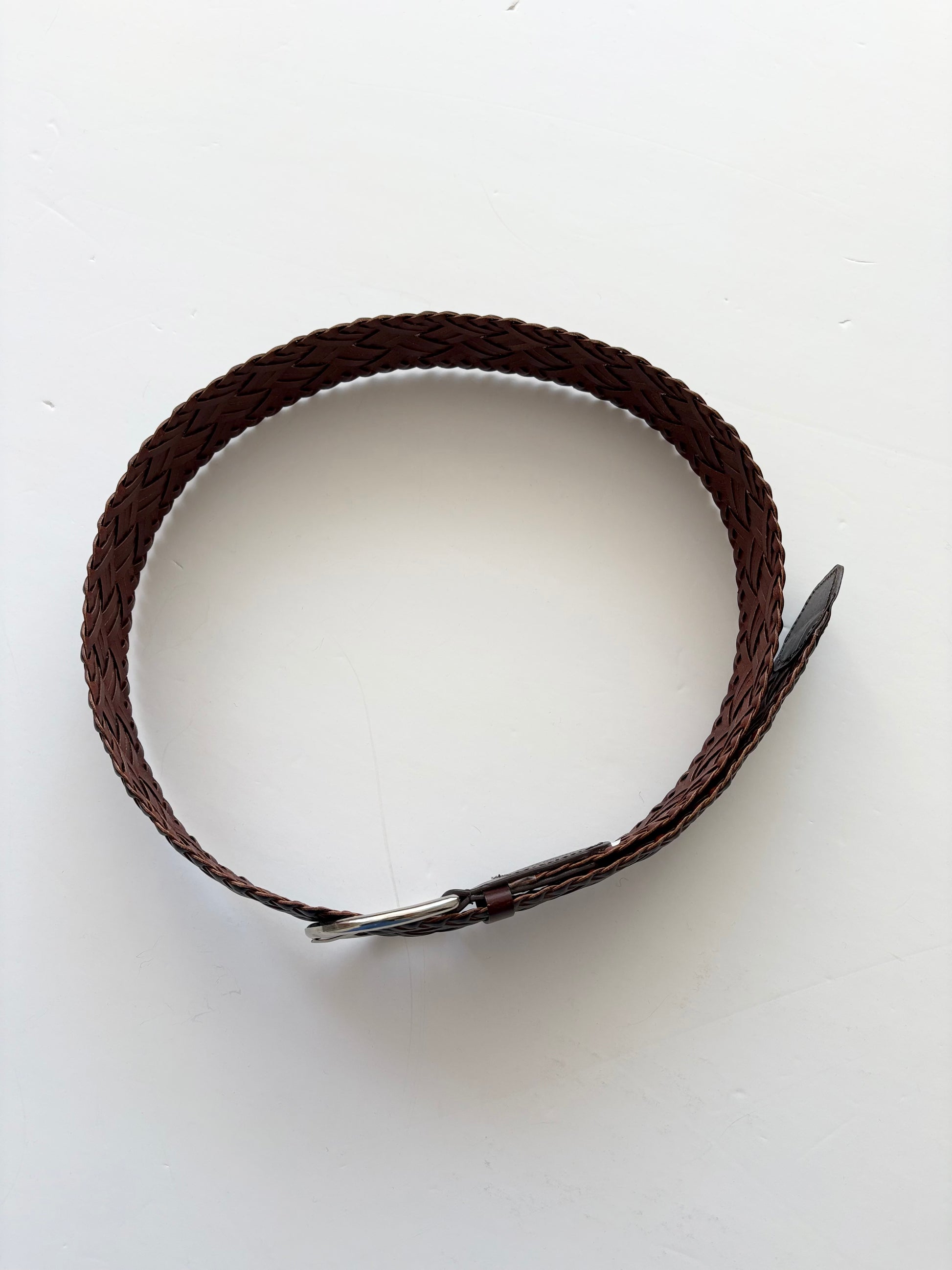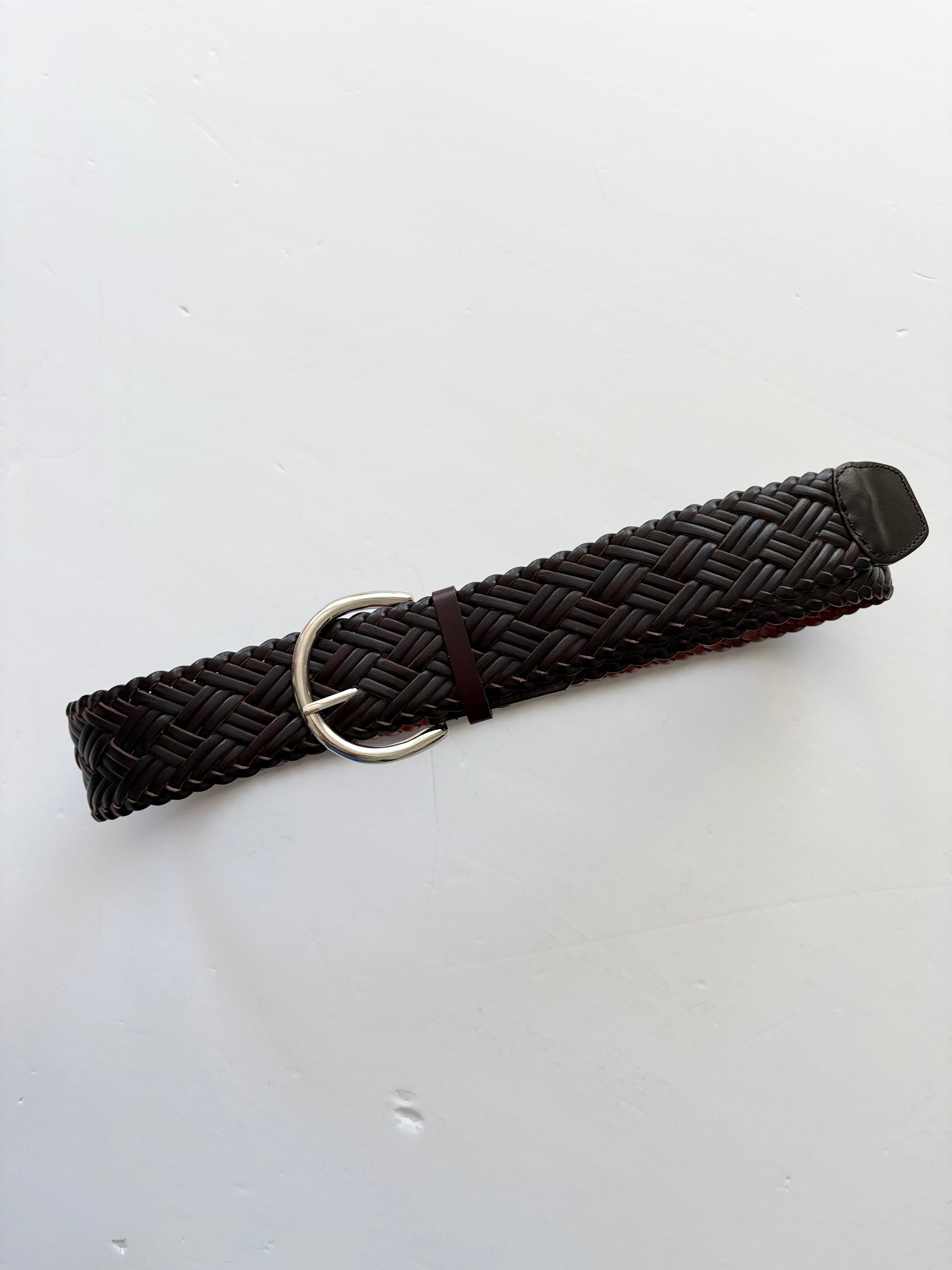 ceinture en cuir tressé marron chocolat foncé