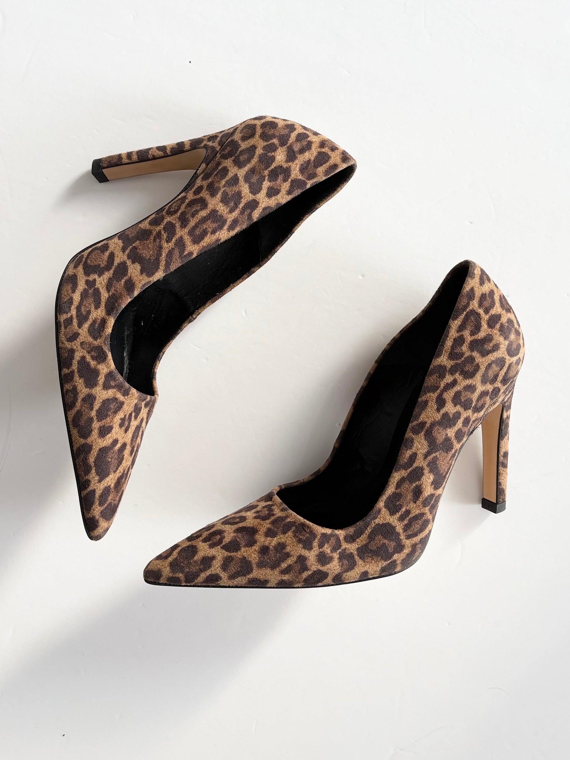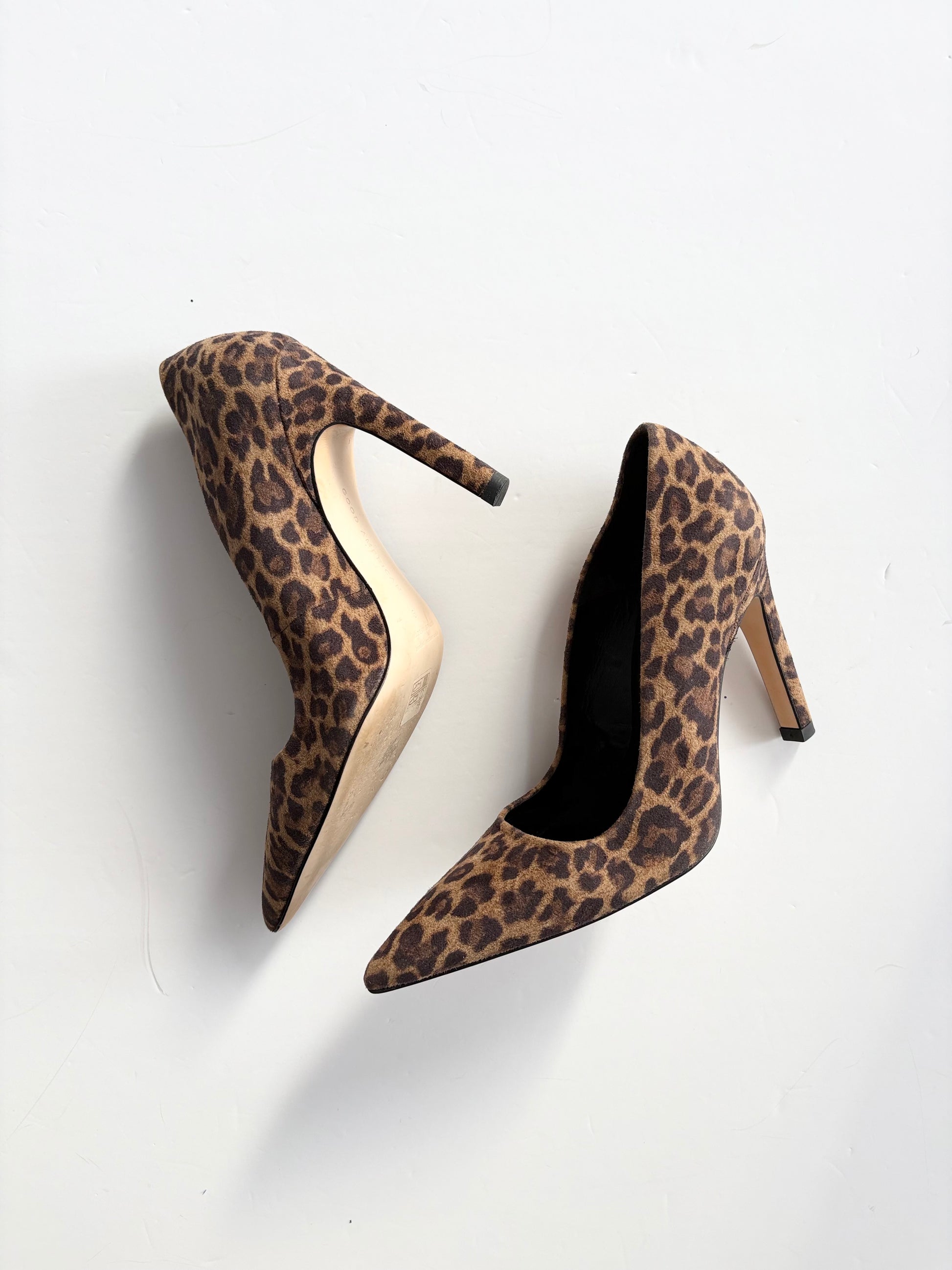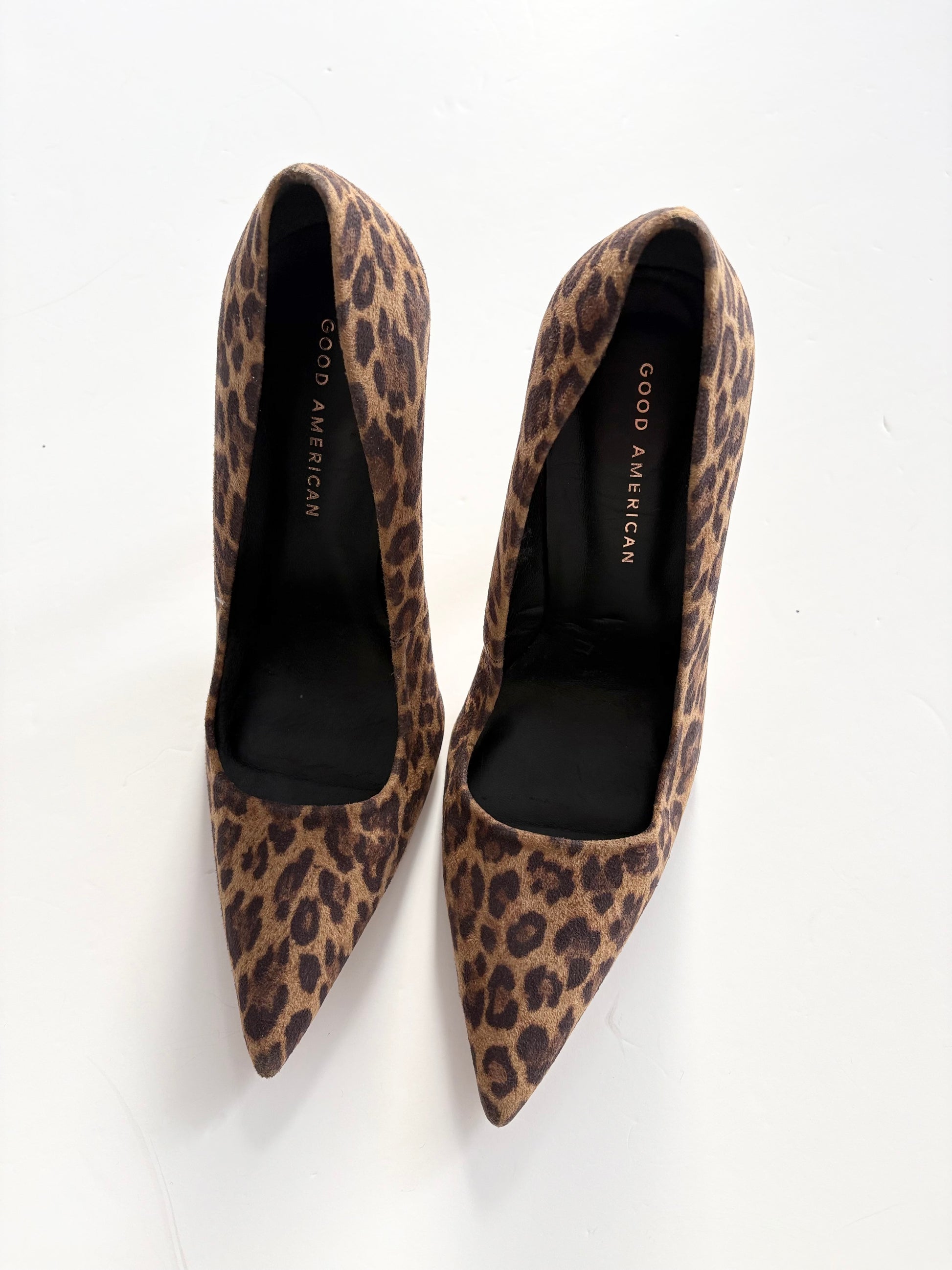 Escarpins Good American The Icon en daim à talons léopard, pointure US 6