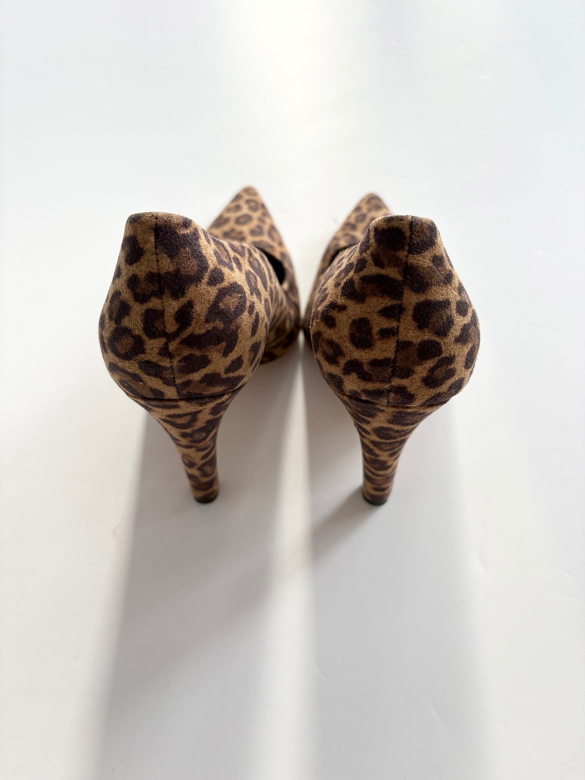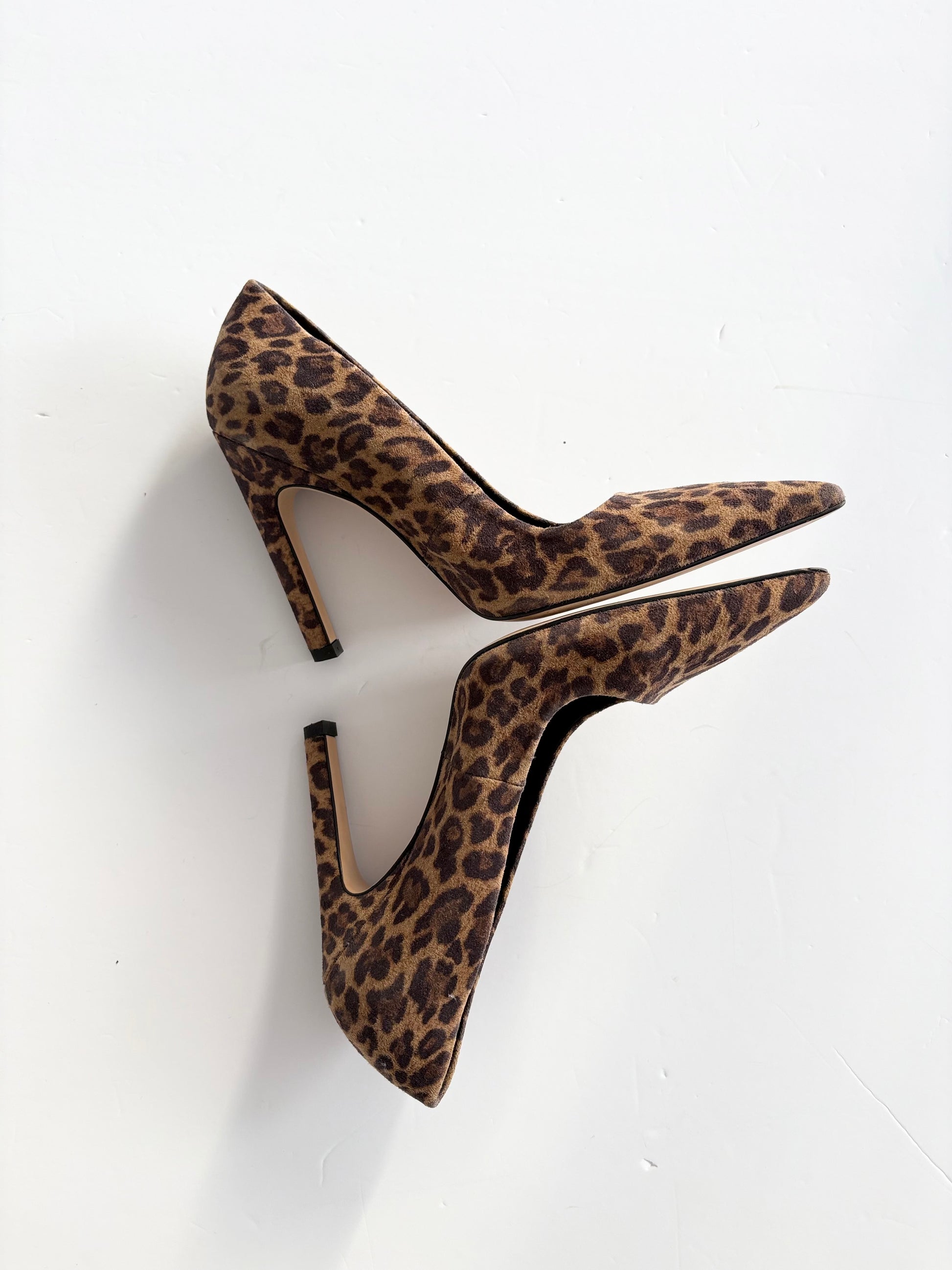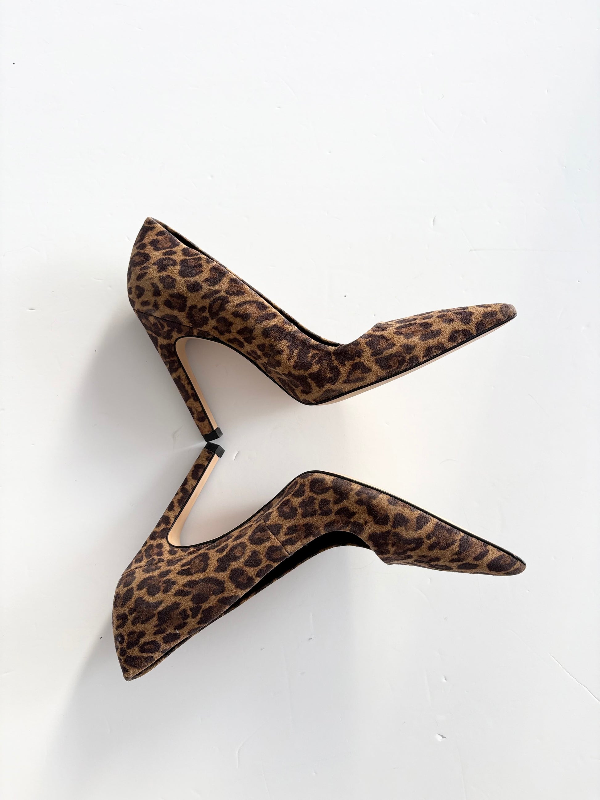 Escarpins Good American The Icon en daim à talons léopard, pointure US 6