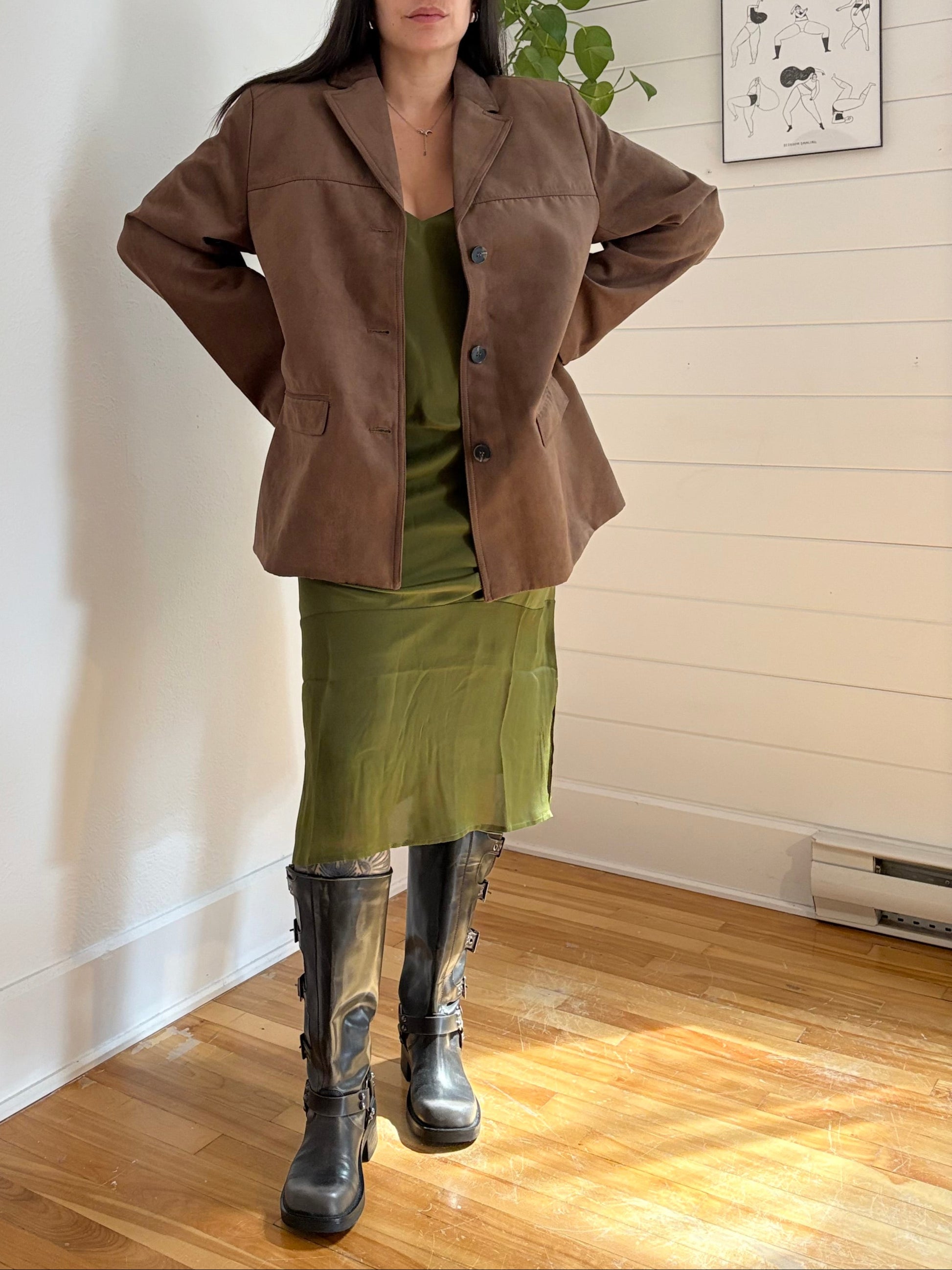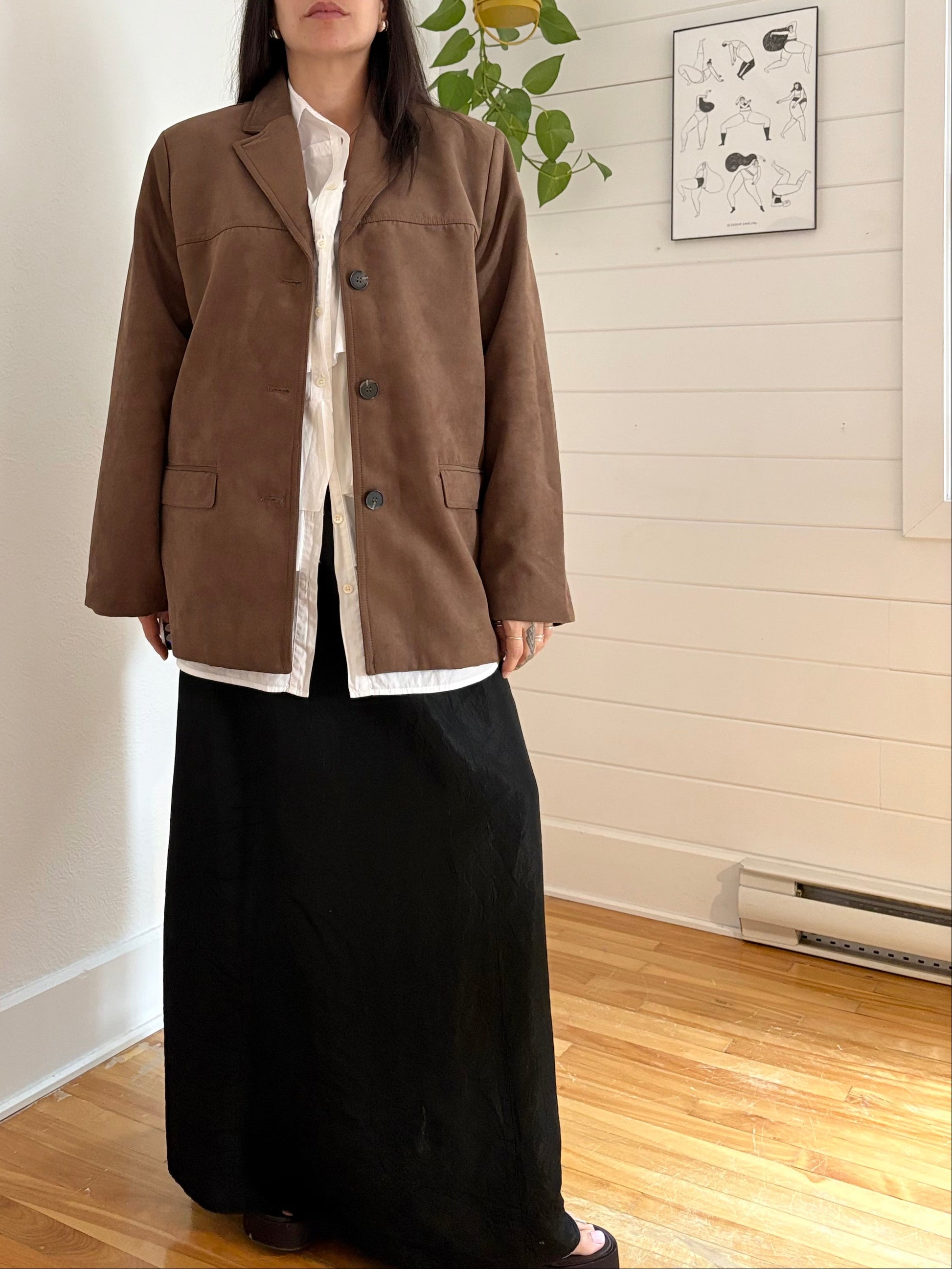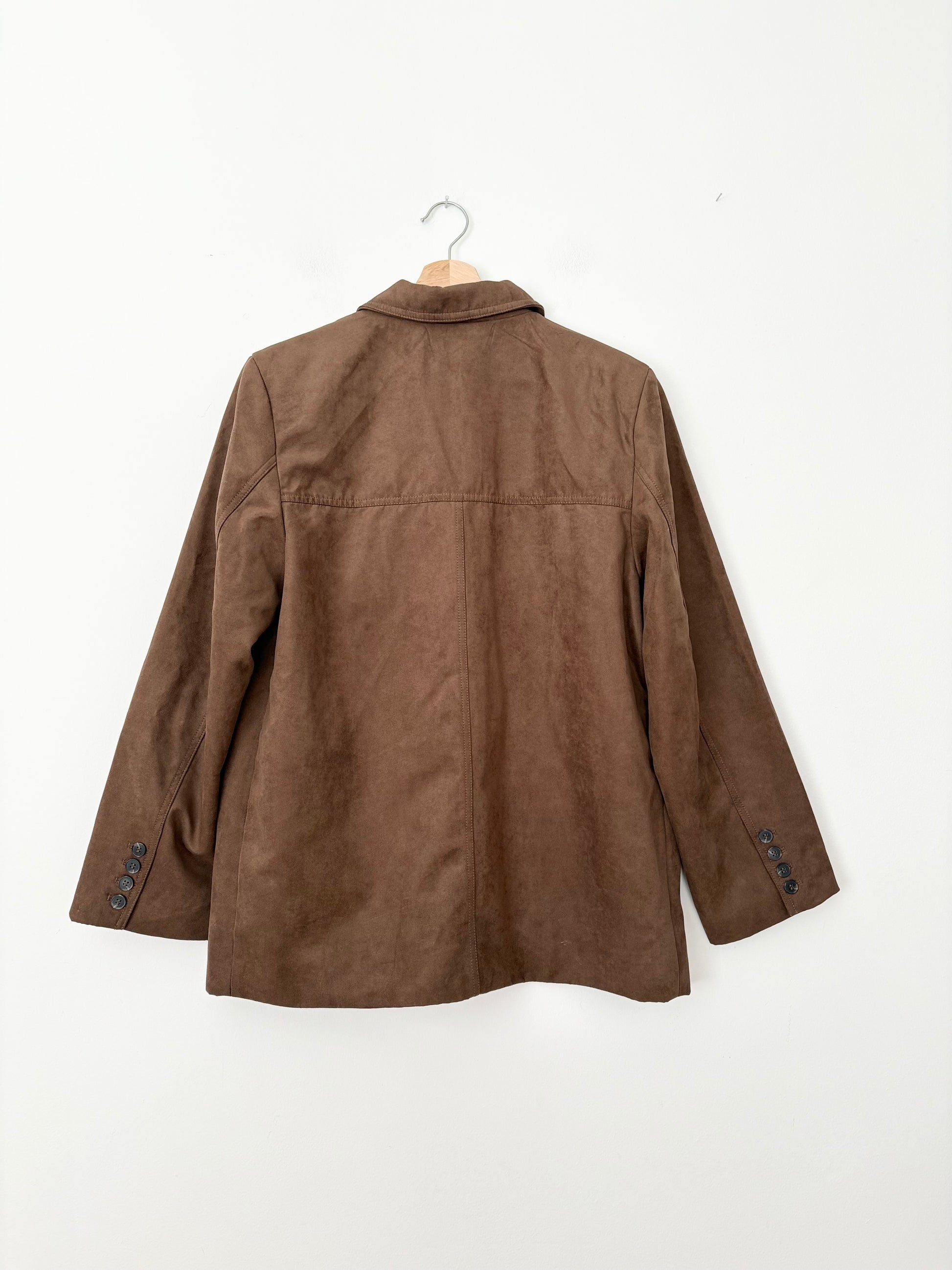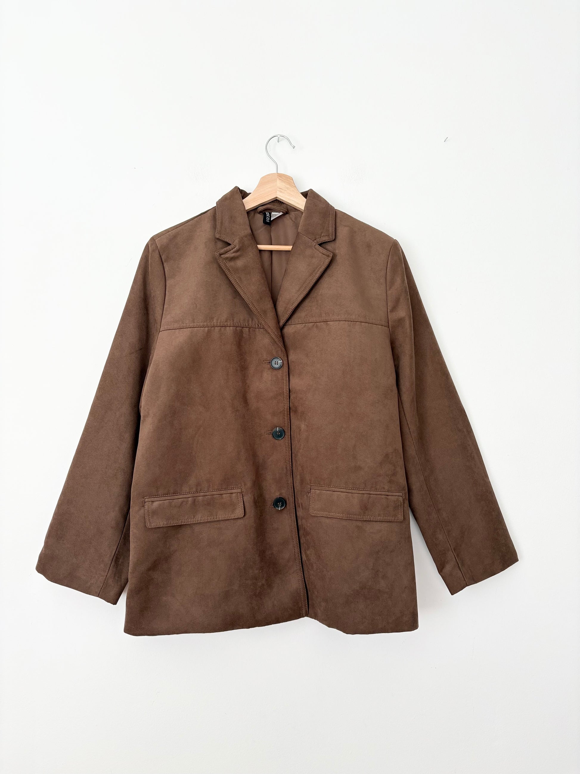 Veste ample à simple boutonnage. Revers crantés, boutons sur le devant, empiècement devant et dos, et poches avant à rabat. Poignets fendus. Doublée.
