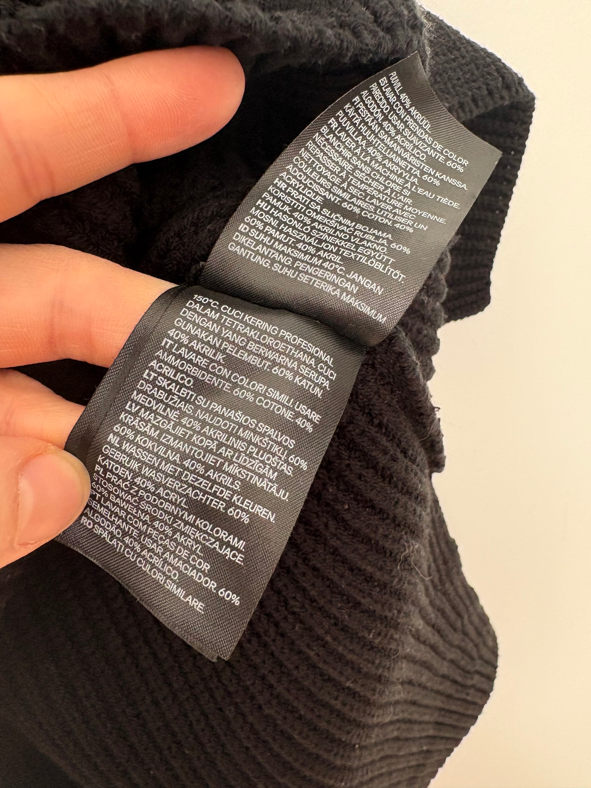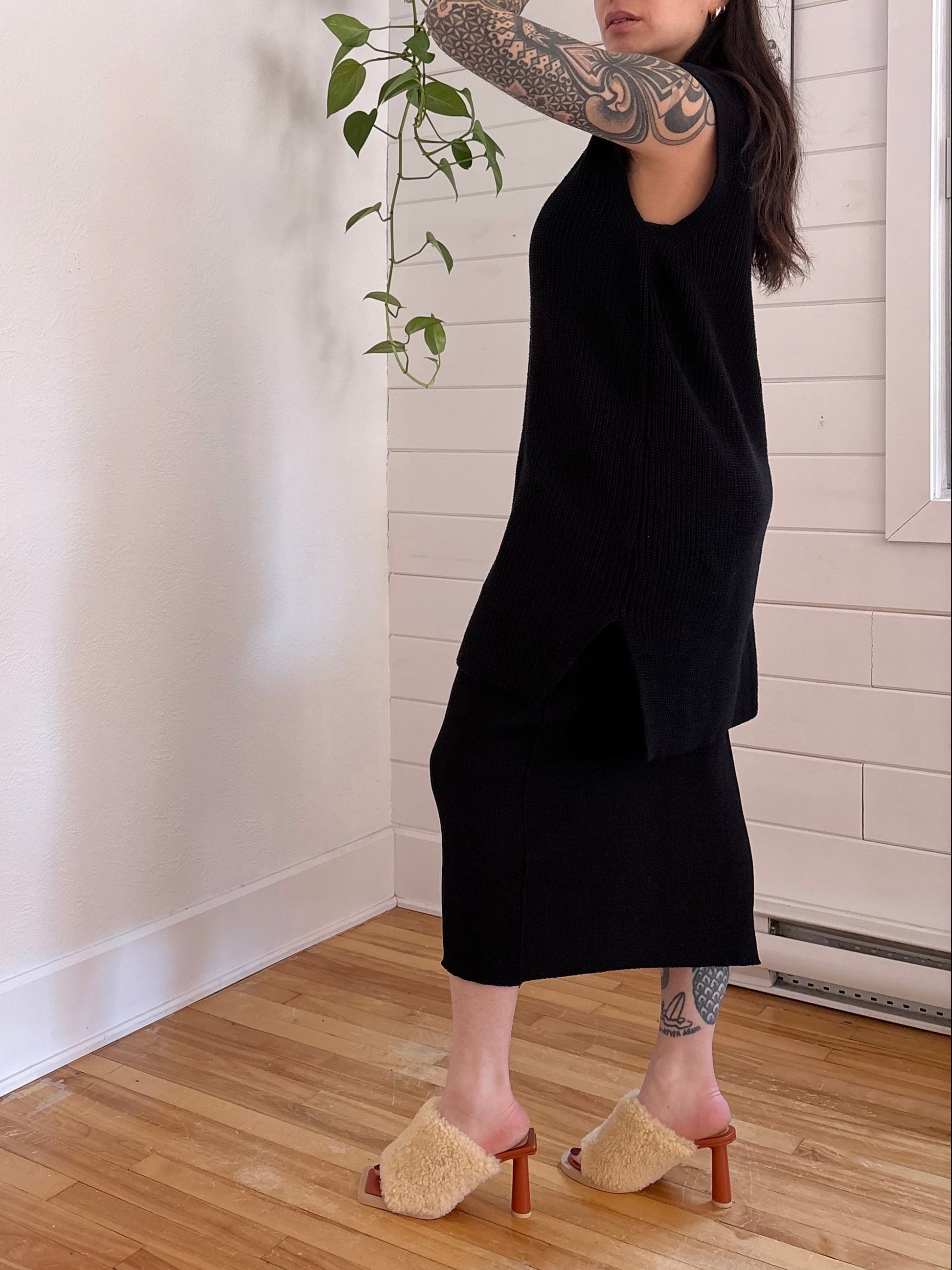 Robe pull noire sans manches en grosse maille, avec col montant et fentes latérales