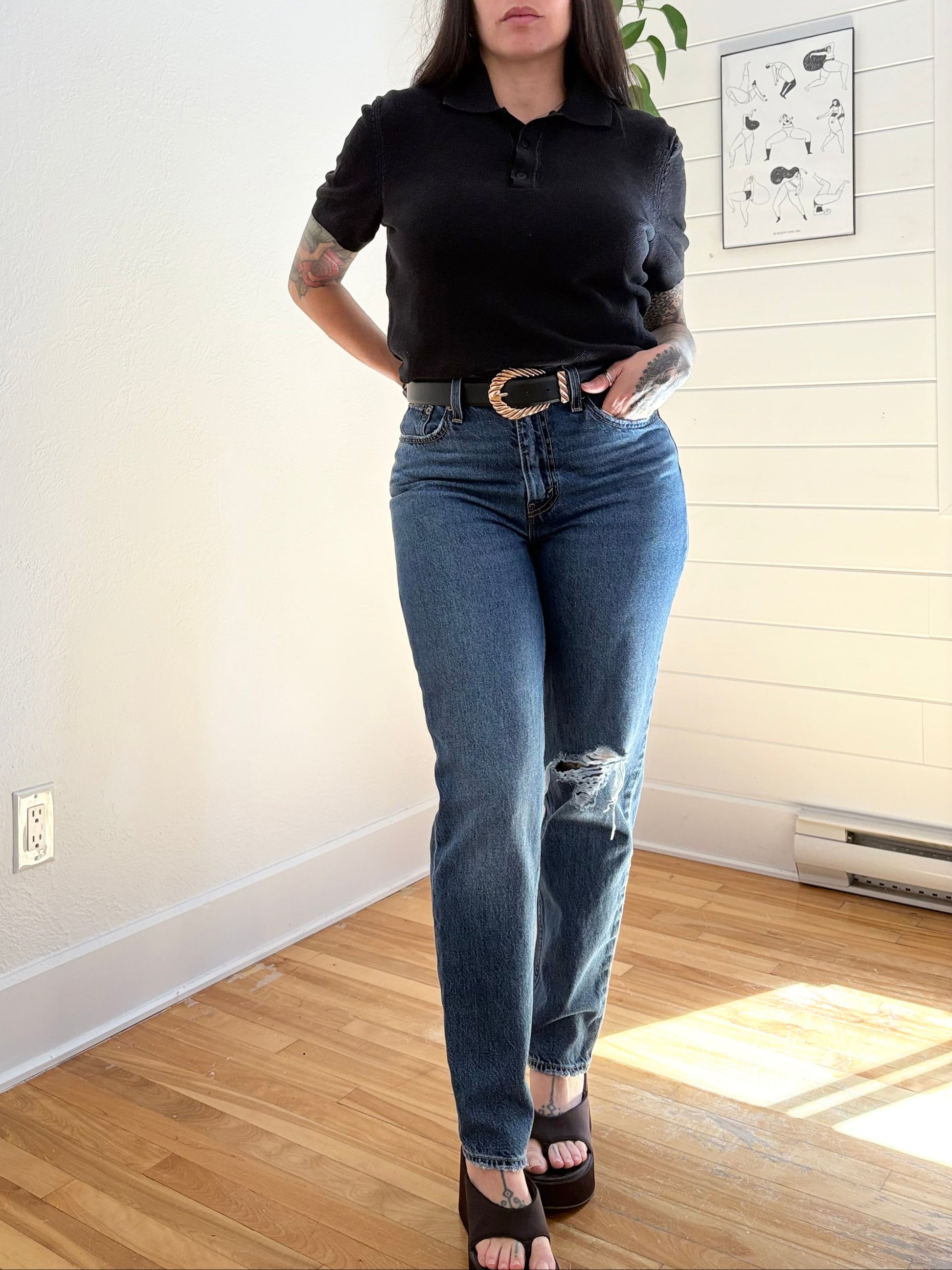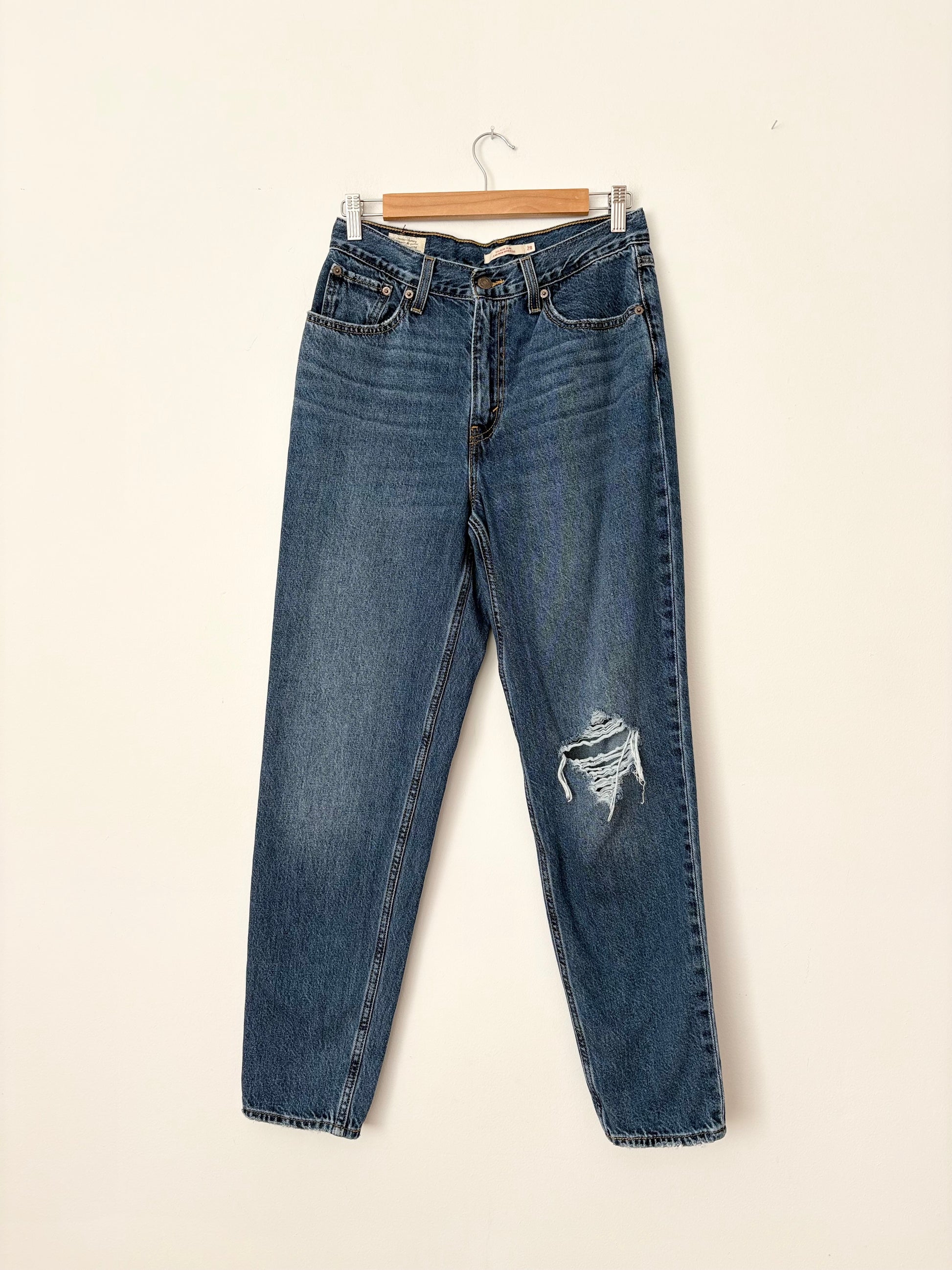 Ce jean Levi's® Premium d'inspiration vintage présente une taille haute et une coupe décontractée resserrée à la cheville. Il est confectionné en denim de coton non extensible. Il présente un effet usé intentionnel sur un genou.