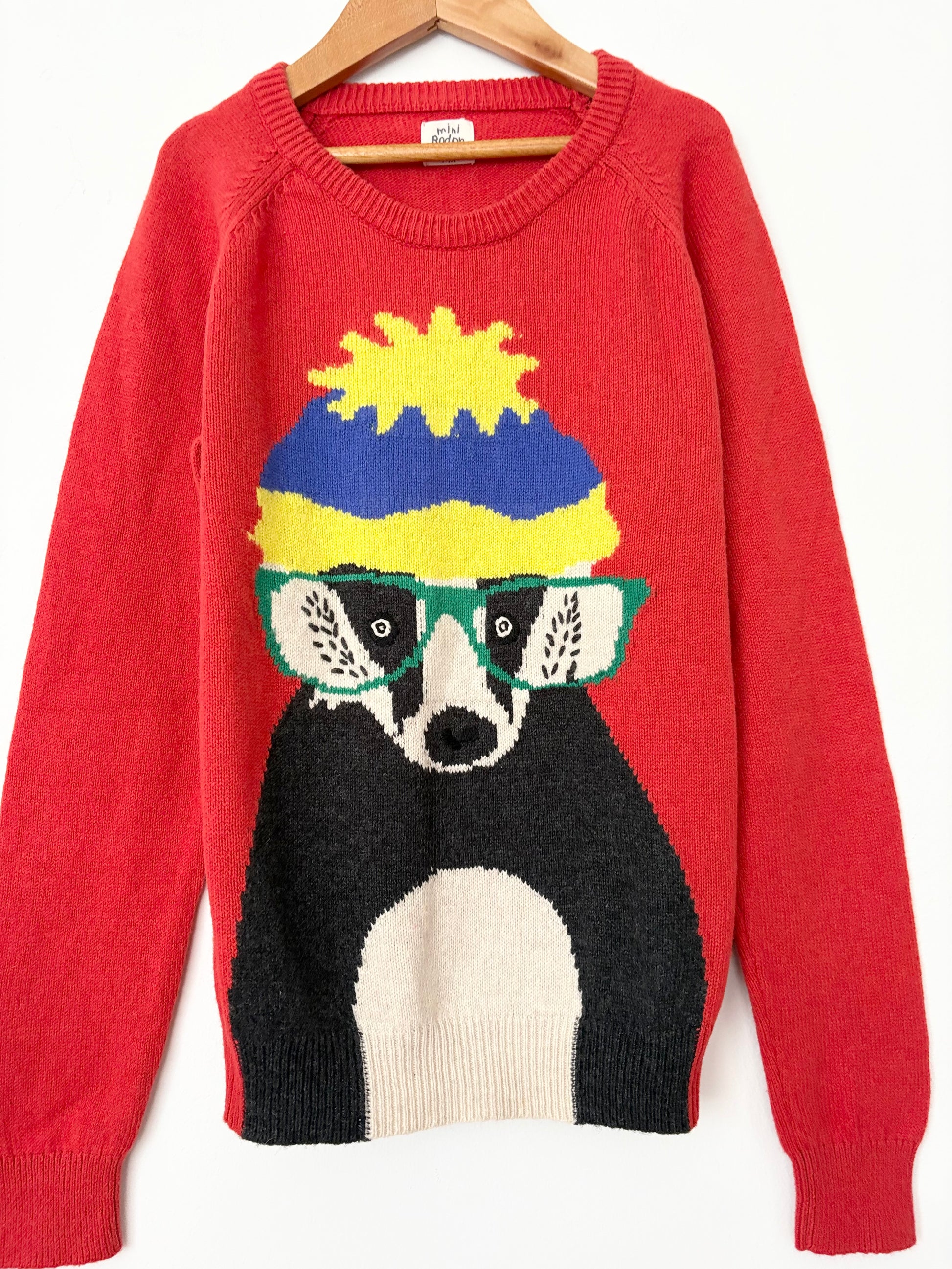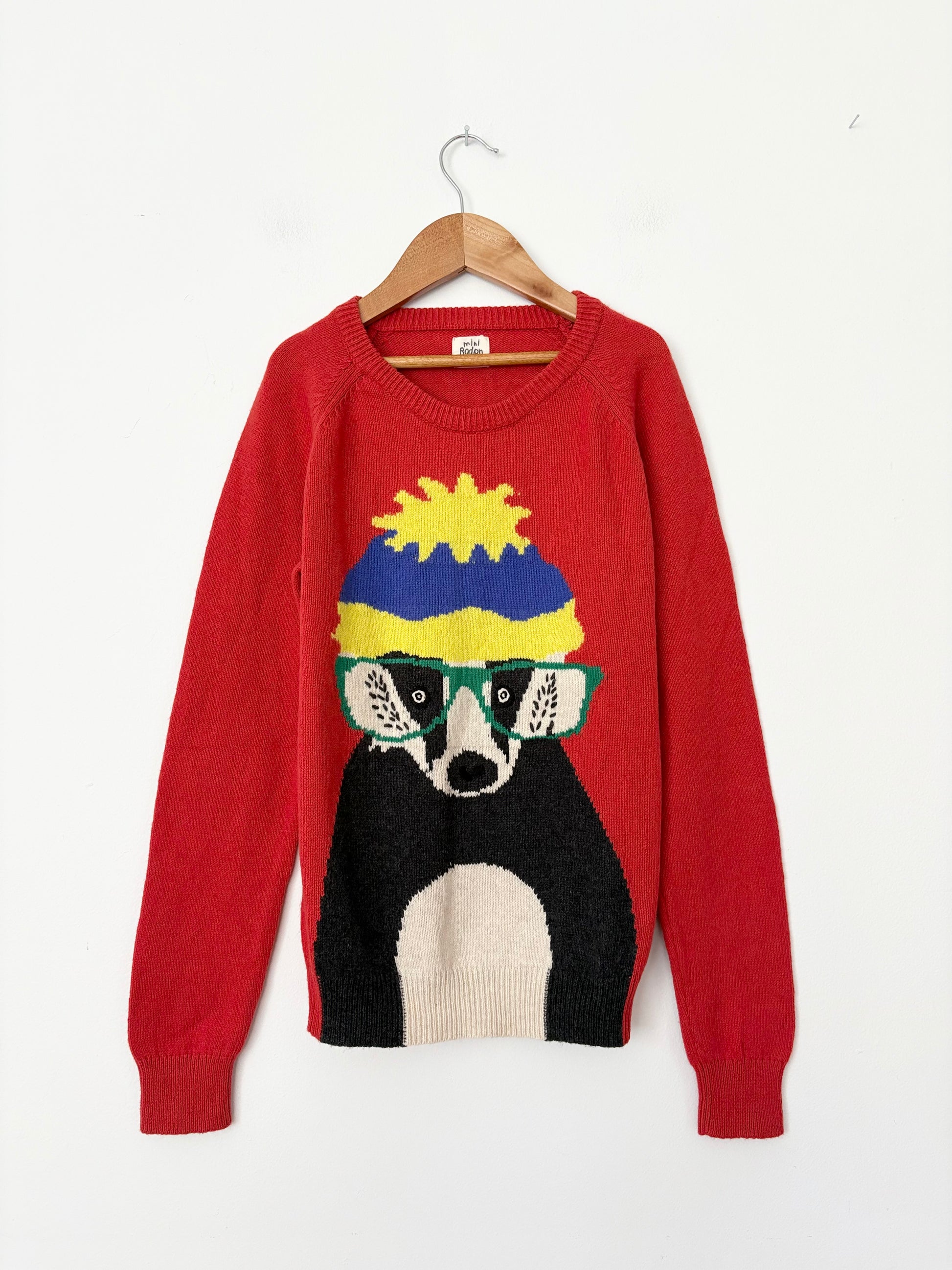Pull en tricot mélangé coton-laine à motif raton laveur
