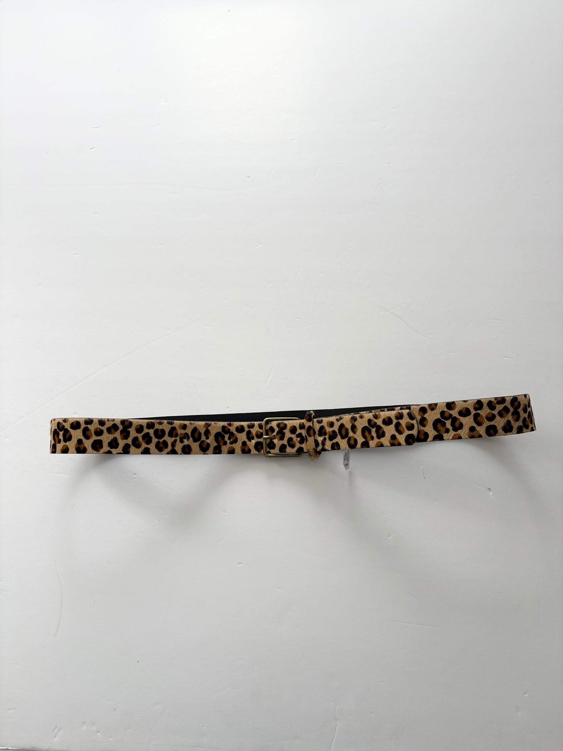 Ceinture en cuir véritable à poils de léopard avec boucle dorée