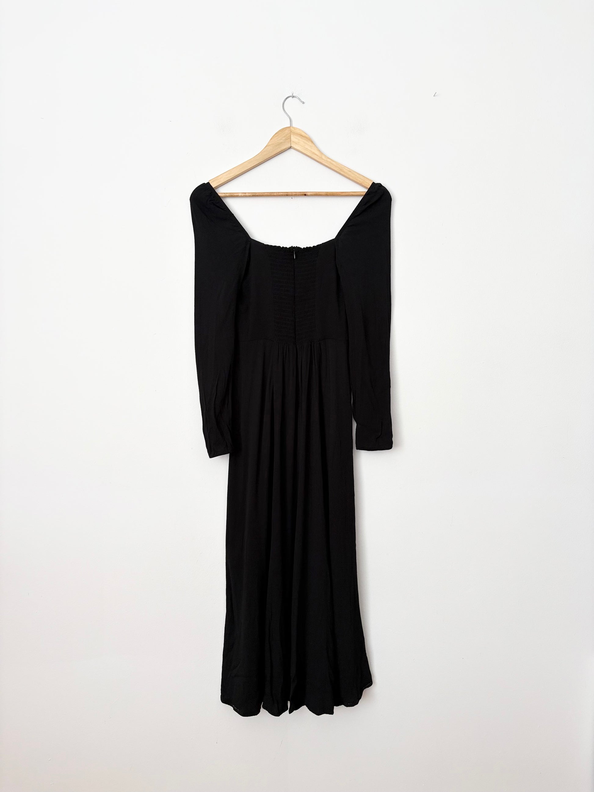 Dévoilez vos jambes. La robe Sigmund présente un buste ajusté et une jupe ample. Elle possède des épaules légèrement bouffantes, une fente haute et un dos smocké.