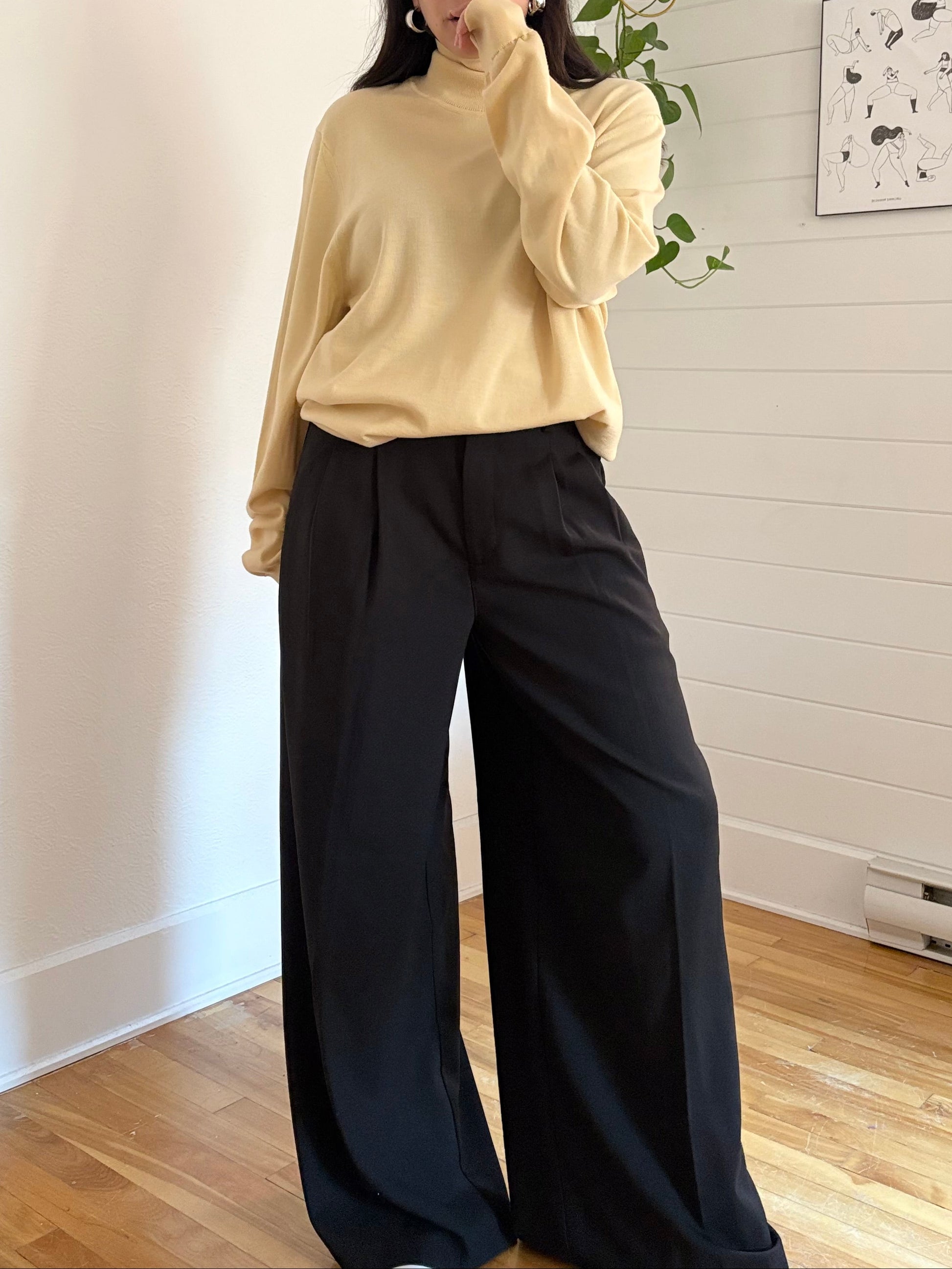 Pull à col roulé en laine jaune beurre