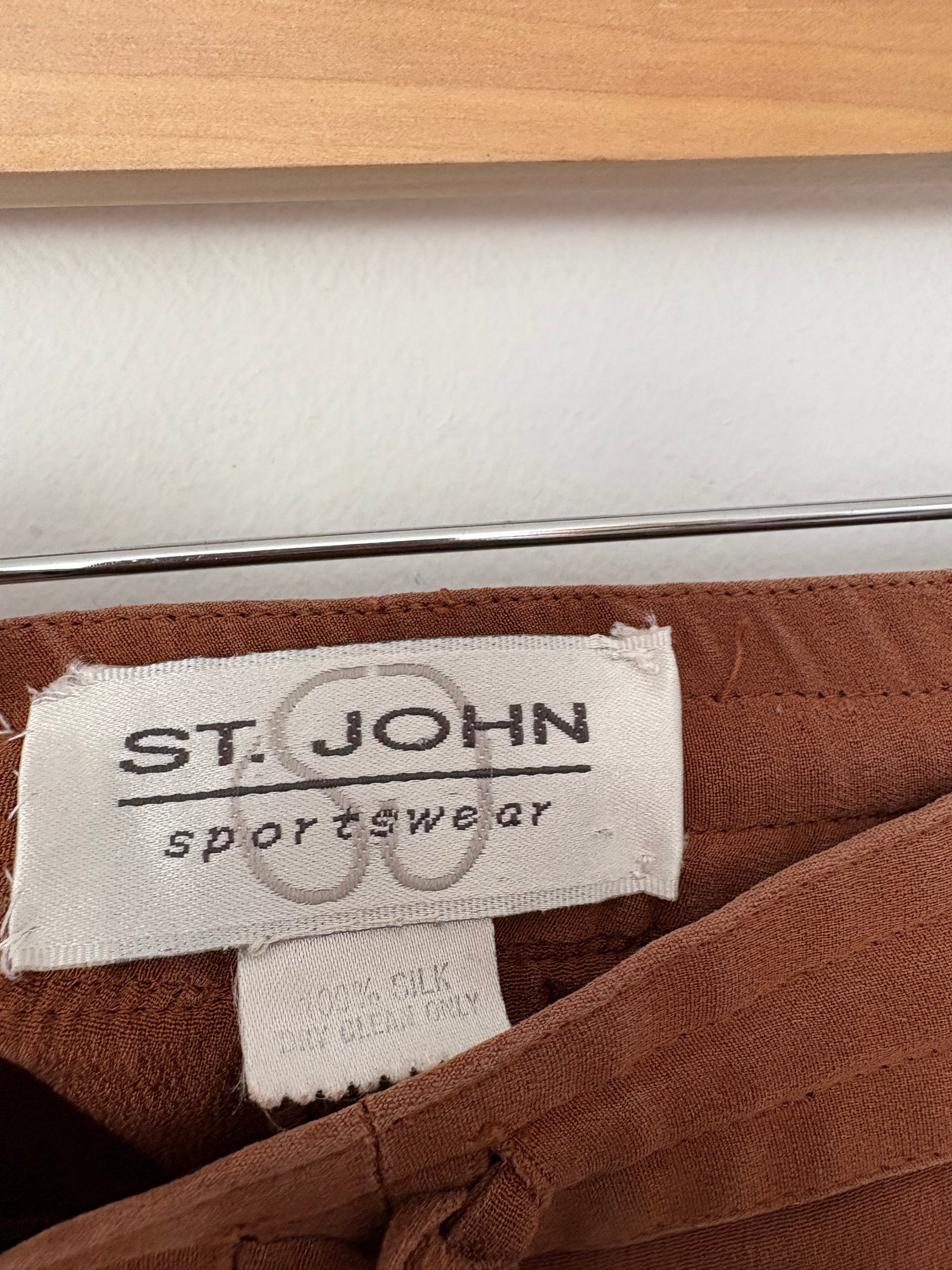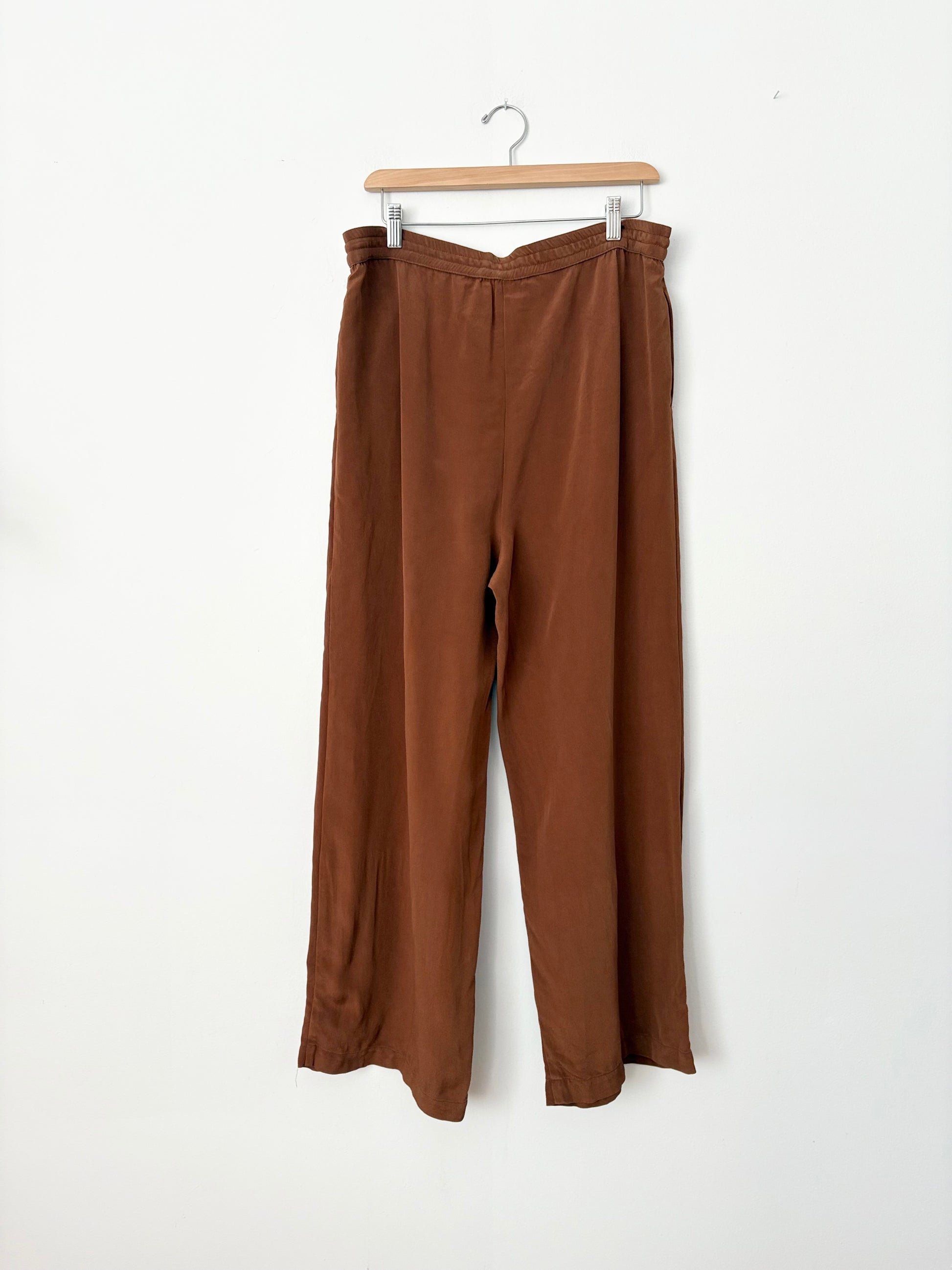 Pantalon large en soie marron St John, taille M/L