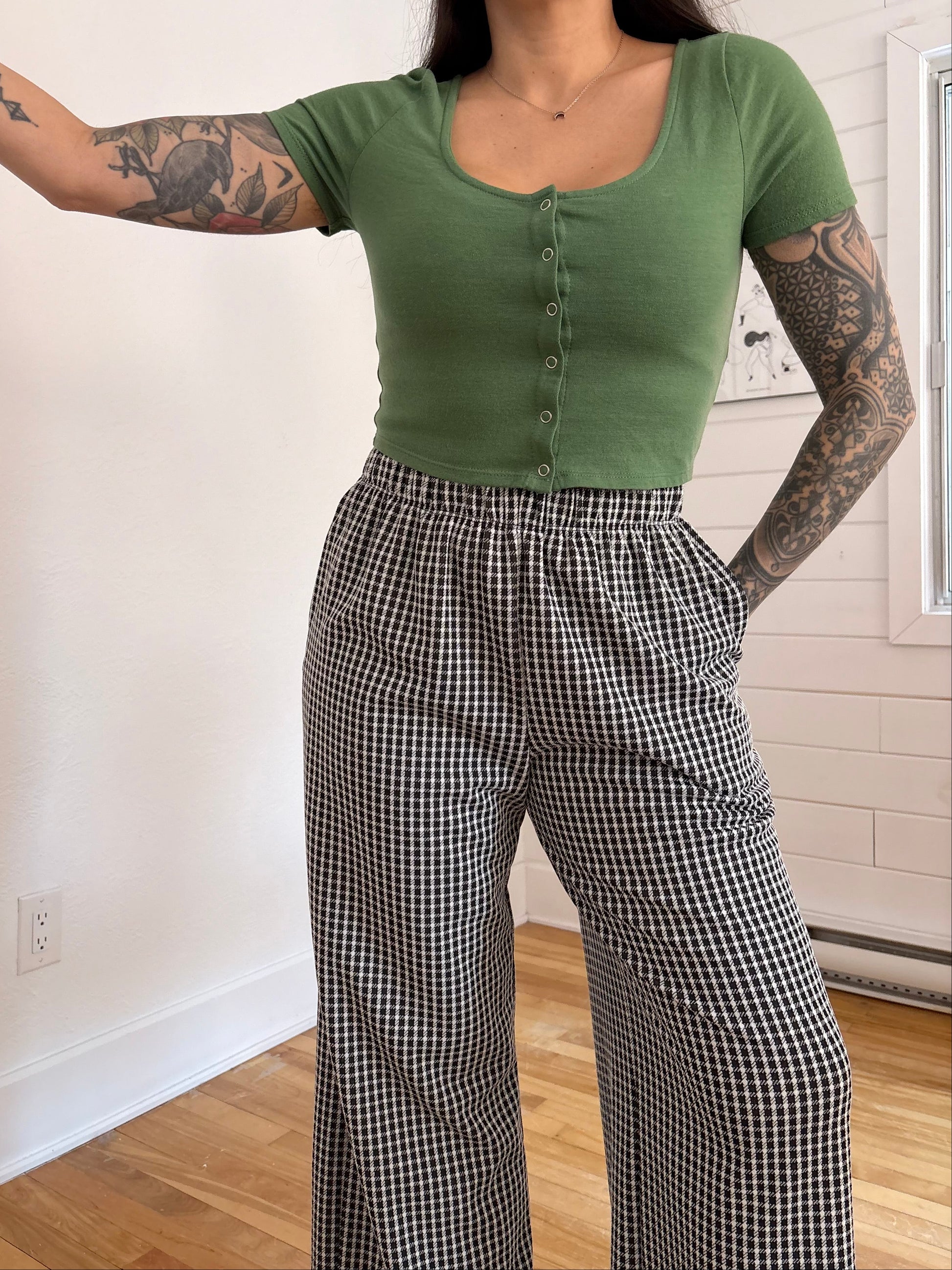 T-shirt court vert à boutons sur le devant