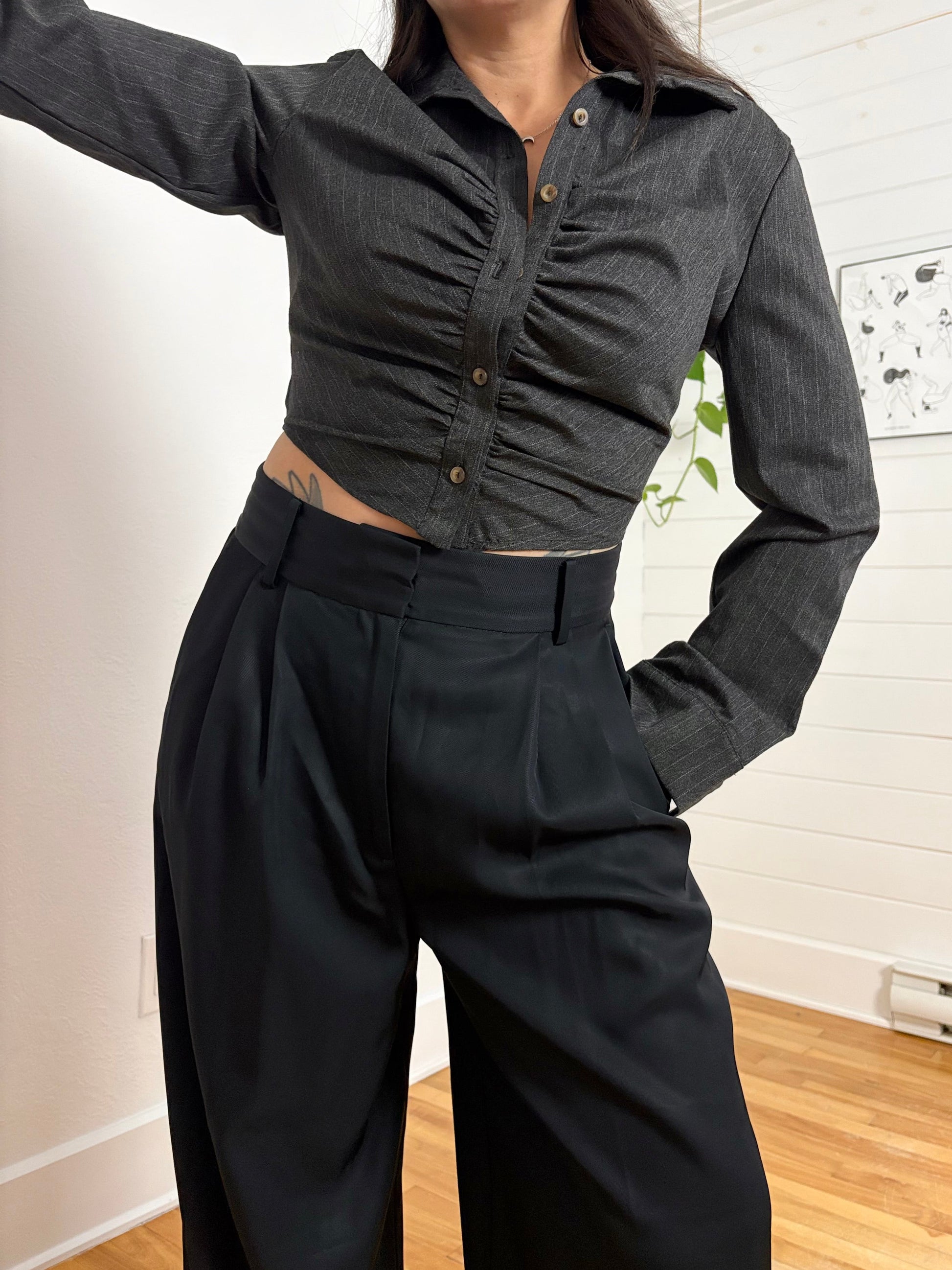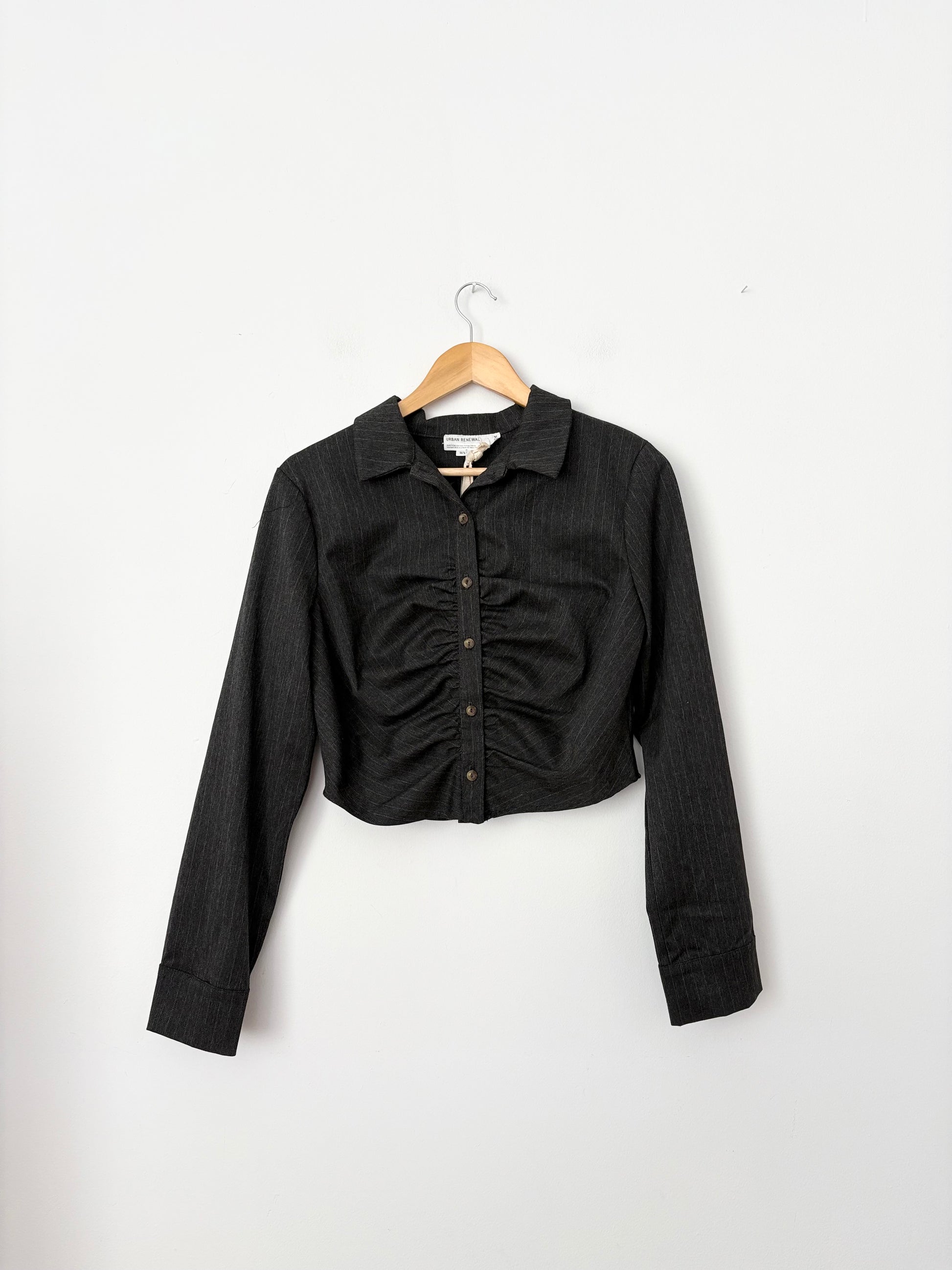 Chemisier à manches longues froncé et boutonné sur le devant, de la marque Urban Renewal, confectionné à partir de chutes de tissu.