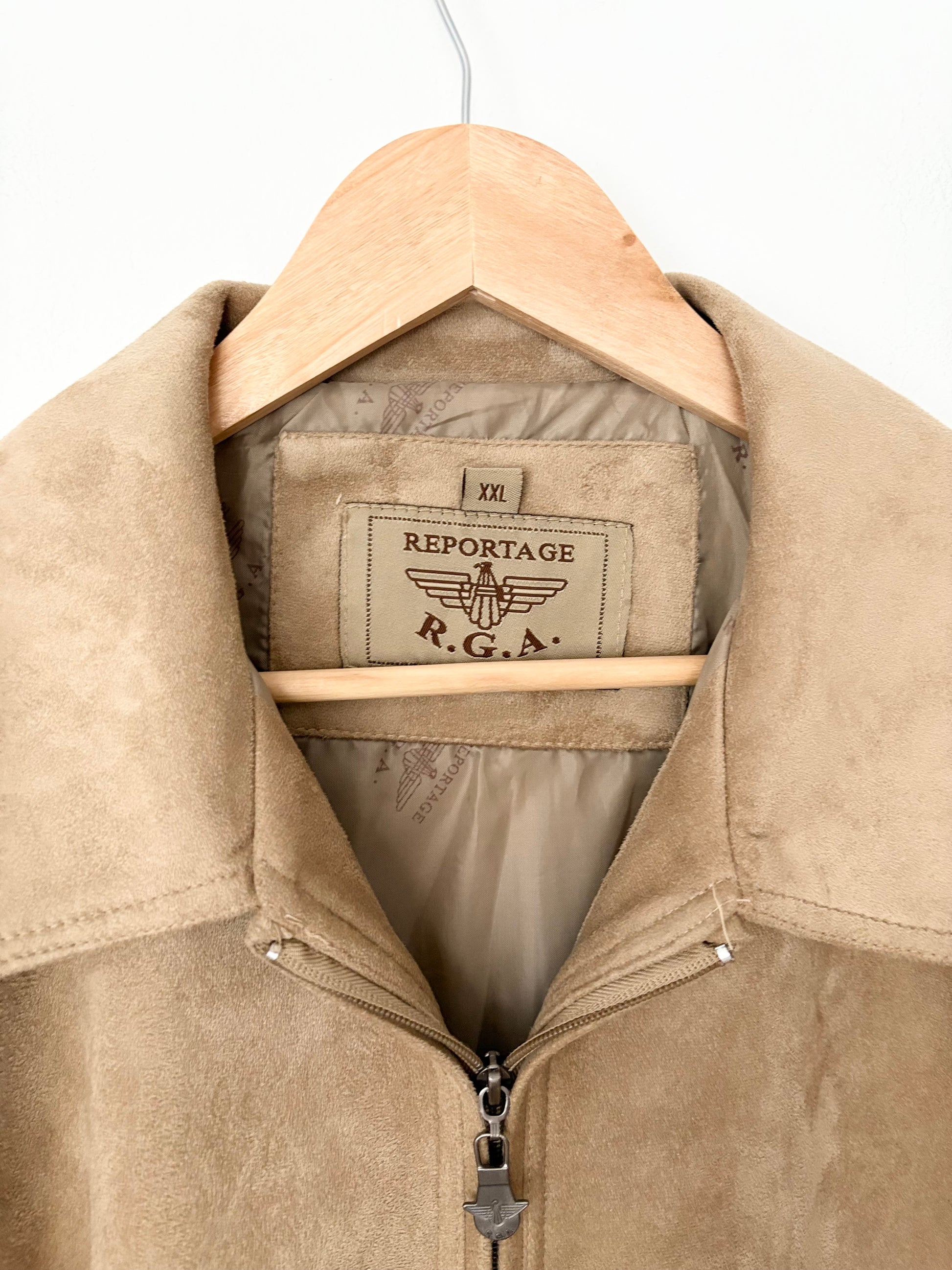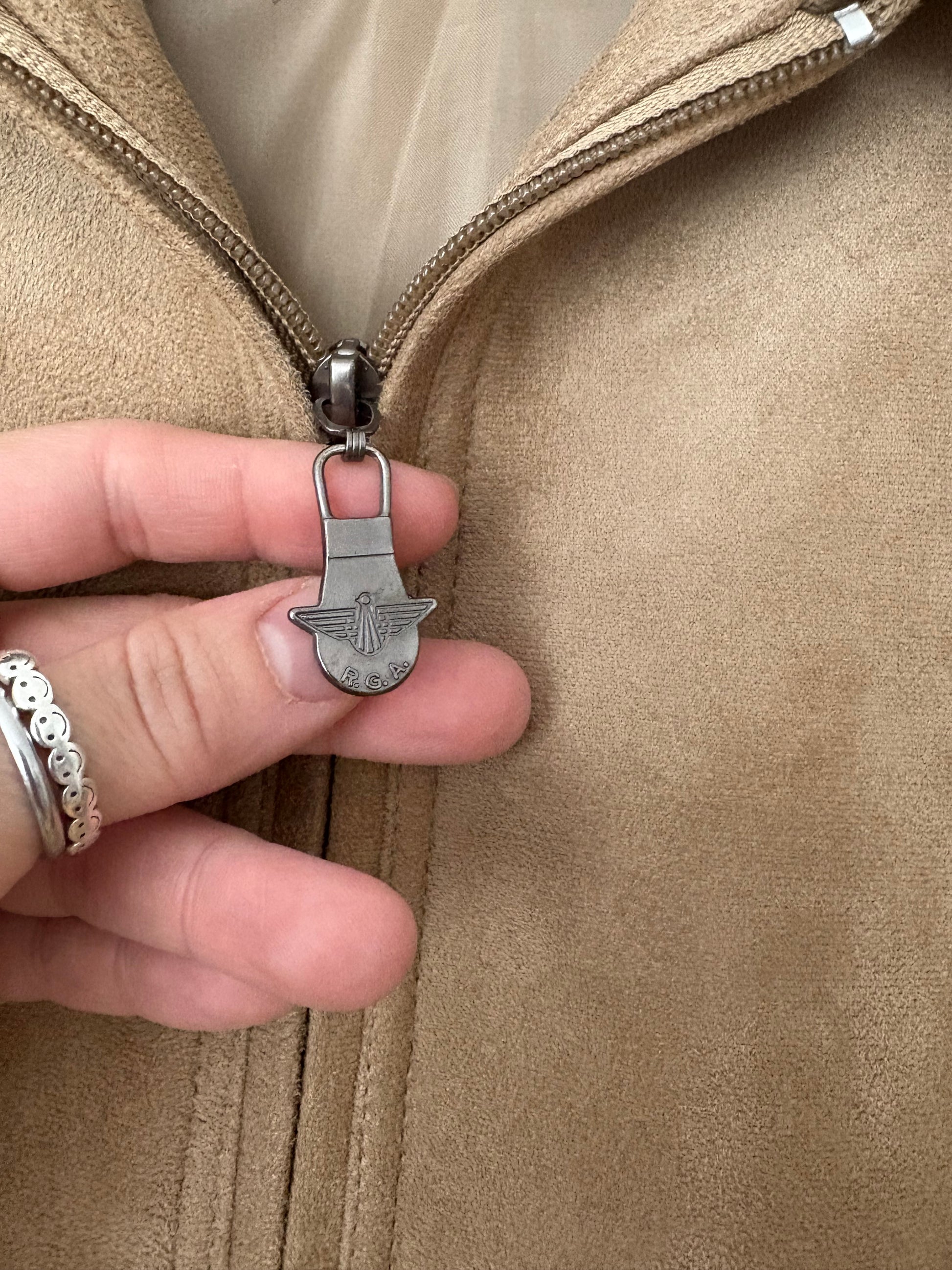 Blouson aviateur vintage RGA en daim avec fermeture éclair et tirette logotée.