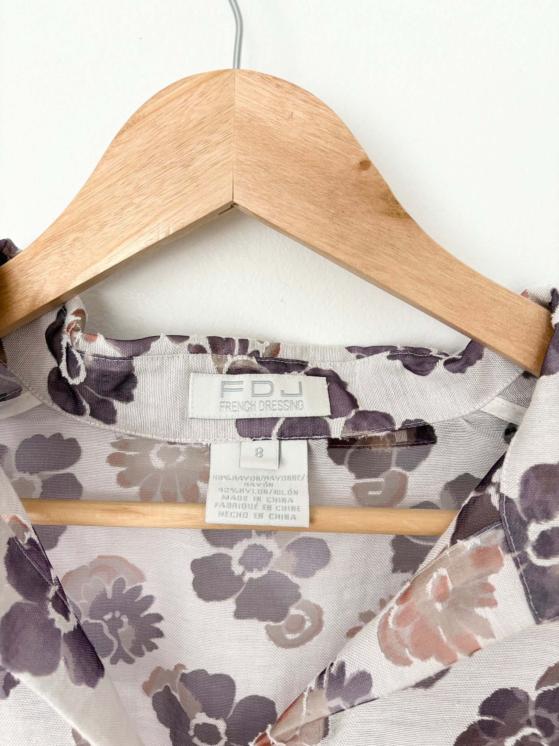 Blouse vintage FDJ à fleurs transparentes, taille moyenne