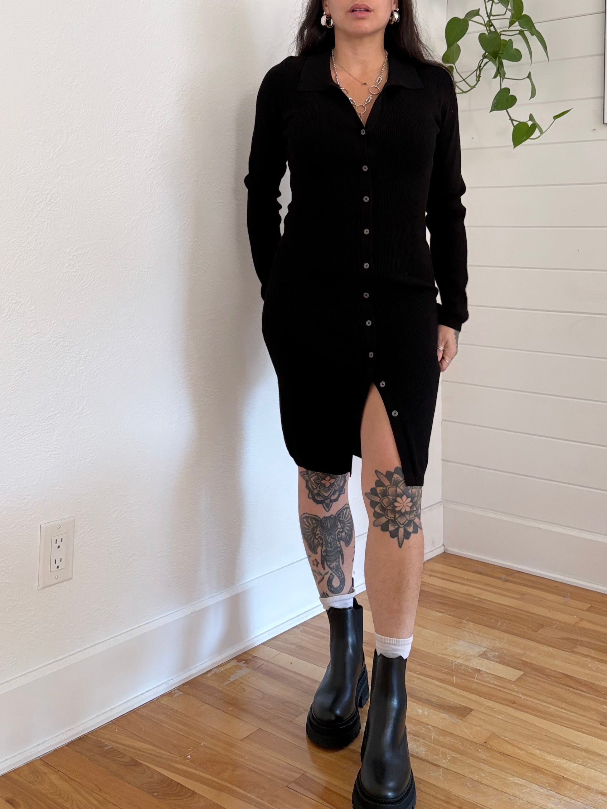 Un pull, une robe, une chemise boutonnée ; une triple protection. Voici une robe pull boutonnée, entièrement confectionnée. Elle est tricotée avec Wonder Yarn, un fil léger qui porte bien son nom. Ce fil doux comme la peau offre la chaleur de la laine en toute saison, sans la laine. Elle est confectionnée en viscose LENZING™ ECOVERO™, une fibre à base de bois issue de sources responsables et produite selon un procédé qui réduit l'impact sur les forêts, la biodiversité et l'approvisionnement en eau. Elle est confectionnée en demi-point cardigan avec des côtes verticales distinctes pour un aspect et un toucher tridimensionnels.