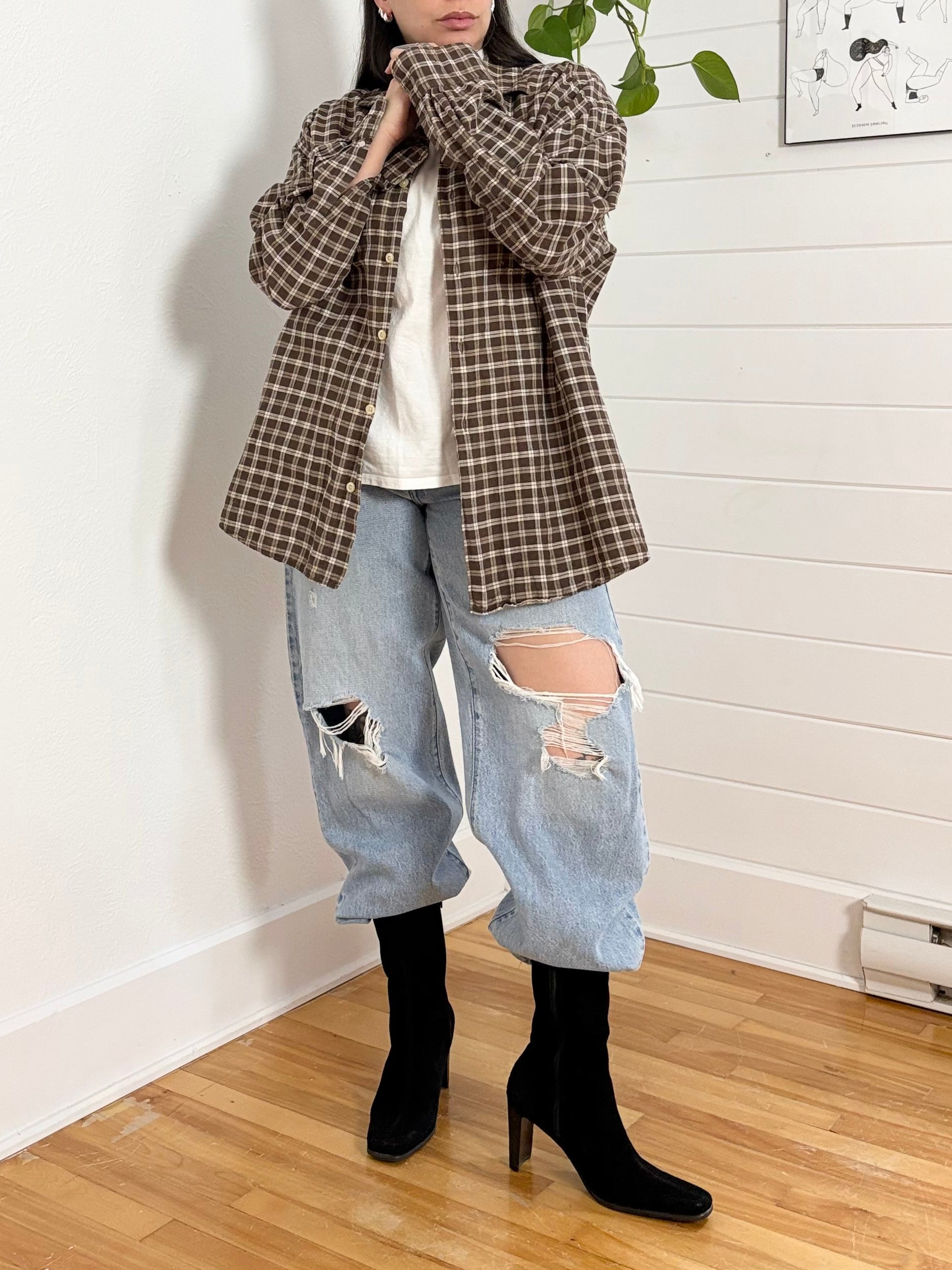 Chemise à carreaux carrée boutonnée Y2K Boss Sport