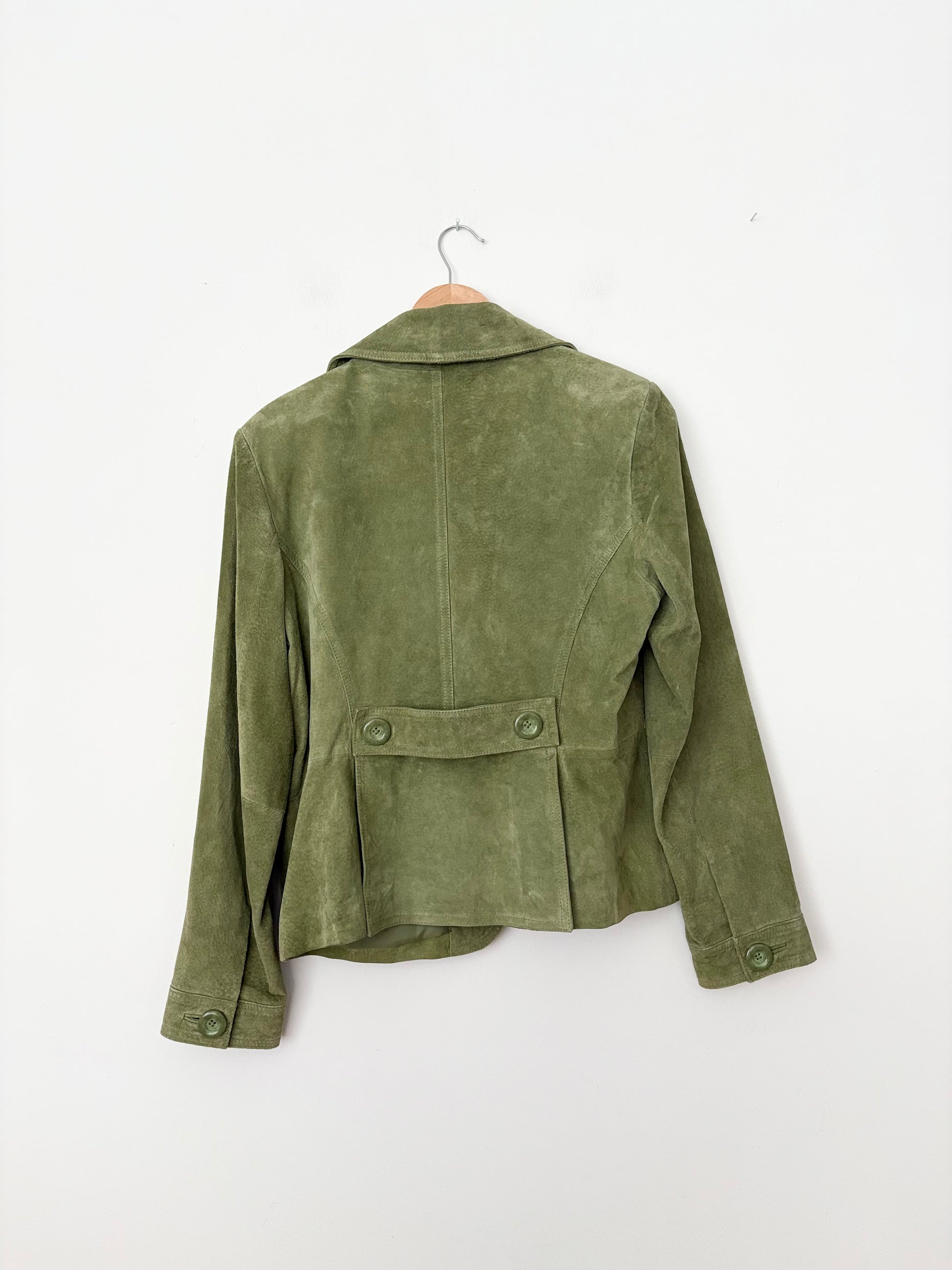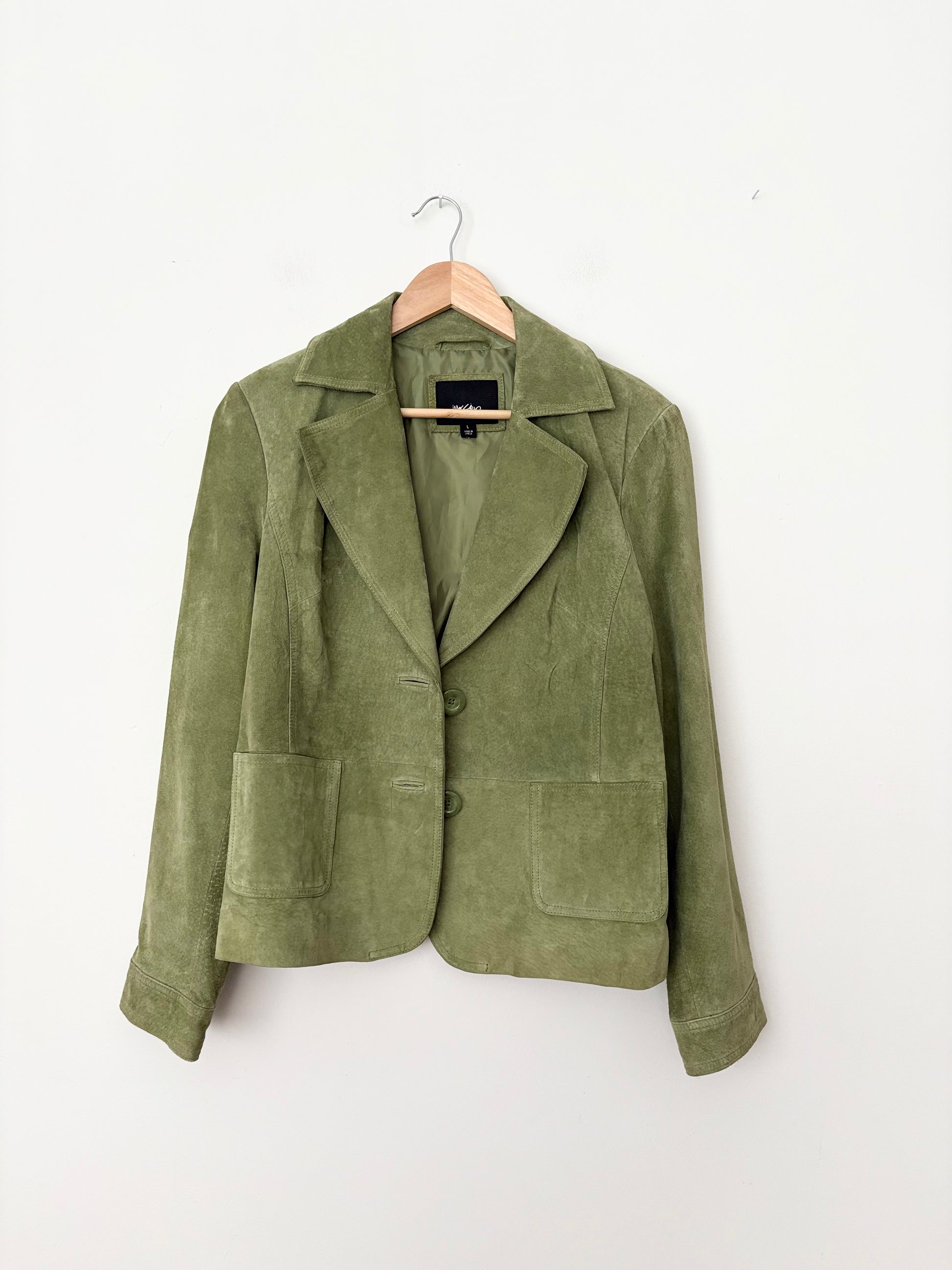 Blazer en daim véritable vert sauge à simple boutonnage