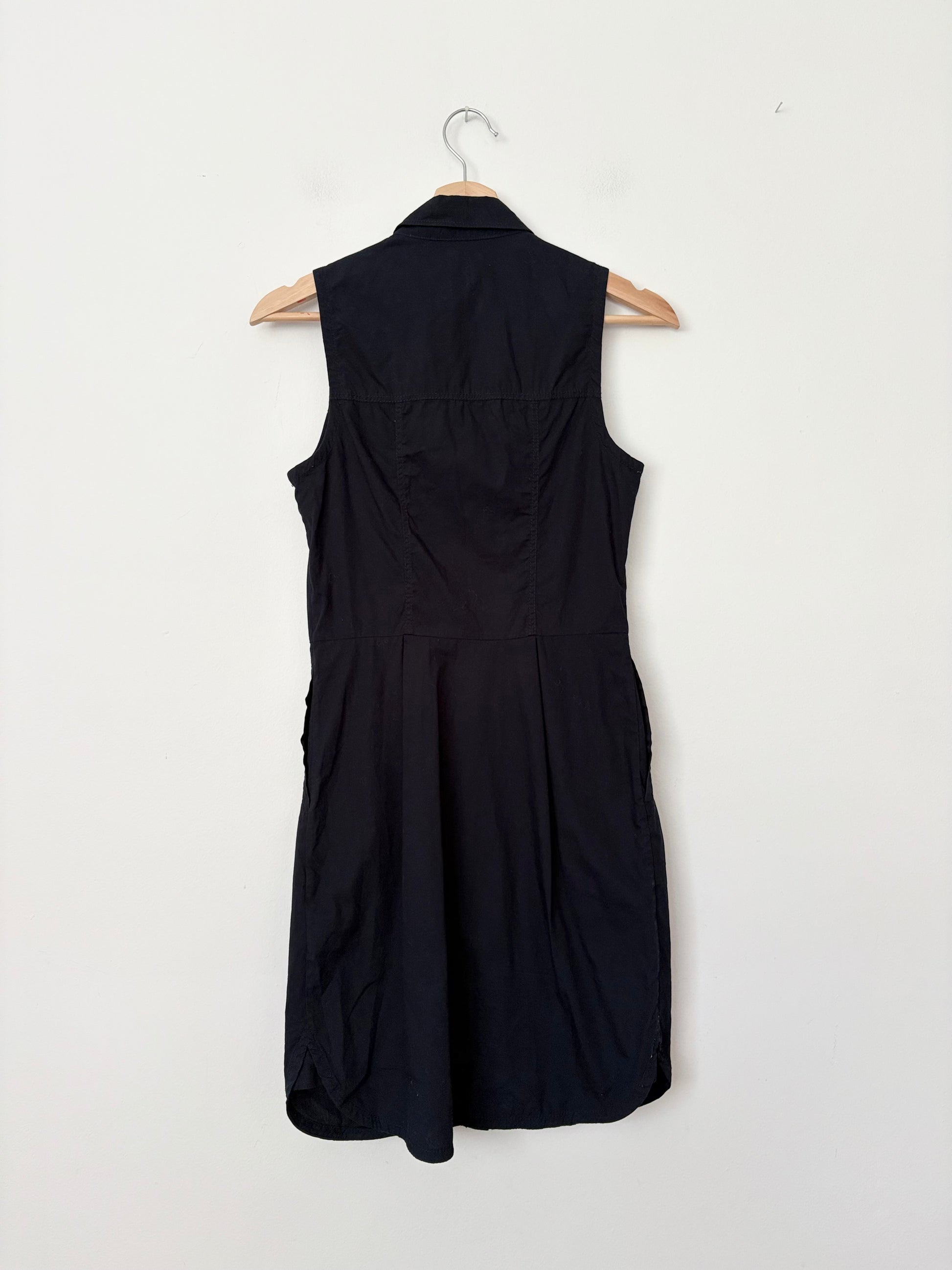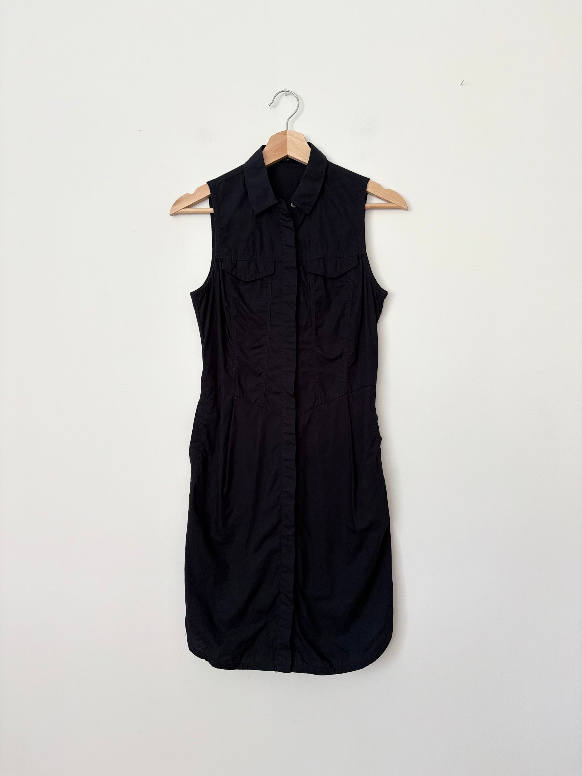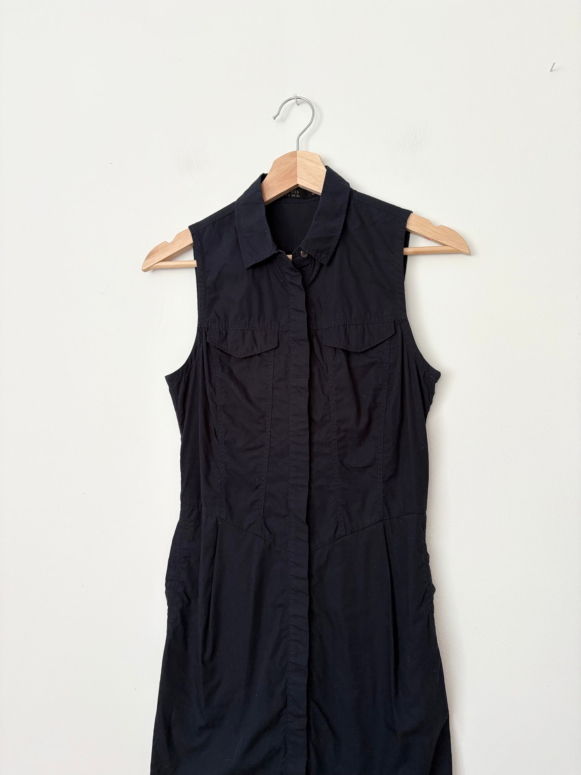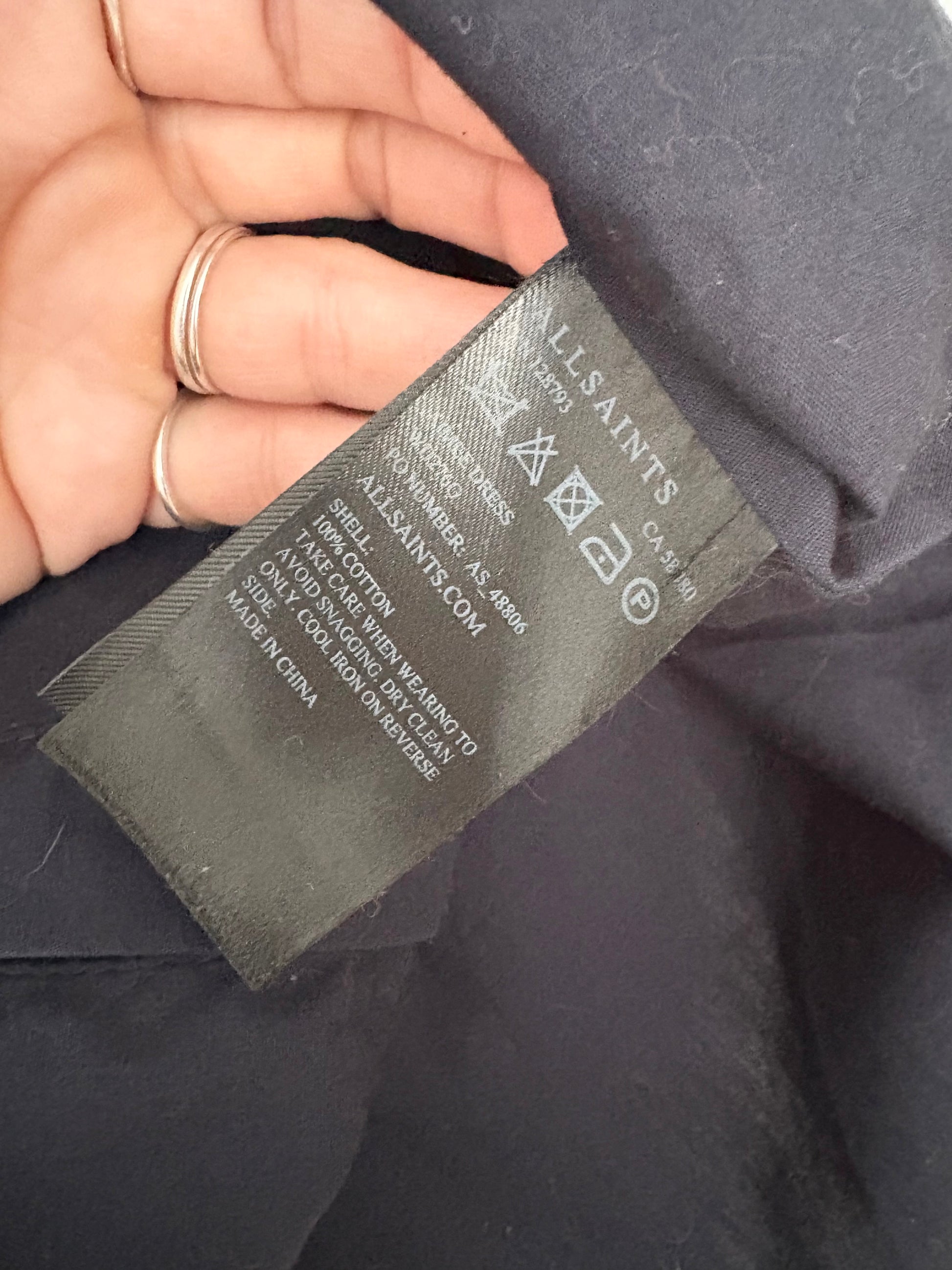Elevate your wardrobe with this stunning AllSaints Aimee navy dress, featuring a mock corset top that adds a touch of elegance to the overall look. The dress has a sleeveless design, with a knee-length hemline.