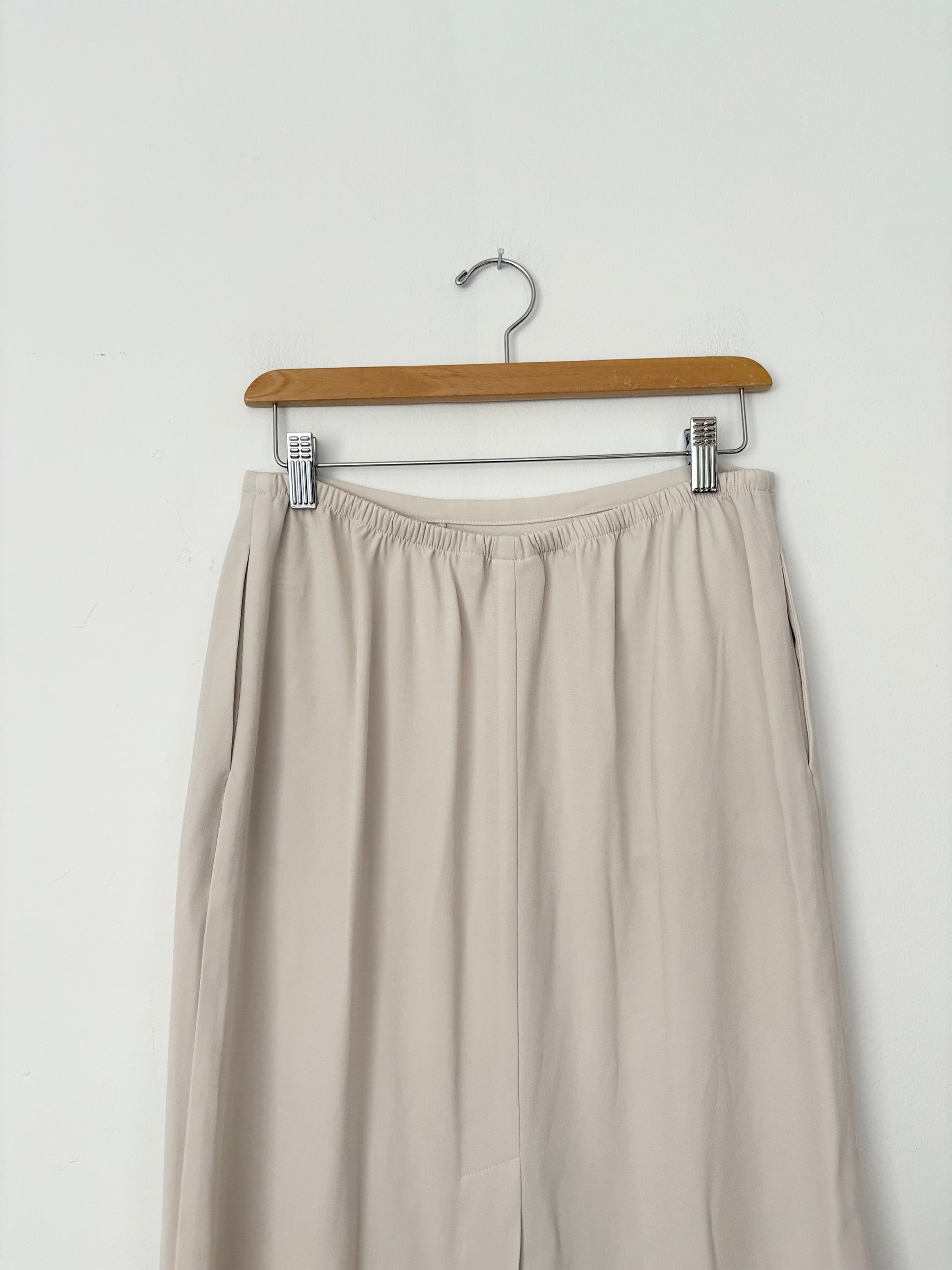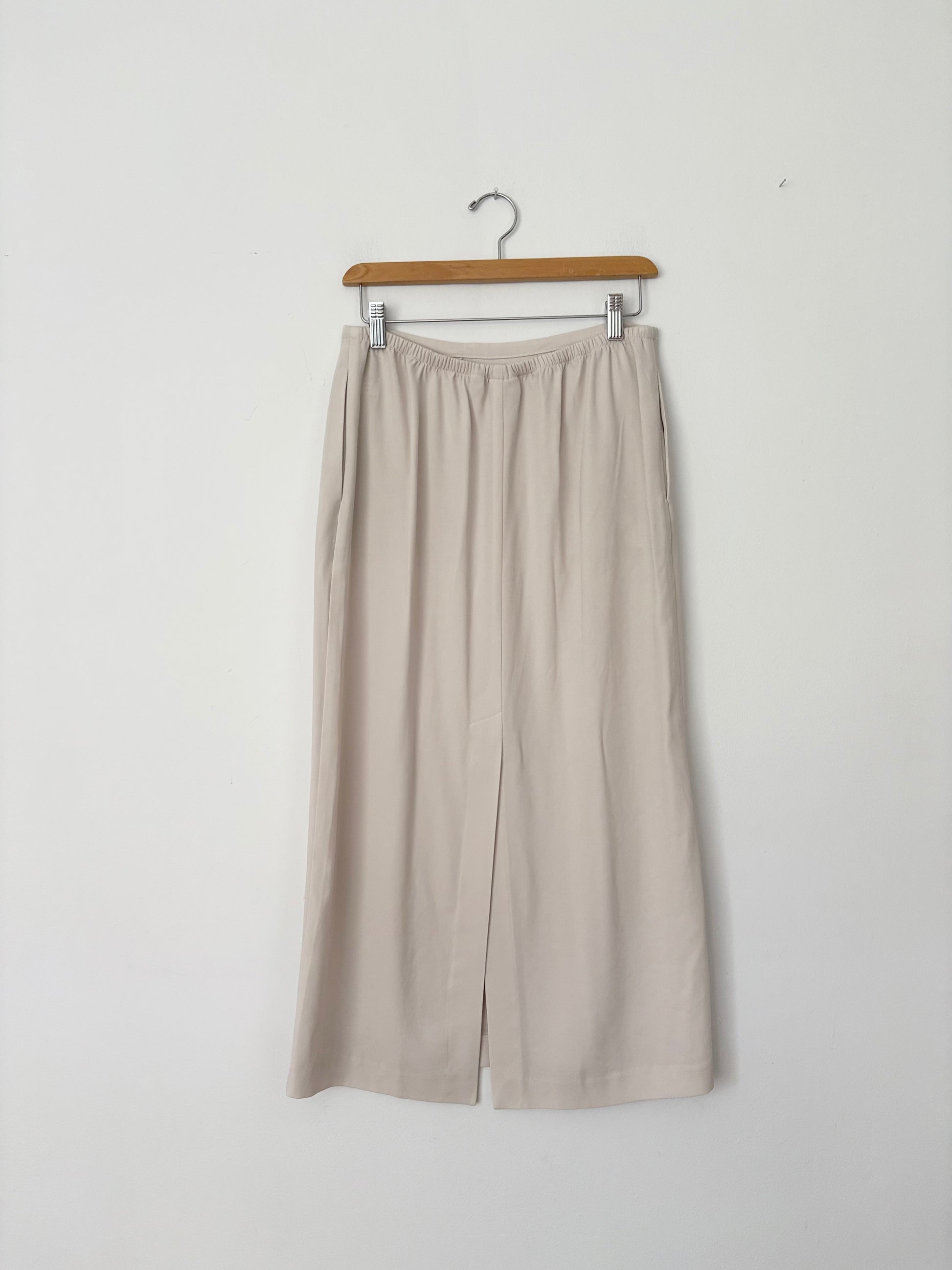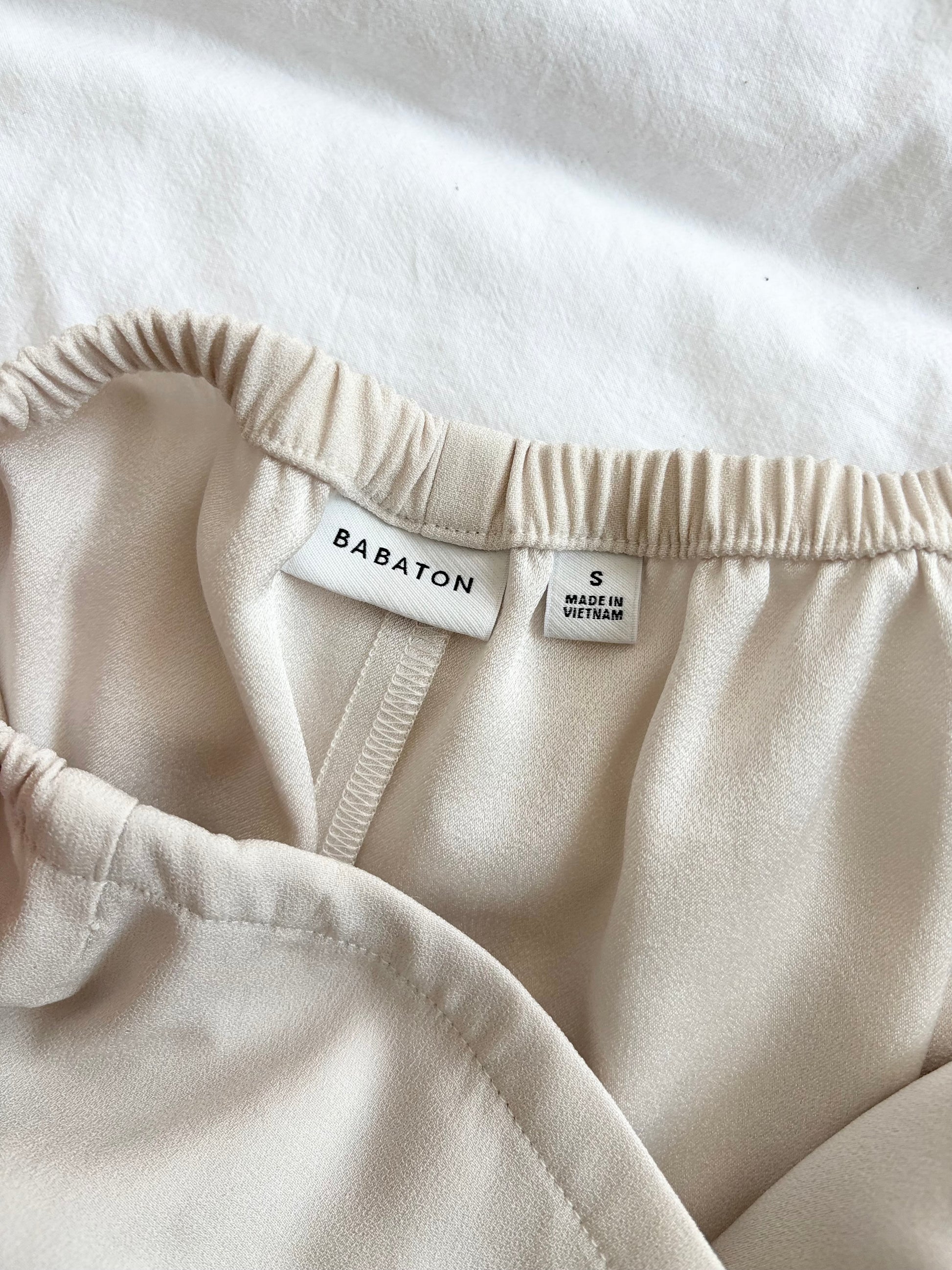 This is a mid-rise skirt with inseam pockets and an elastic waistband. It’s cut from Mirror Crepe™ — Babaton’s essential crepe fabric with a soft drape and silky satin back.