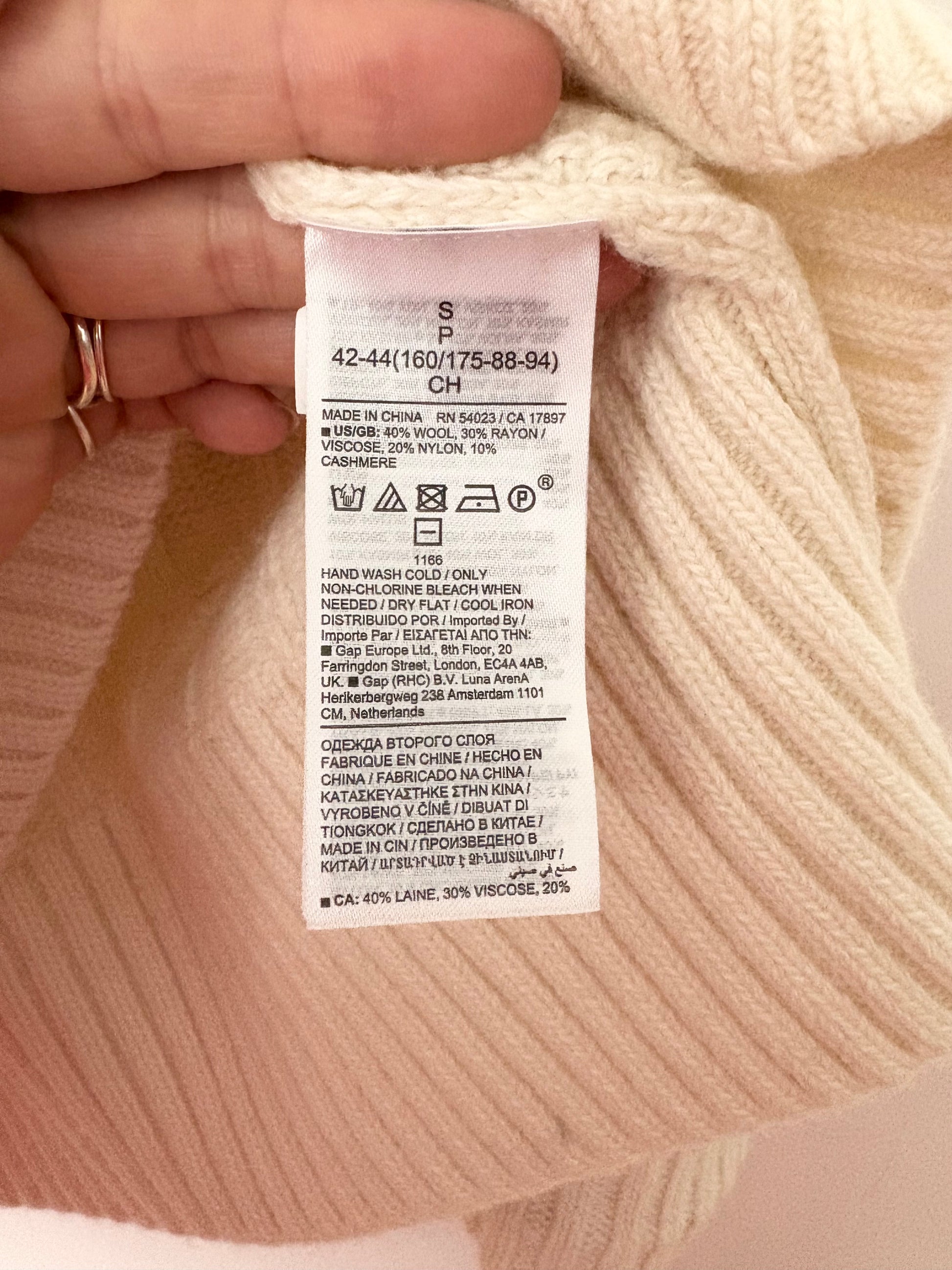40% wool, 30% rayon, 20% nylon, 10% cashmere