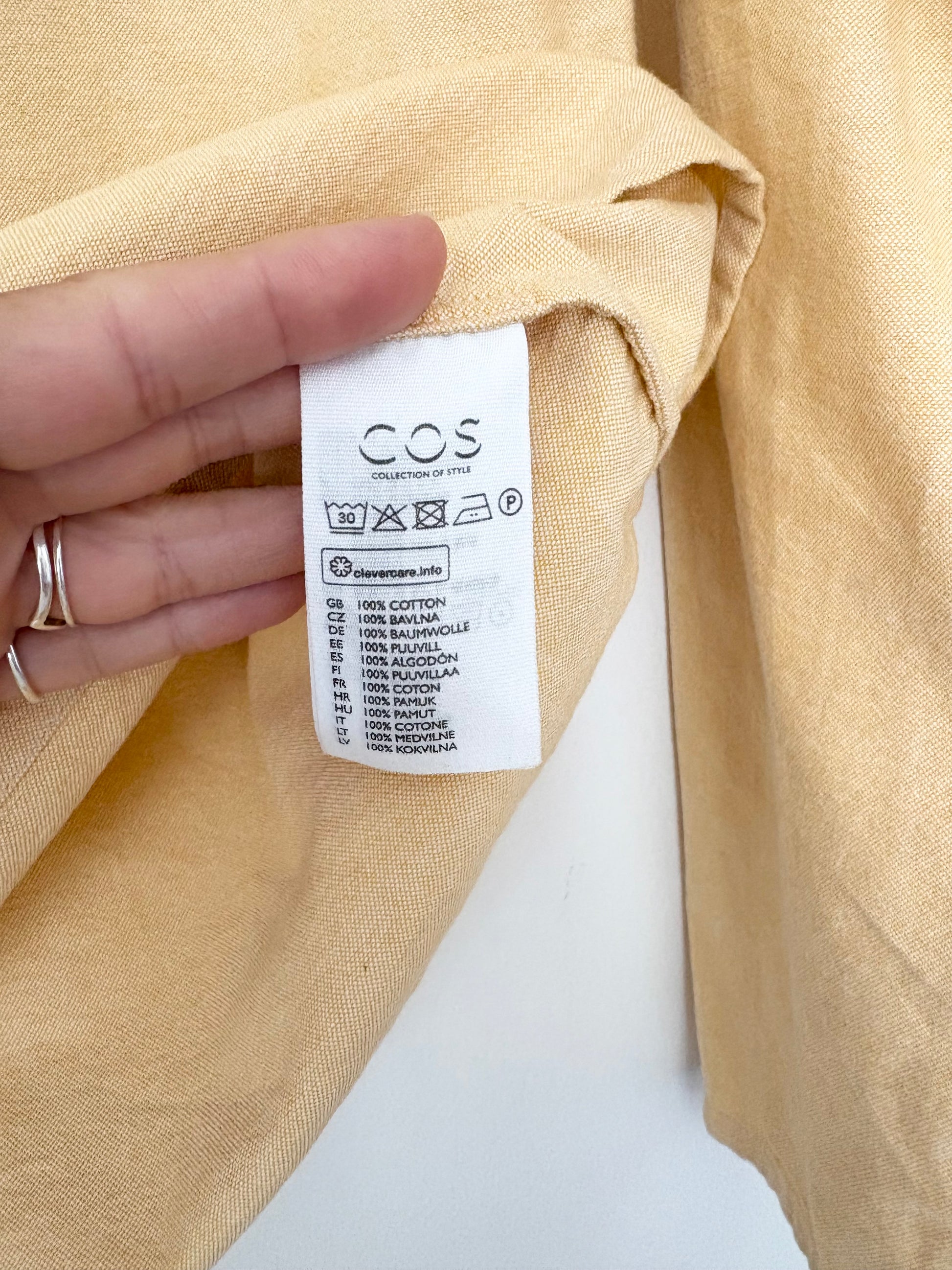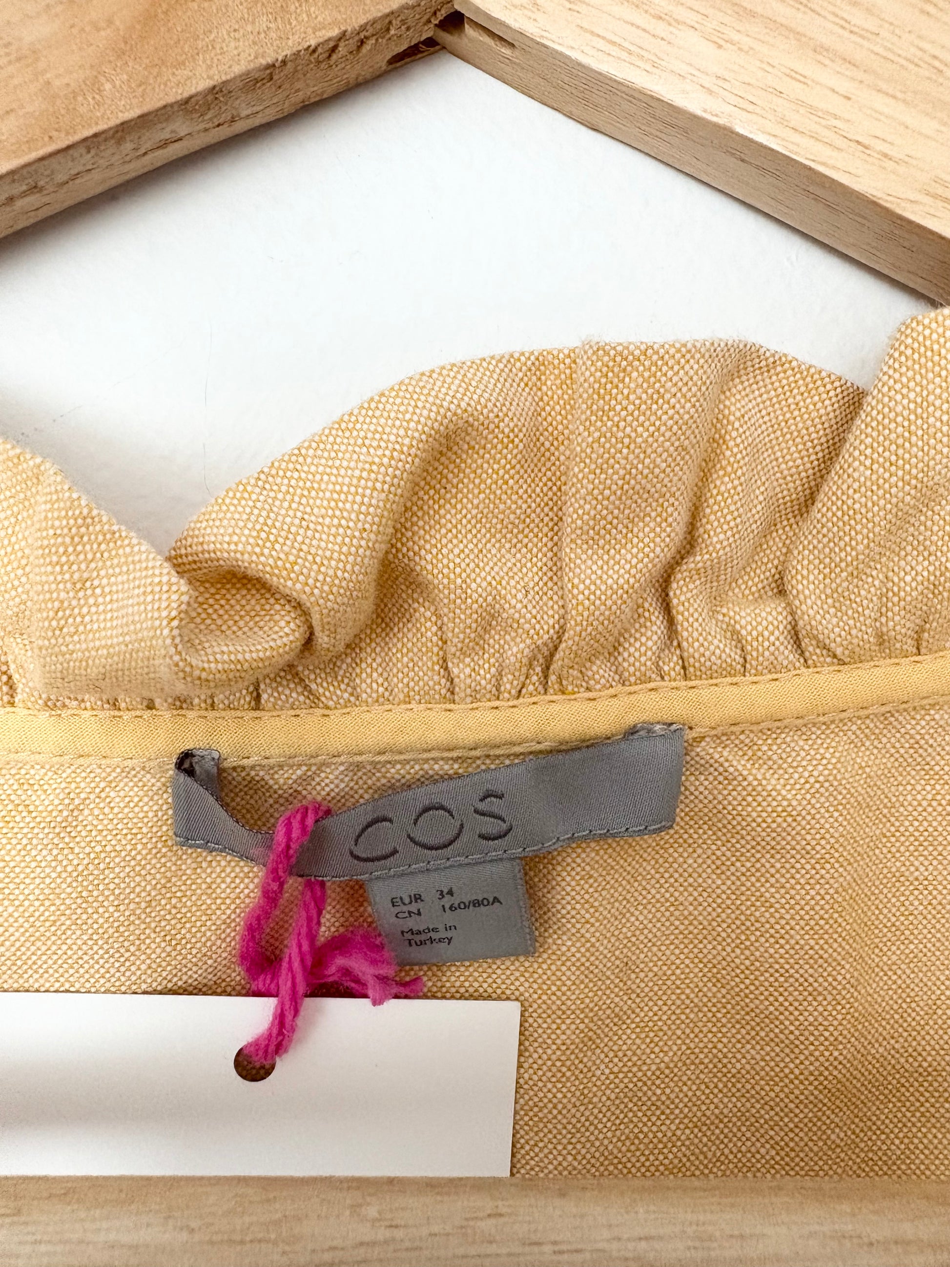 Designed with a frill detailed neckline, this top is made from soft cotton with a subtle, woven texture. A boxy fit, it has long sleeves, a wide neckline & neat stitched hemline.