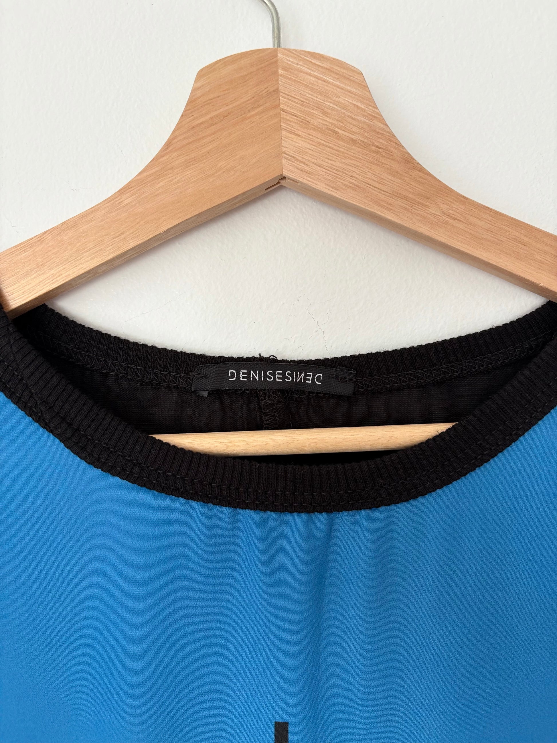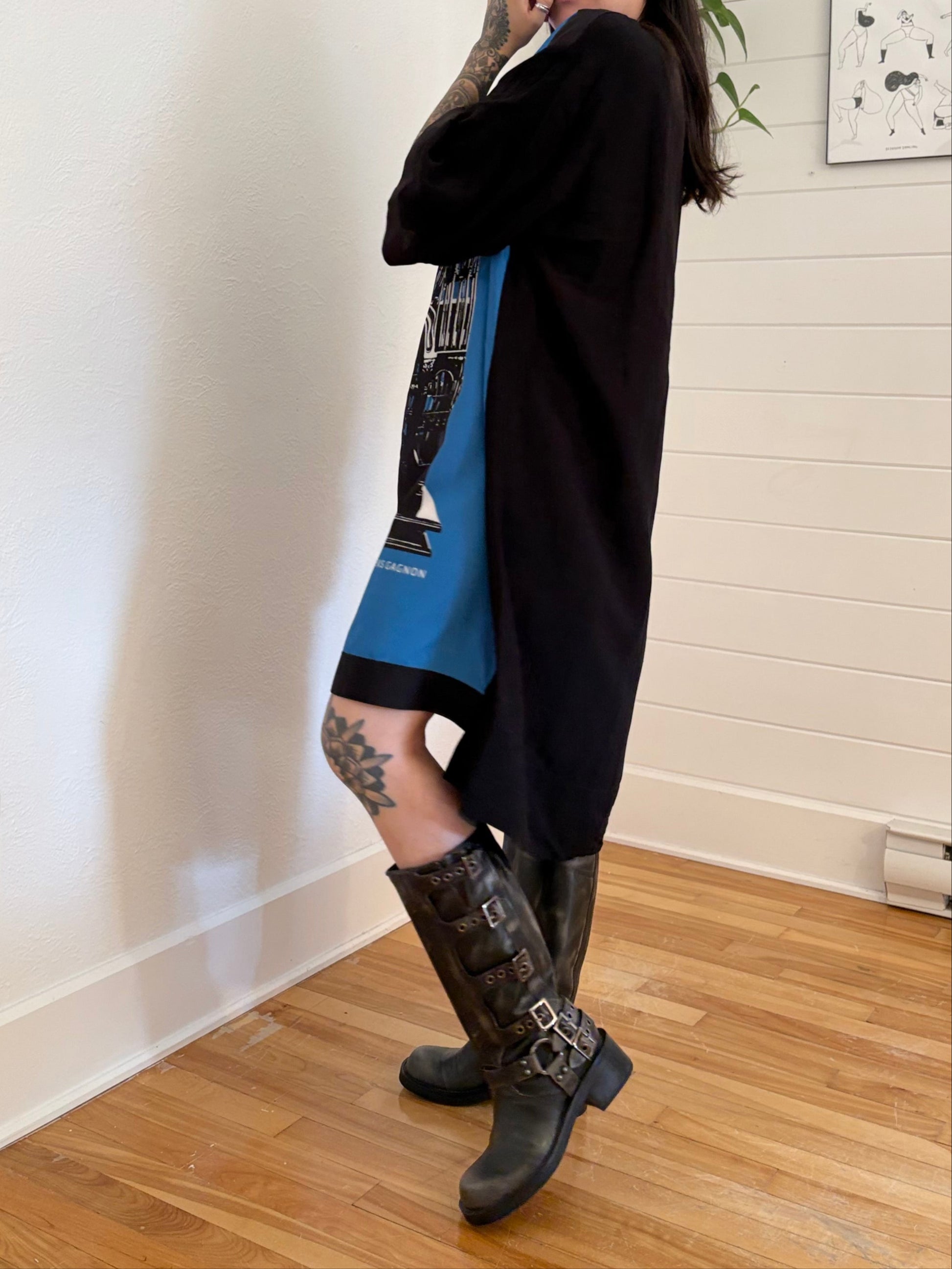 Unisex printed jersey Tee shirt dress with black grosgrain at the bottom