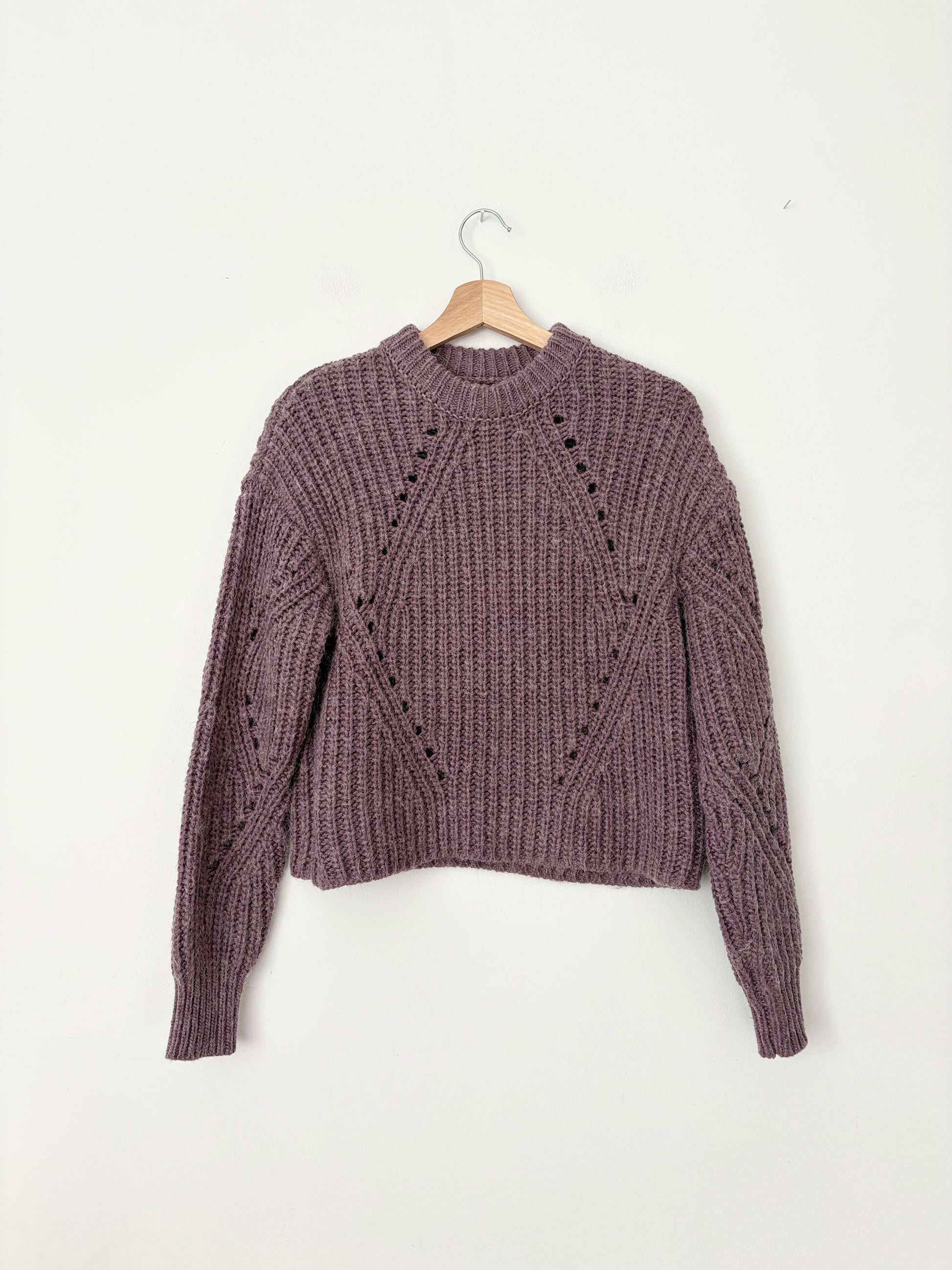 Purple wool blend cable knit boxy sweater