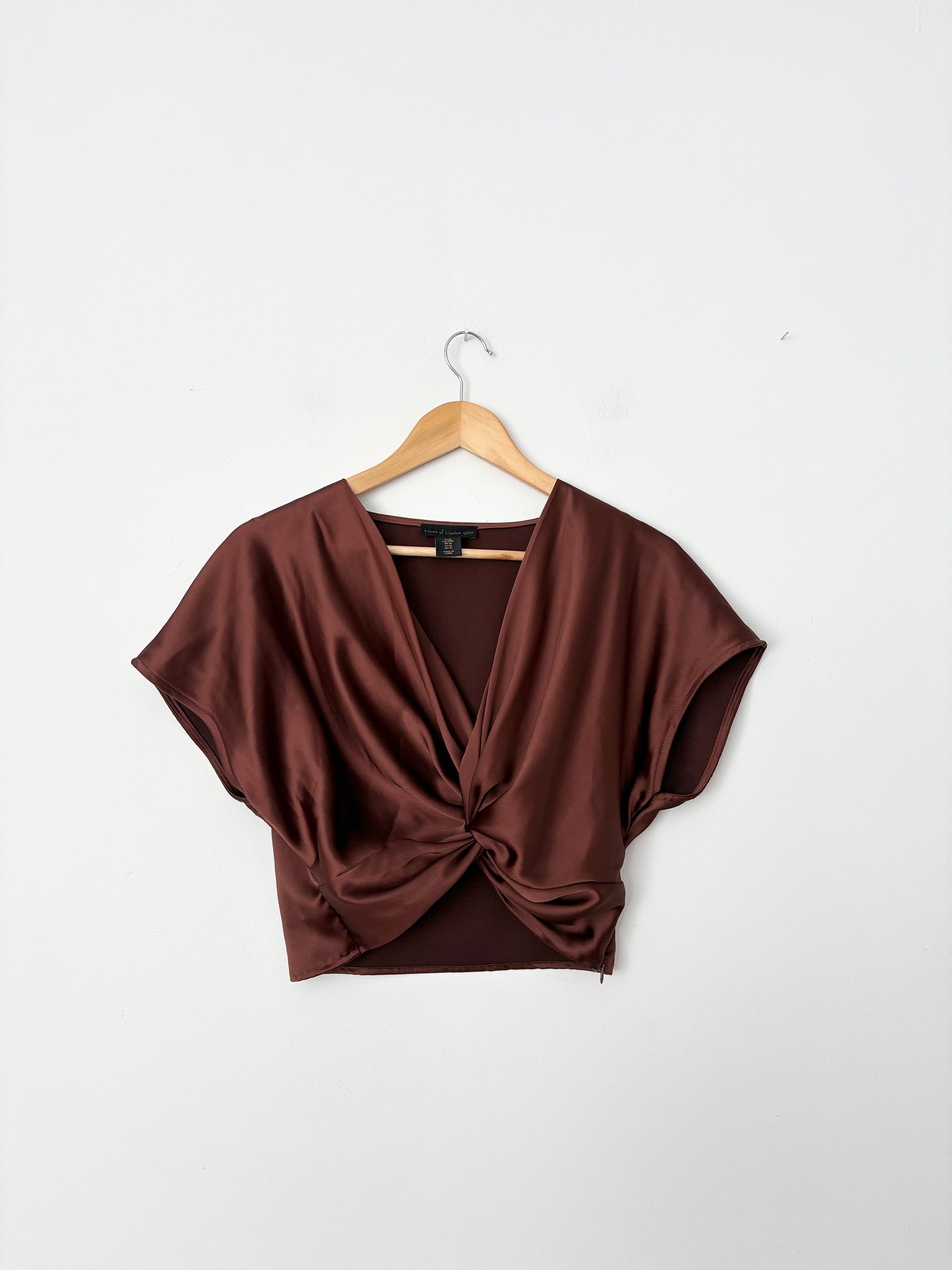 House of Harlow 1960 brown satin knotted top Medium