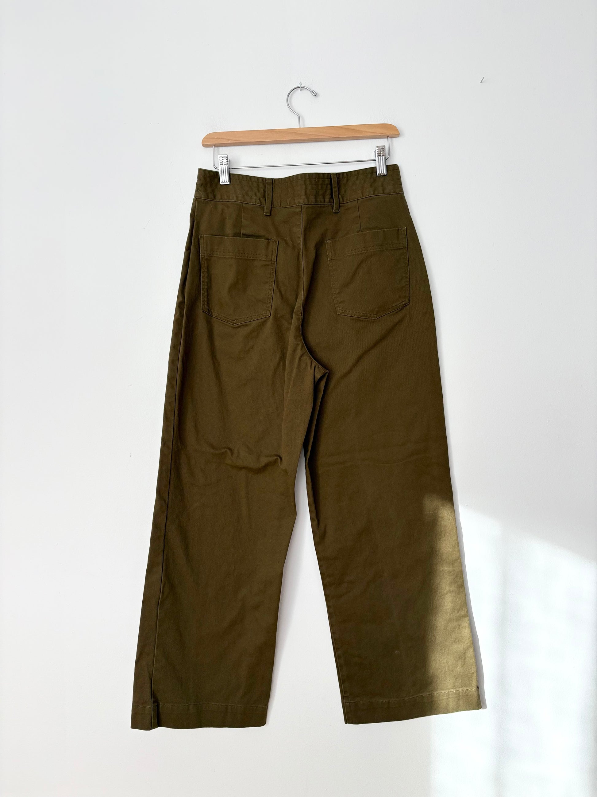 Khaki high rise wide leg crop chinos