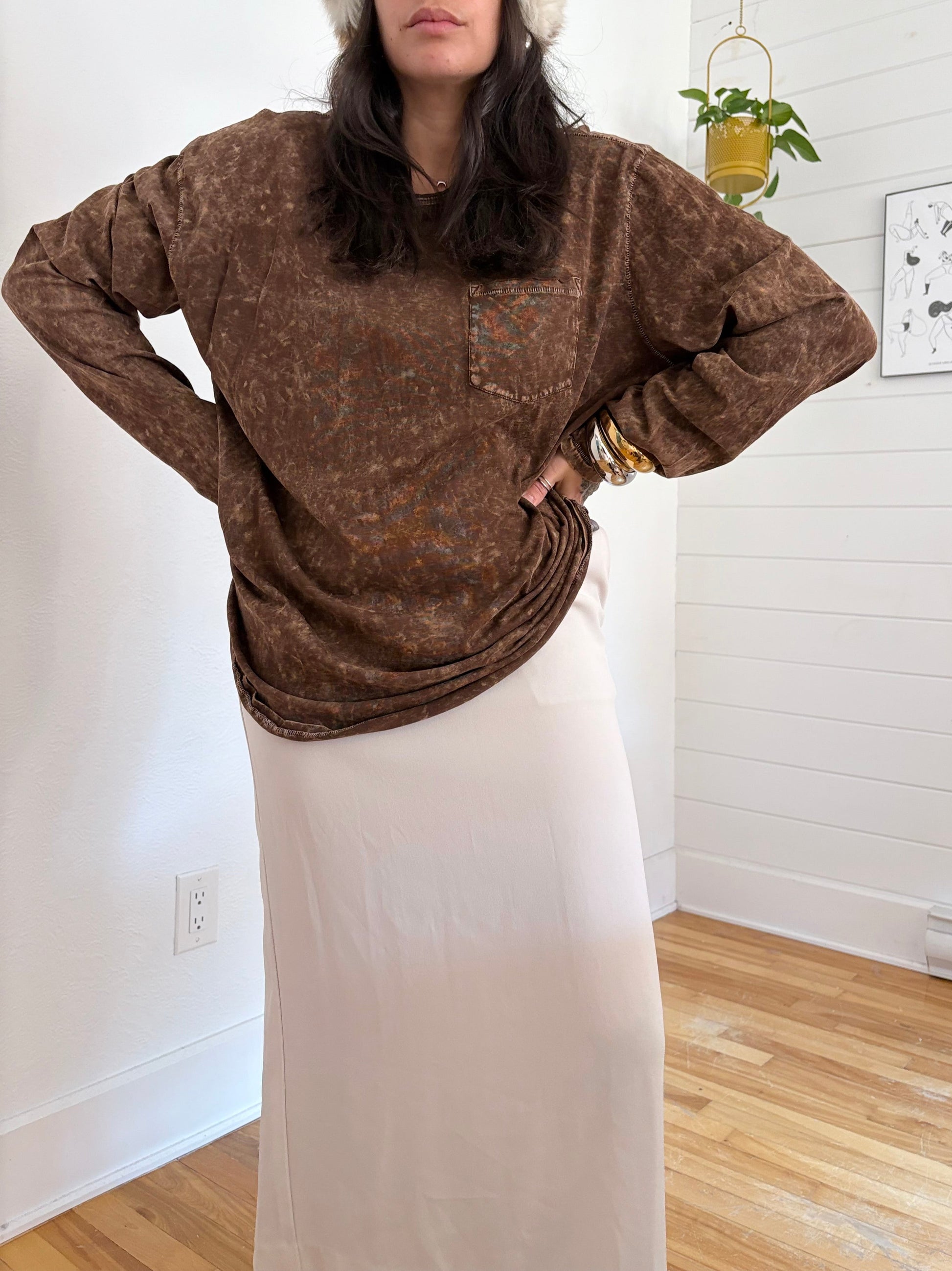 Long sleeve tie dye shirt with exposed seams and front pocket