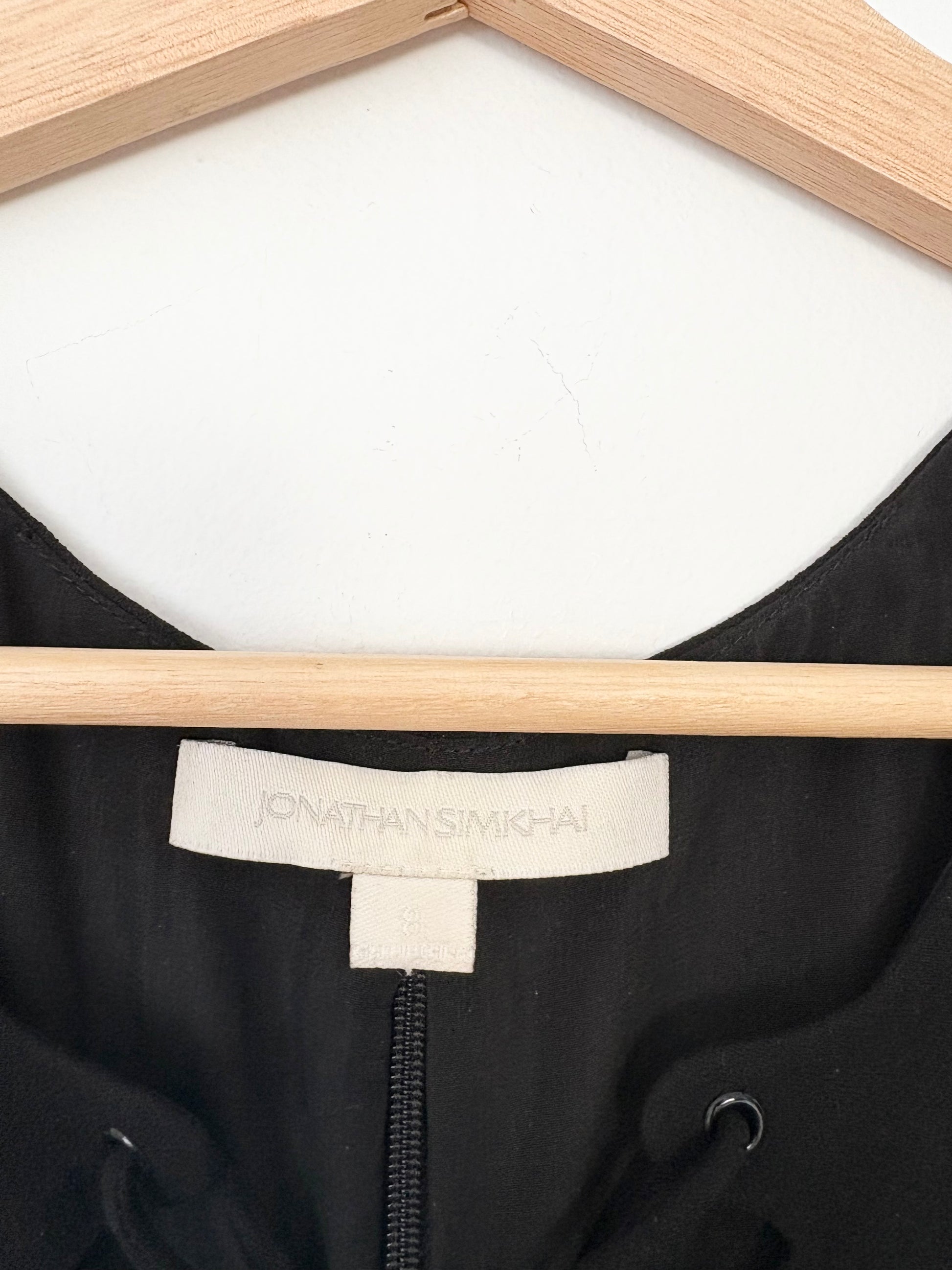 Black double strap sleeveless top with lace up front & flounce hem. Concealed zip closure at back
