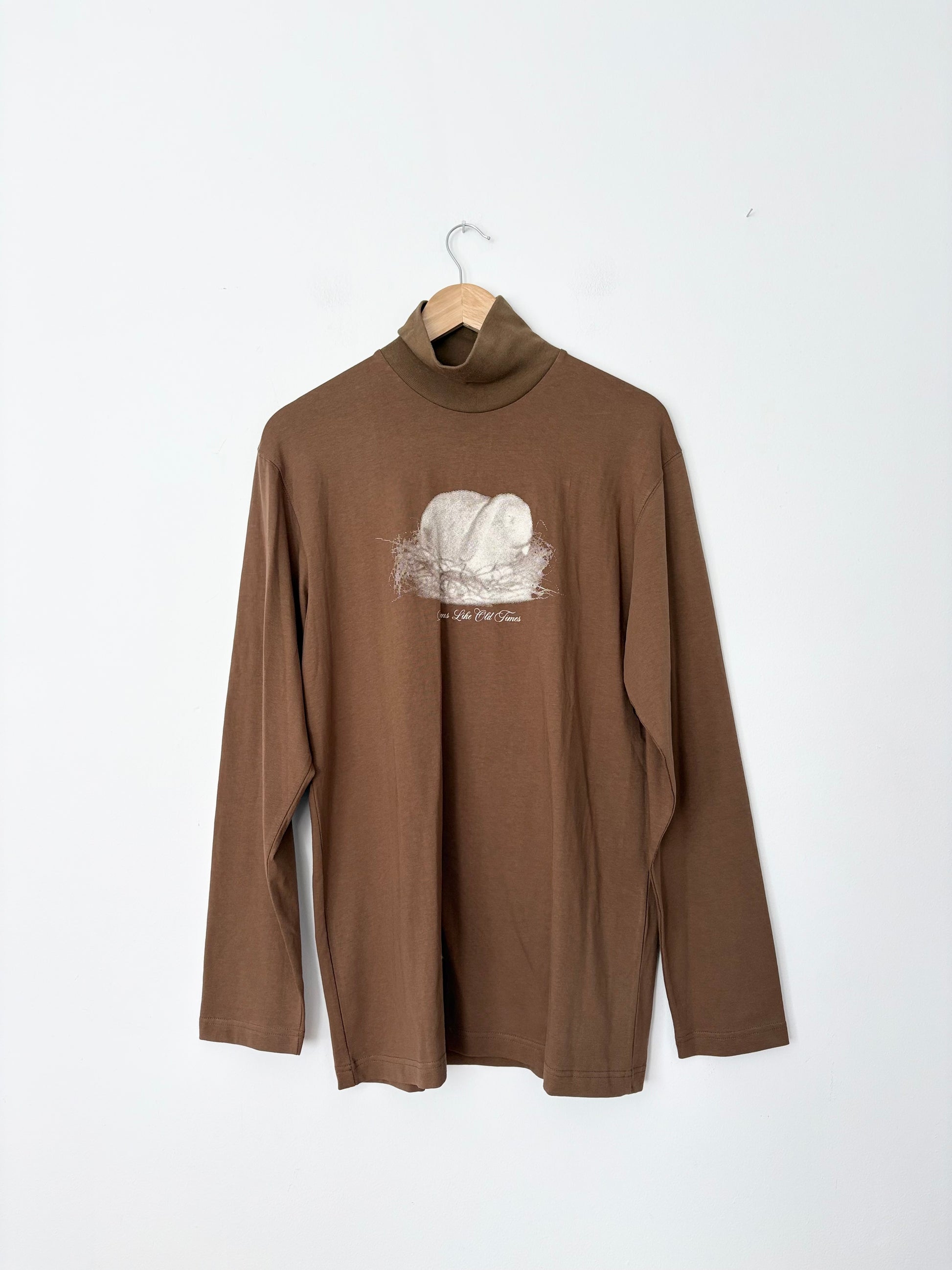 Cotton jersey turtleneck featuring graphic printed at chest and logo embroidered at back