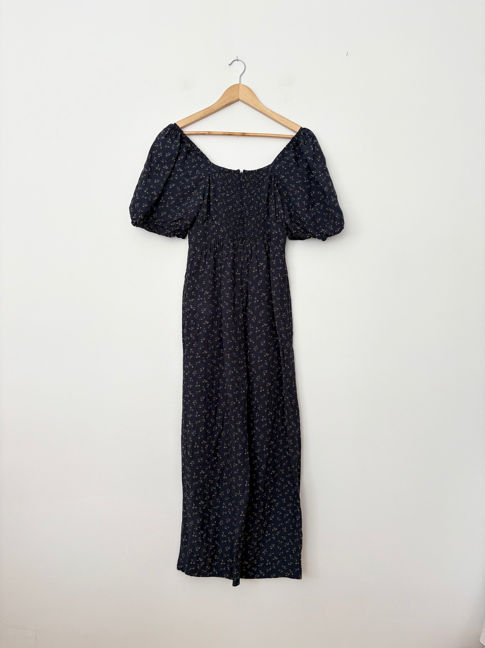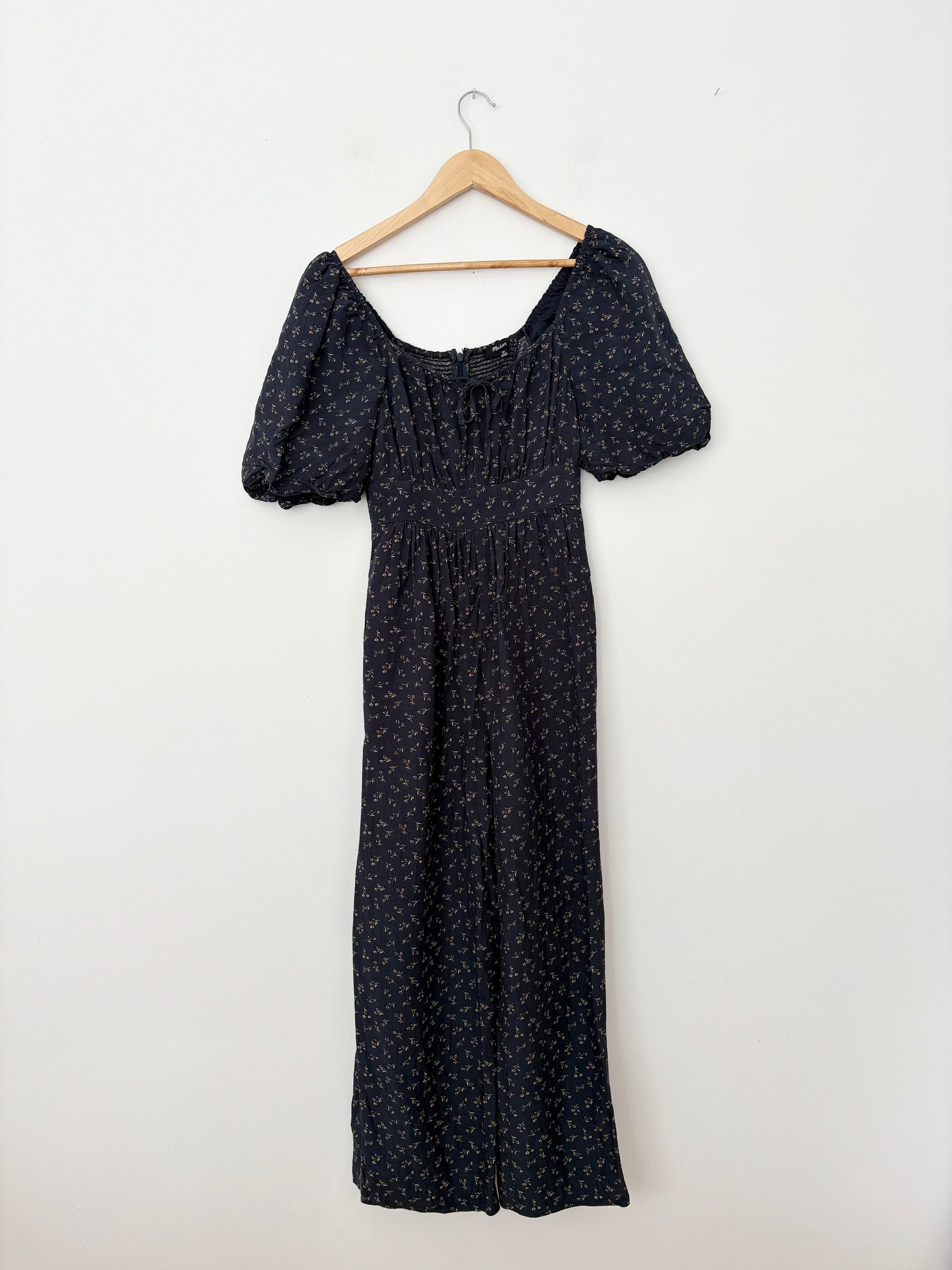 Madewell bubble sleeve floral linen blend jumpsuit XXS