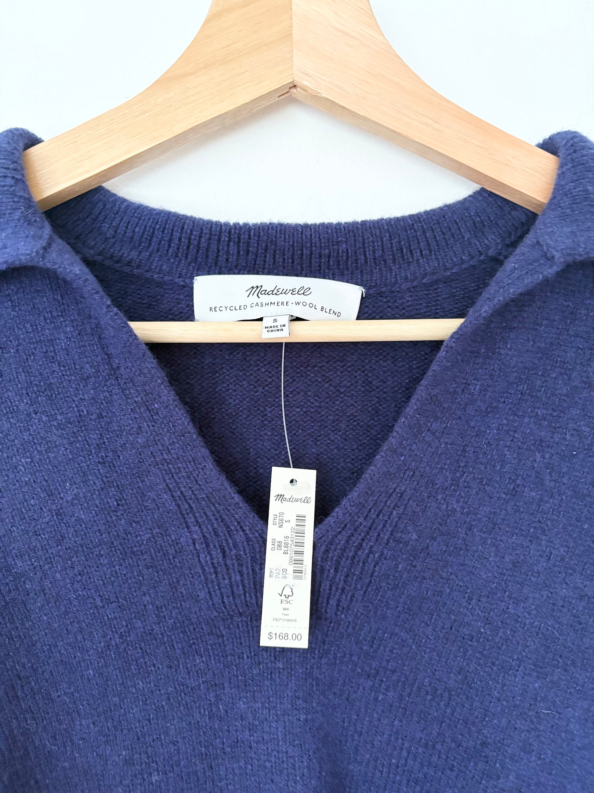 This relaxed polo sweater channels vintage vibes with its ribbed johnny collar and drop shoulders. Crafted from a cozy blend of cashmere and wool, it's the perfect throw-on-and-go piece.
