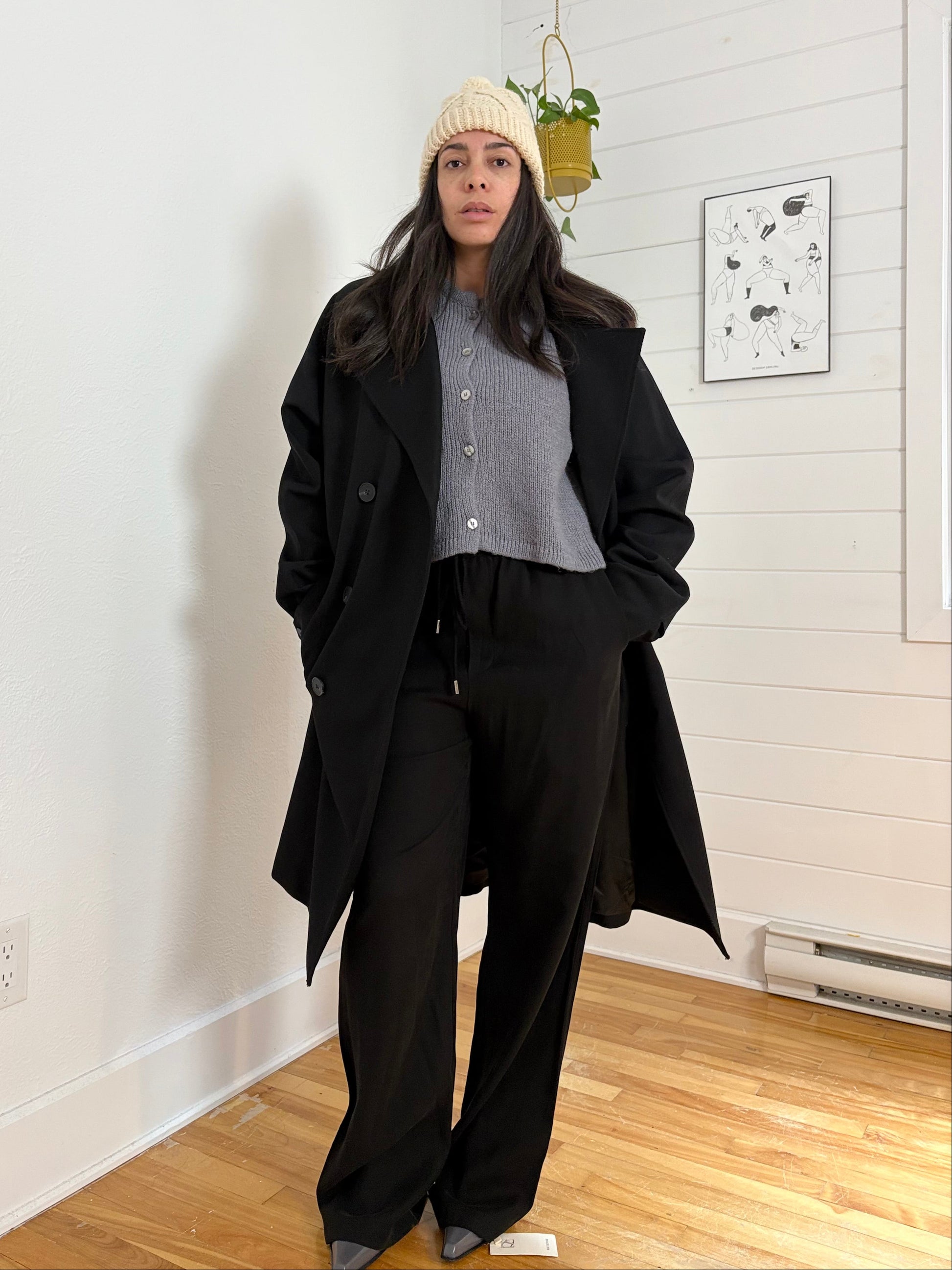Merino wool cable knit pompom hat Small