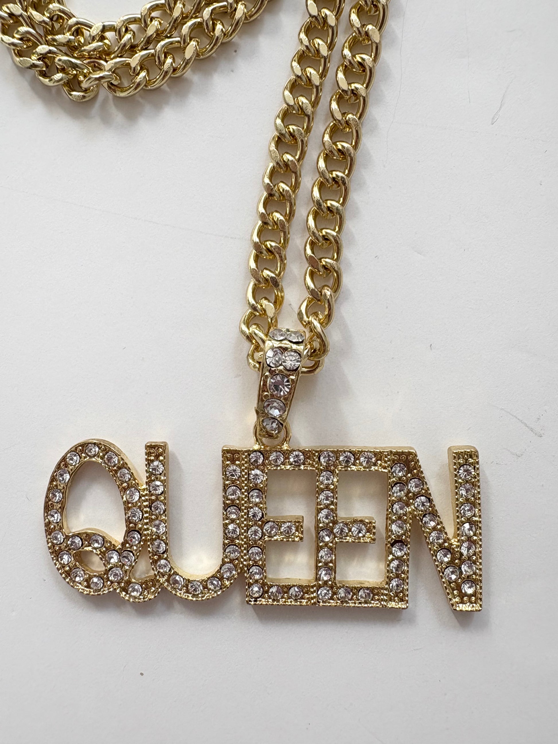 Gold plated QUEEN necklace with Cubic zirconia stones