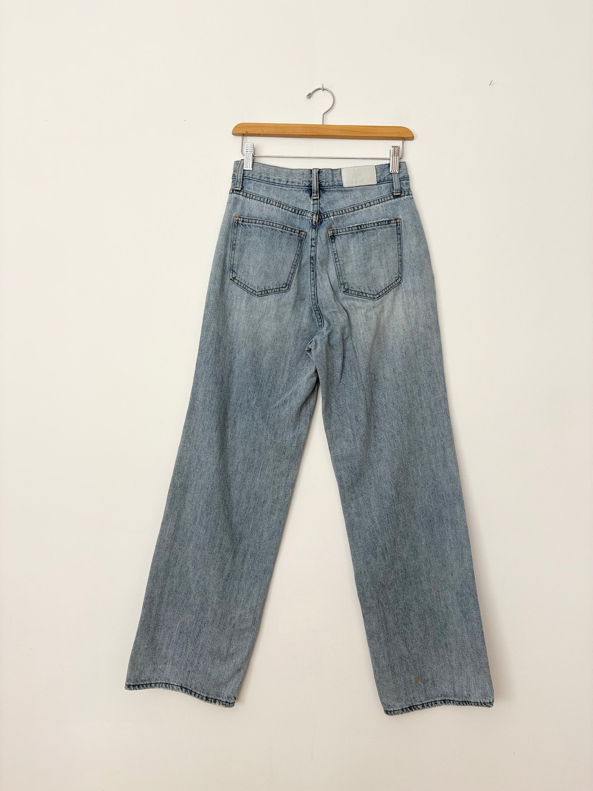 The Bobbie is a mid-rise wide leg jean with a unique crossover button front. This is a relaxed fit that subtly hangs on your hips. This playful style comes in a timeless light wash.