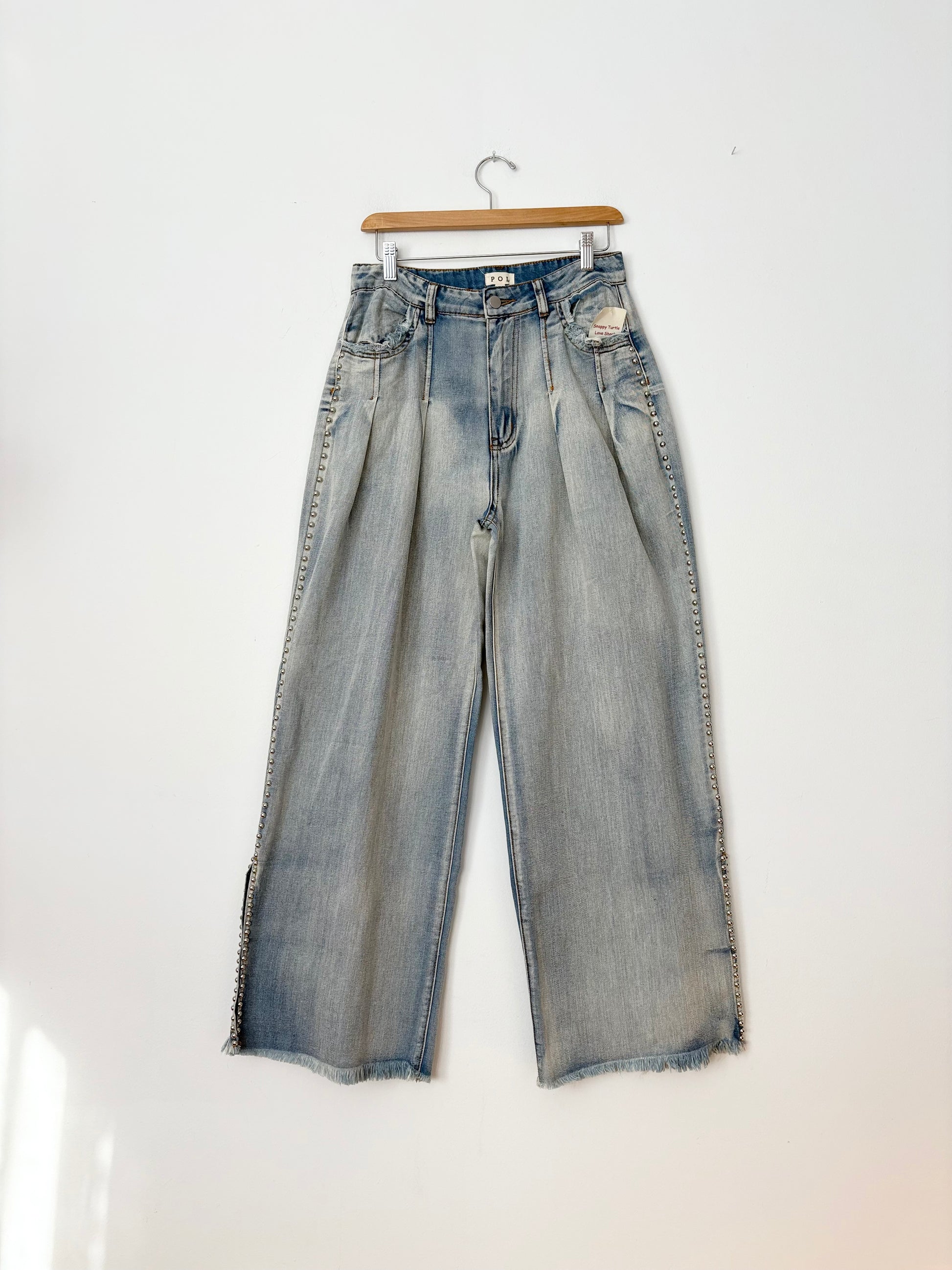 POL wide leg studded pleated jeans Medium