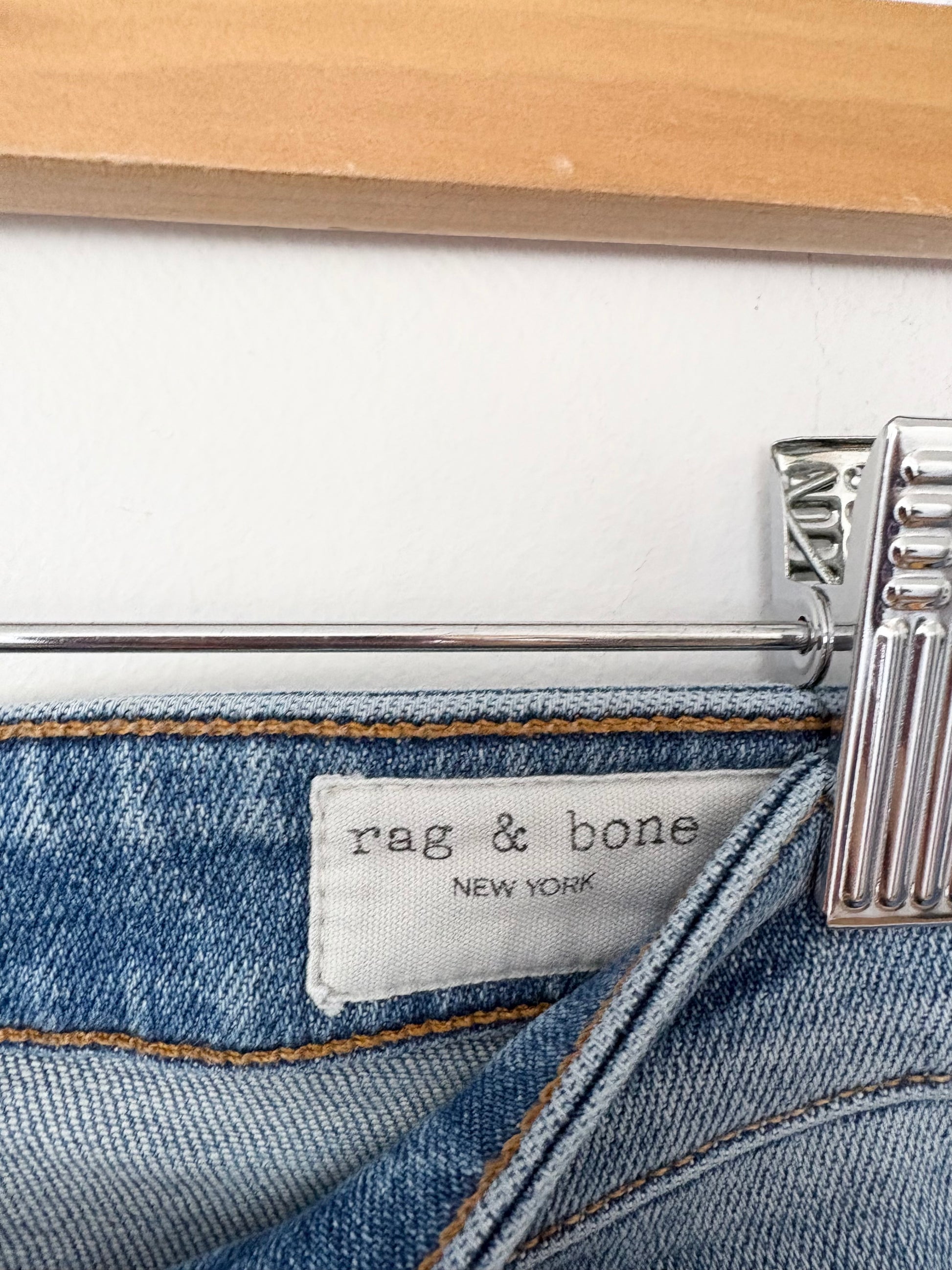 Rag & Bone jeans that feature a high-rise with a slim fit through the hip and thigh and a flare leg. Seamed back pockets and a clean hem finish this ankle-length style.