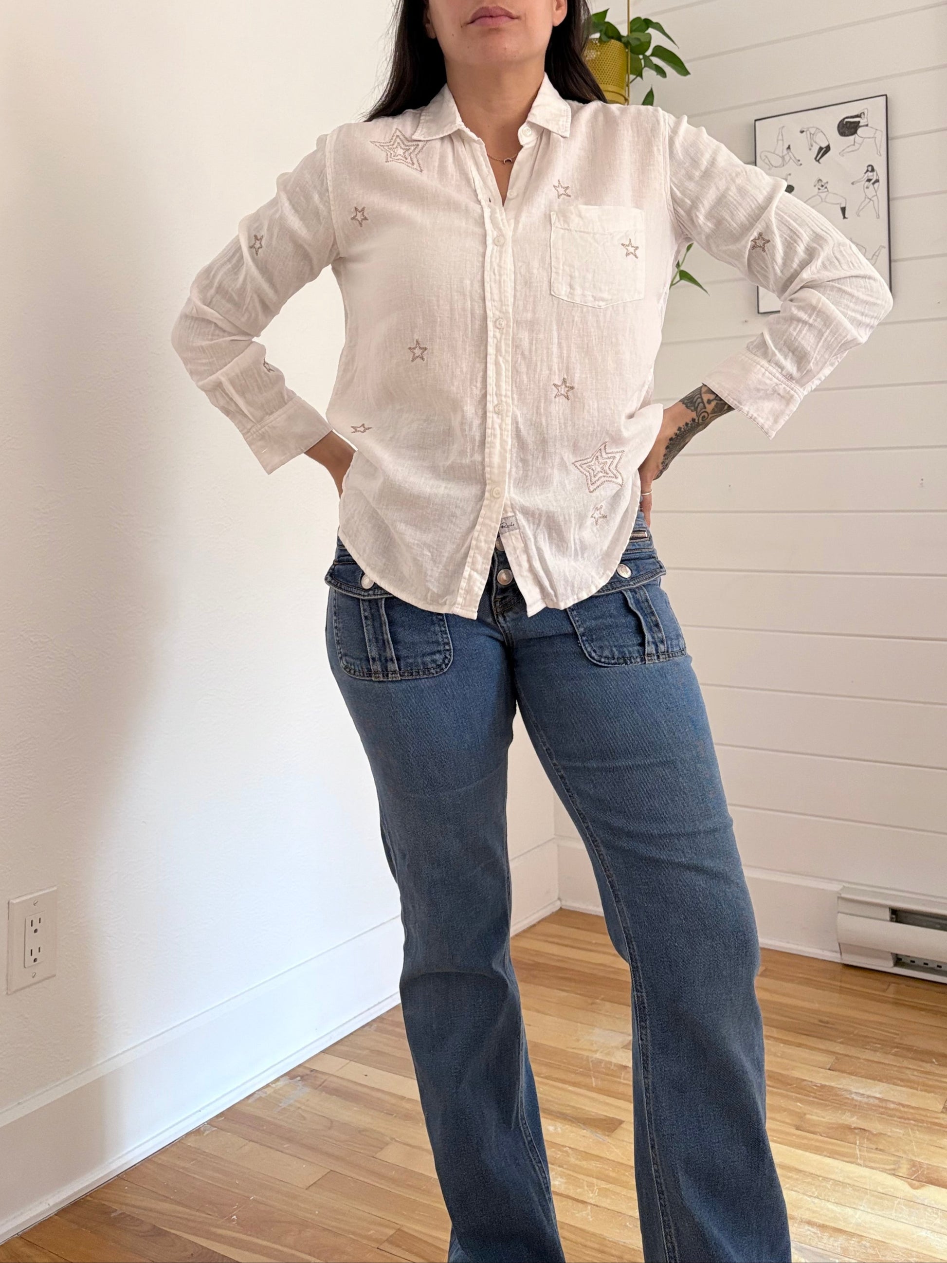 Rails Charlie metallic star linen blend button up XS/S