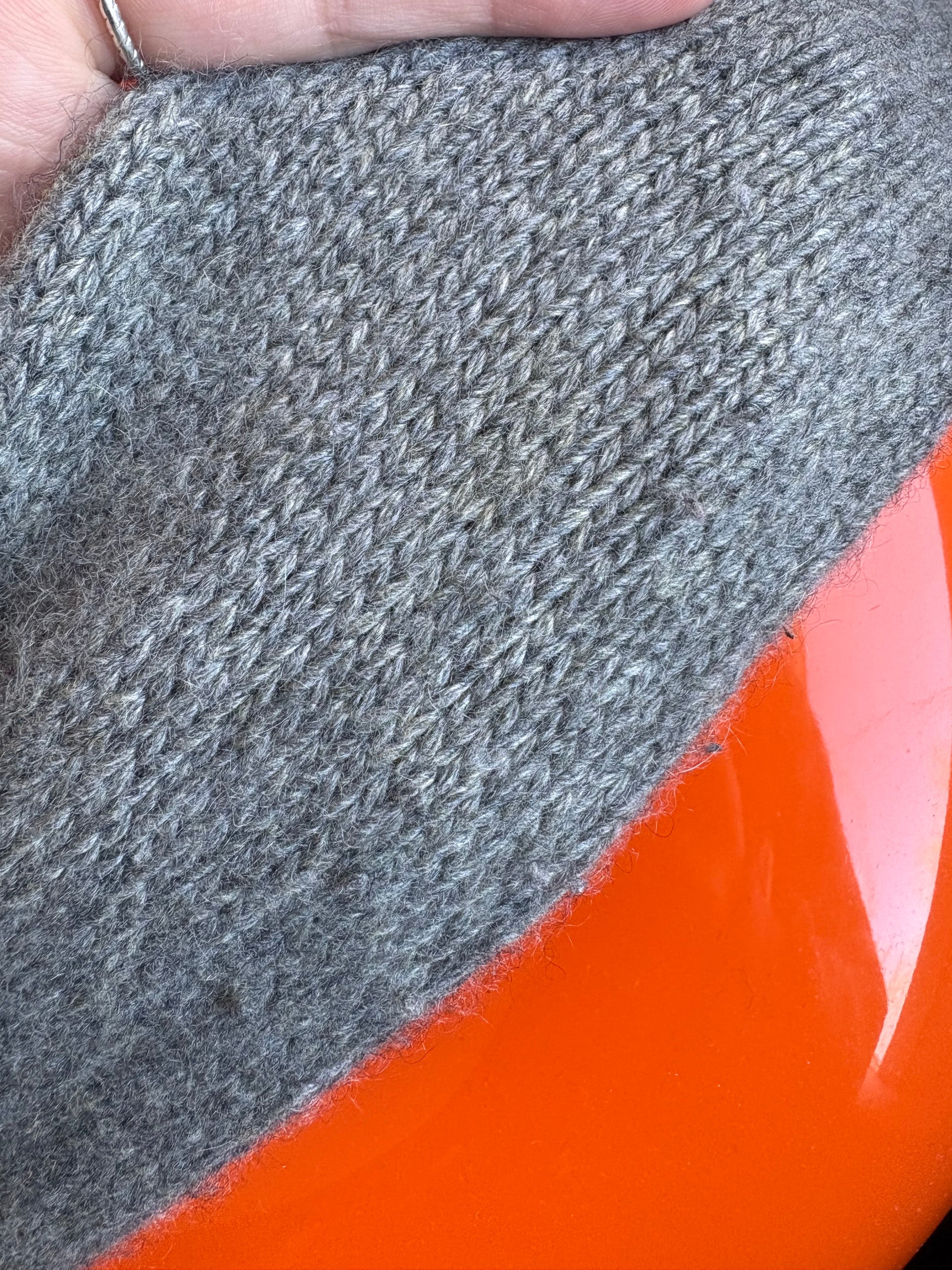 Good condition- light piling, one light yellow spot on a sleeve, not very noticeable