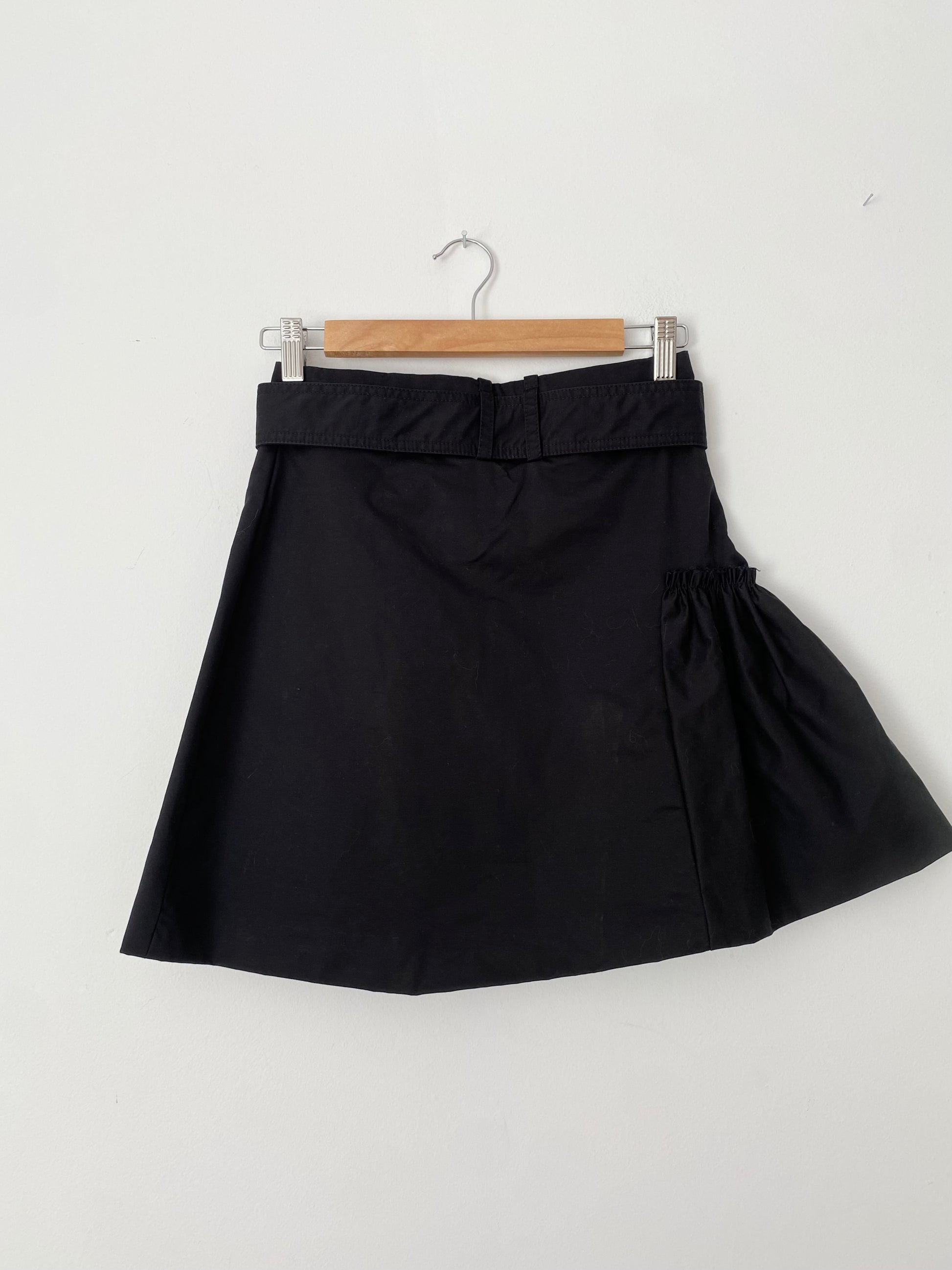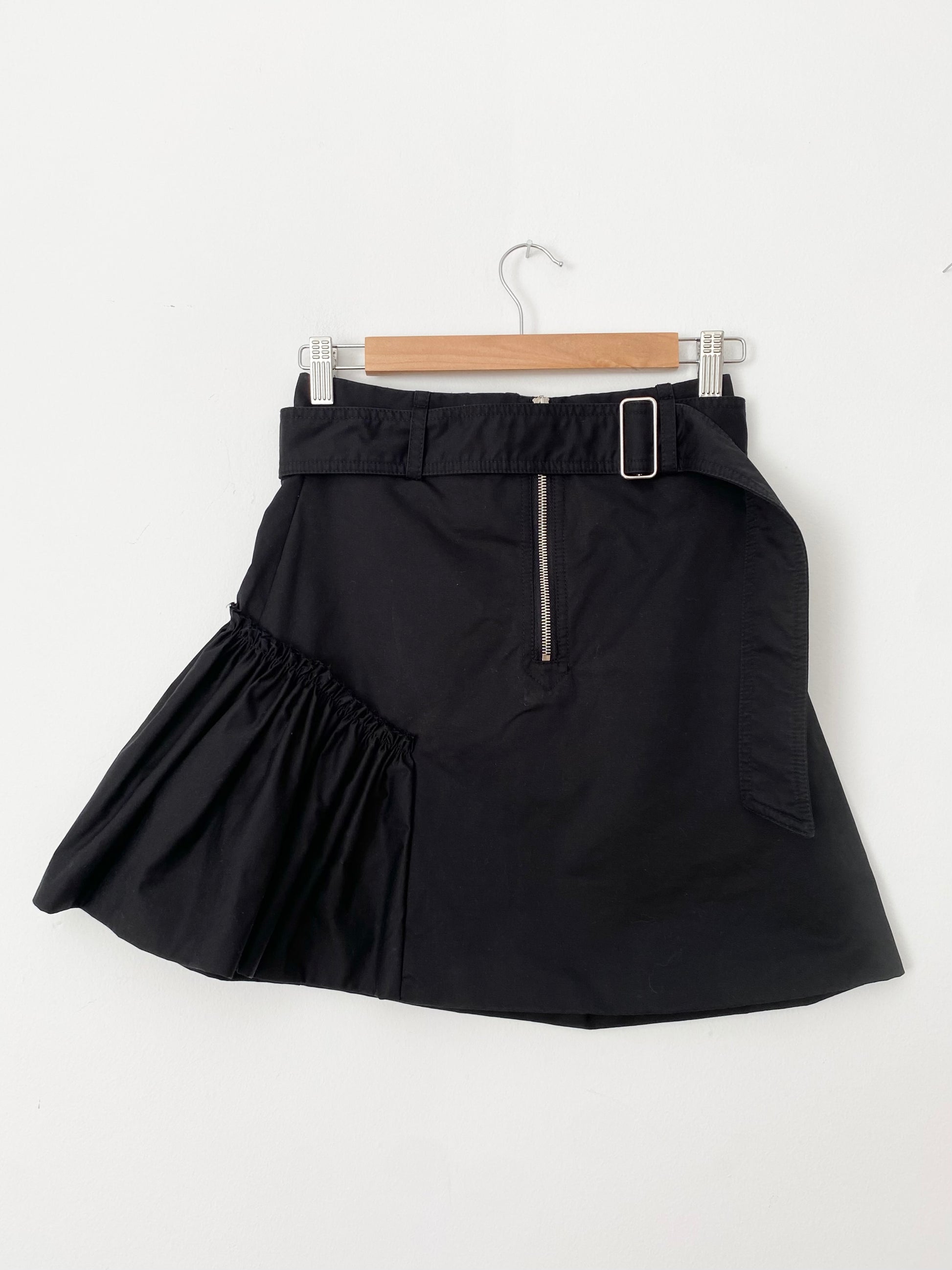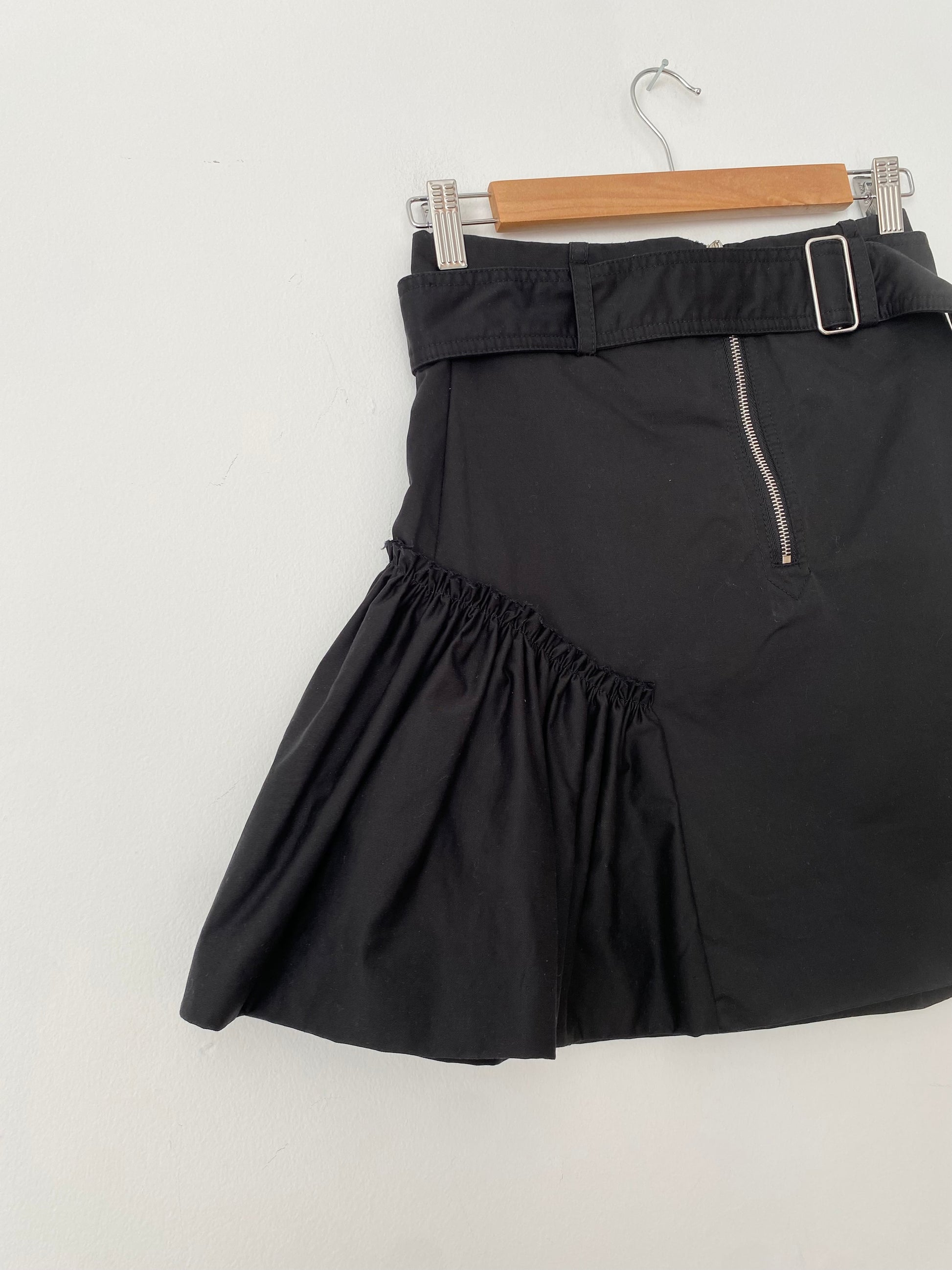 Black mini skirt with belt & asymmetrical ruffle