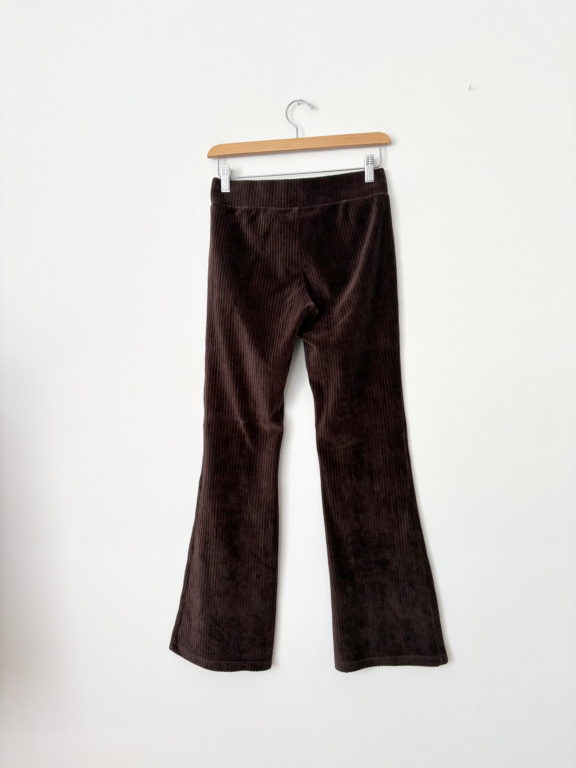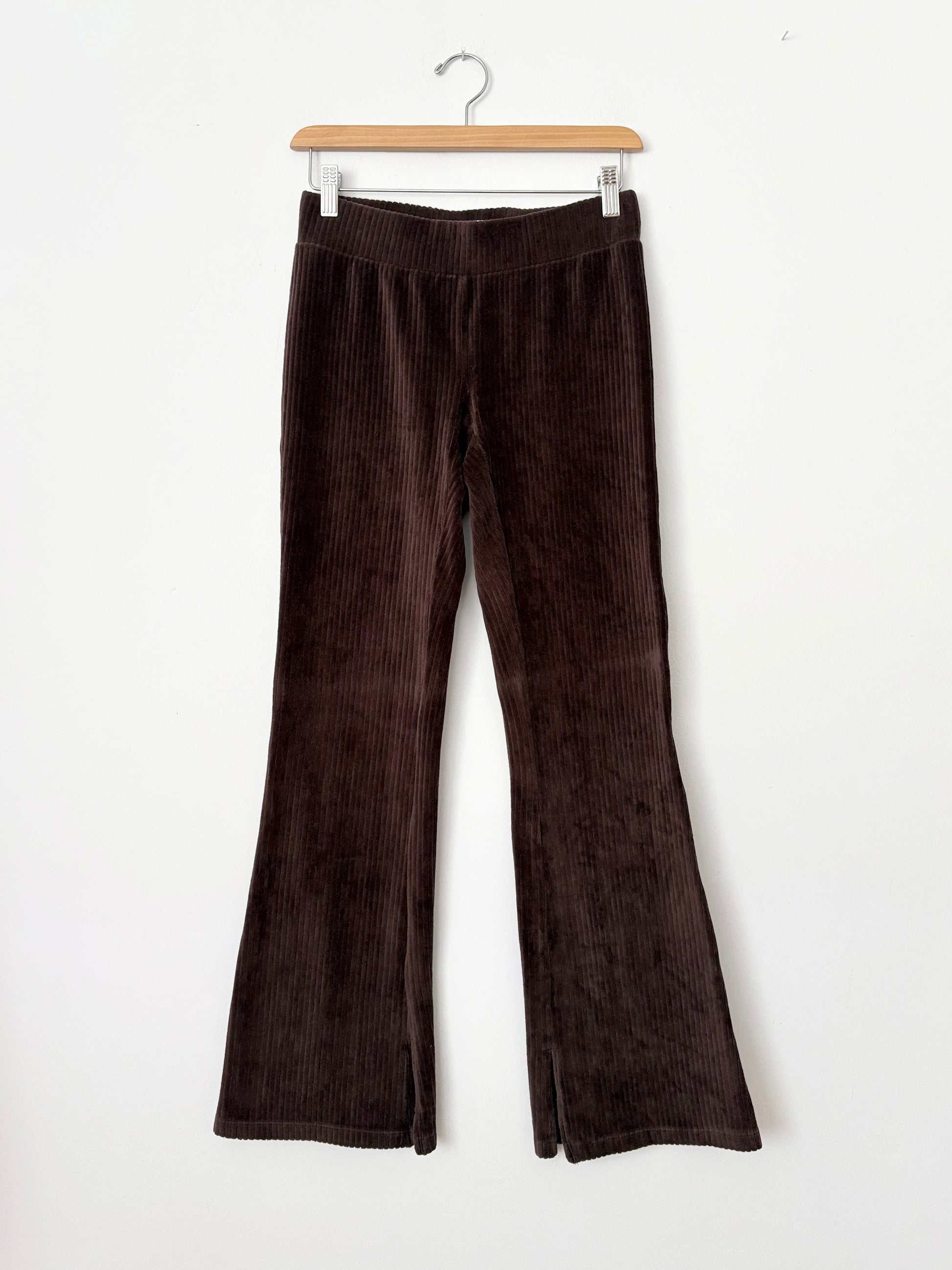 A low rise, laid-back style designed with a soft knit feel and a flare leg silhouette. Features an elastic waistband for comfort and a clean, minimalist look.